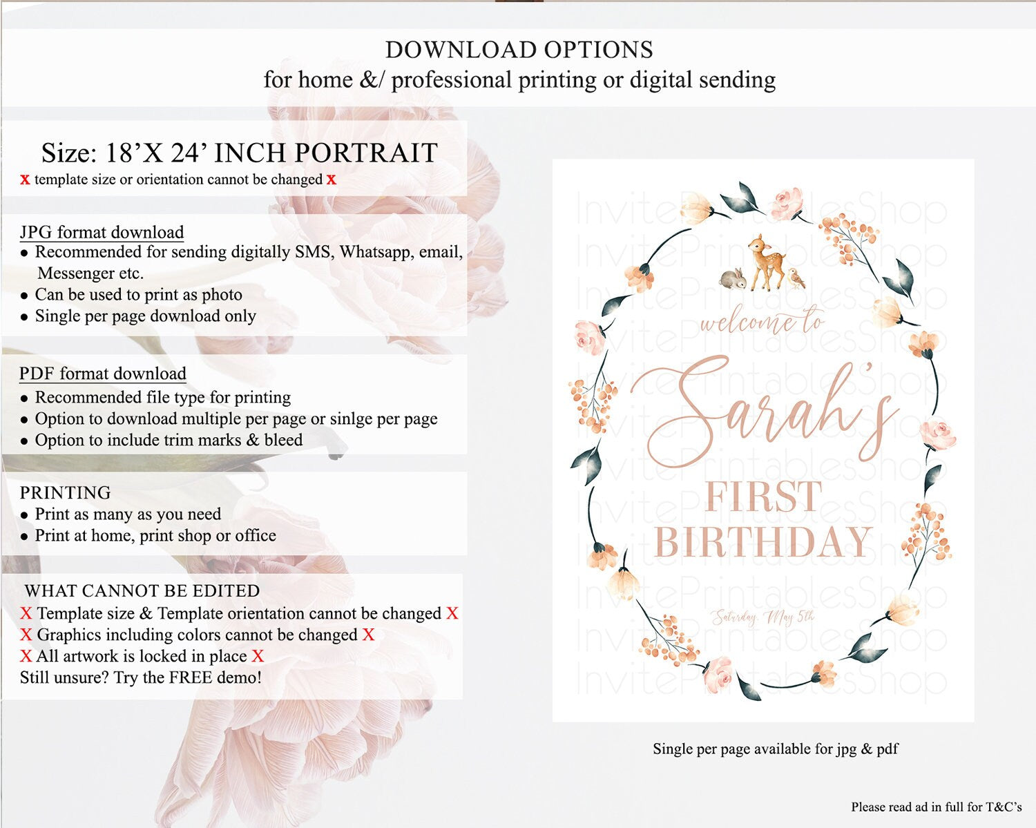 • Template size & orientation cannot be changed. Please use the demo link to confirm this product suits your needs.