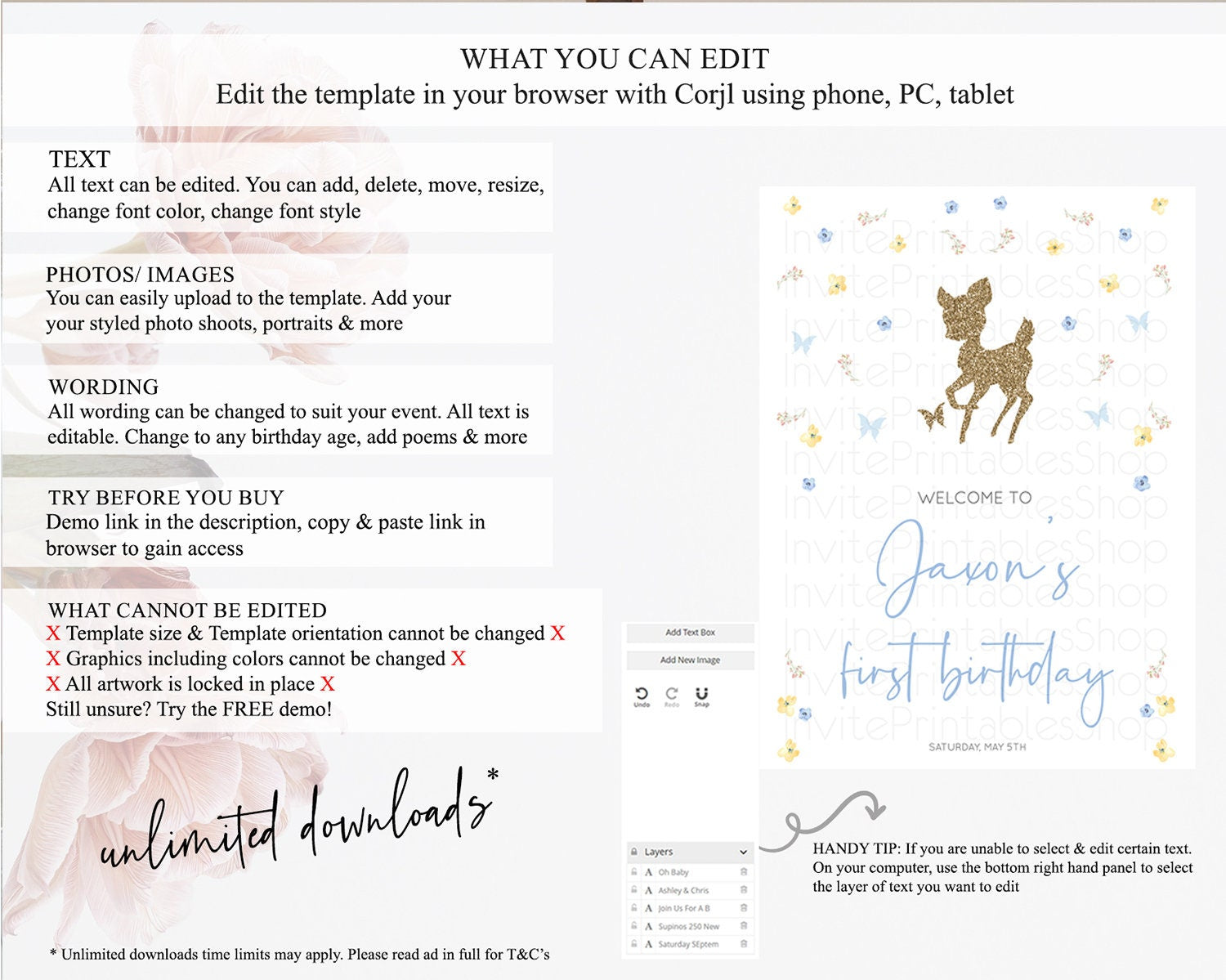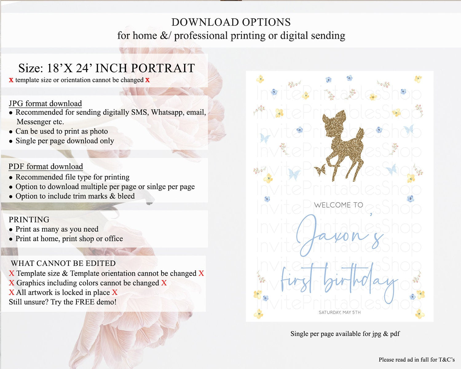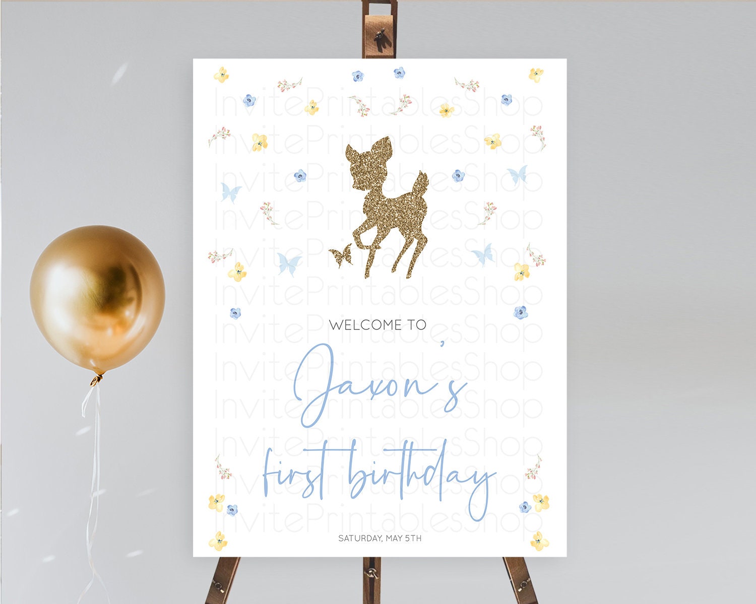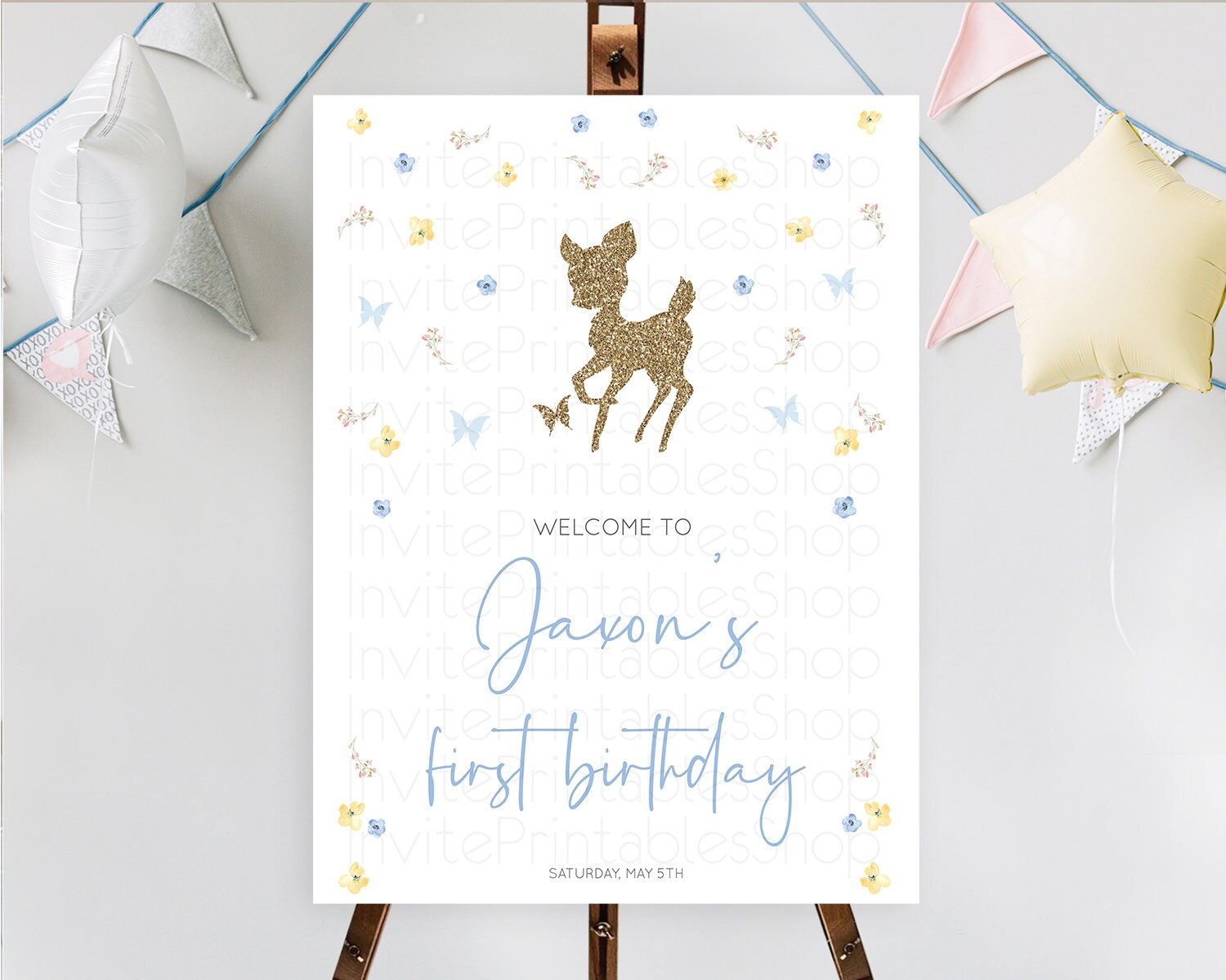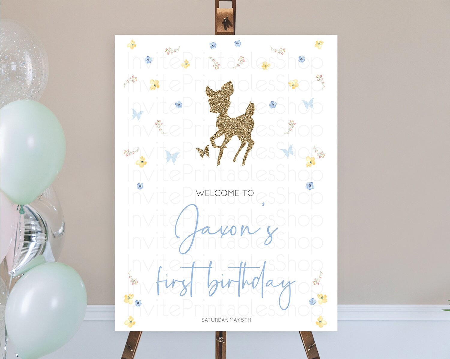 Fawn Welcome Sign Deer Welcome Board Floral Deer Welcome Poster Enchanted Forest Butterfly Pastel Floral First Birthday Welcome Sign D10360
