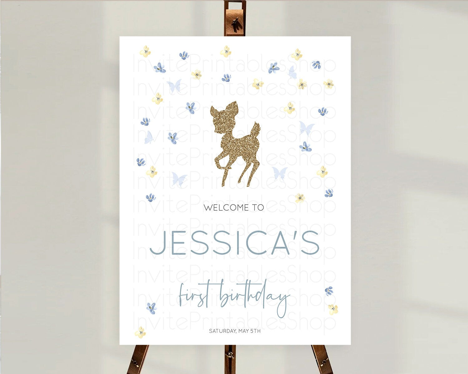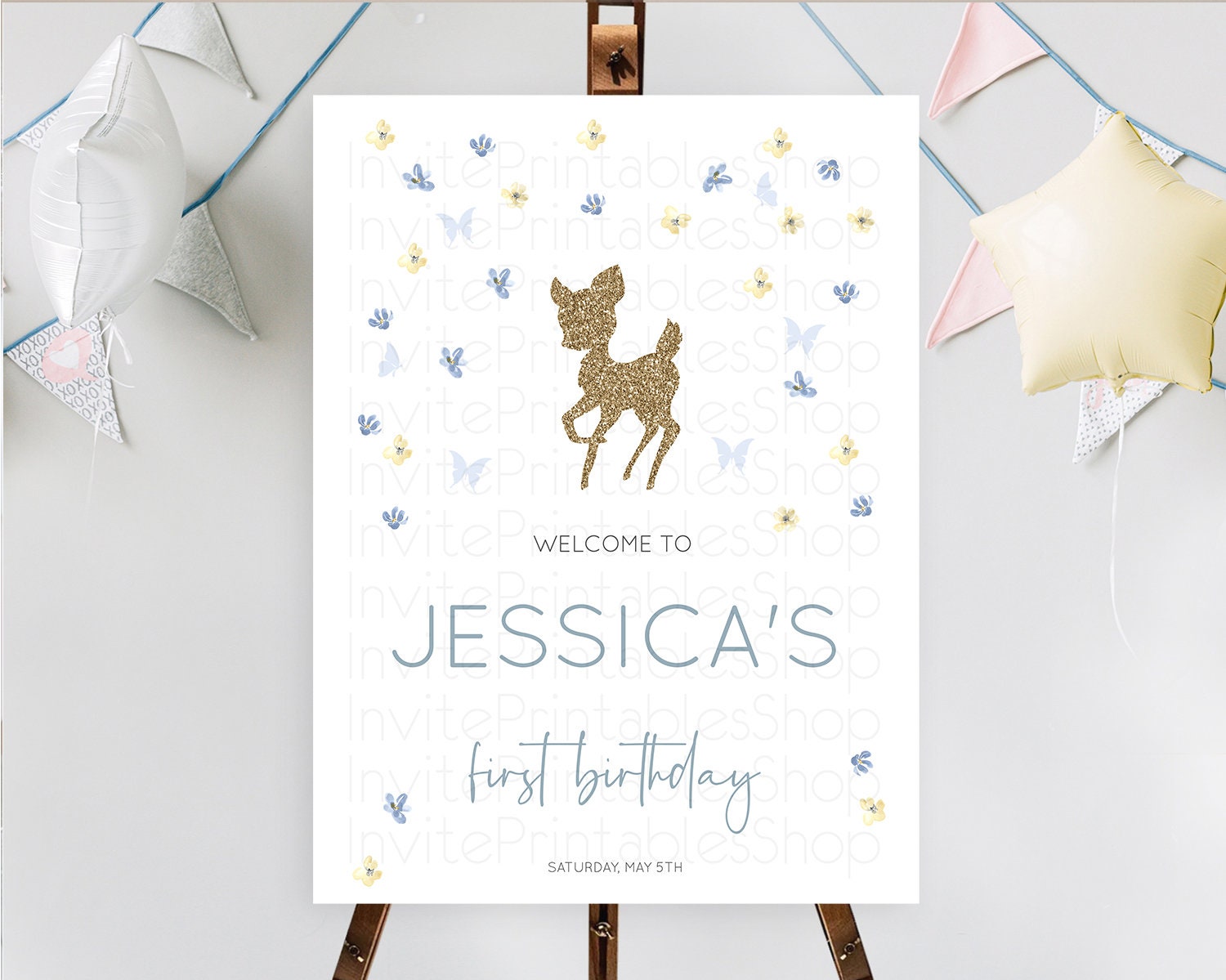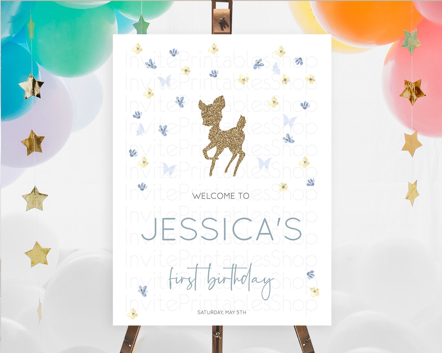 Fawn Welcome Sign Deer Welcome Board Floral Deer Welcome Poster Enchanted Forest Butterfly Pastel Floral First Birthday Welcome Sign D10864