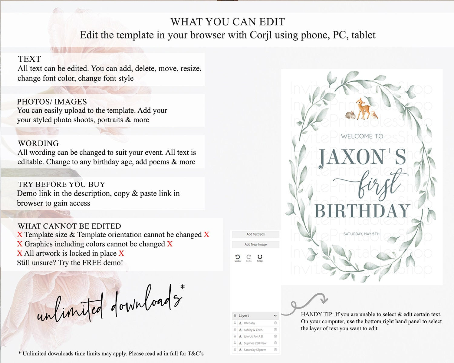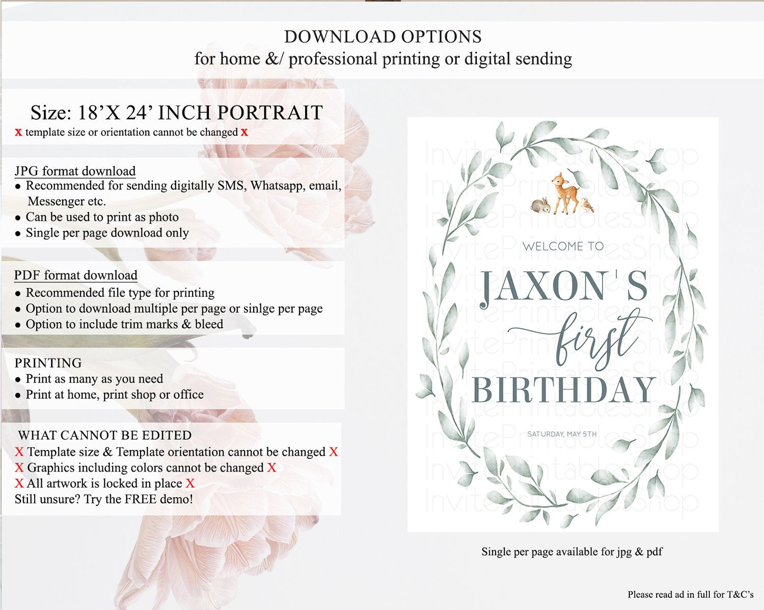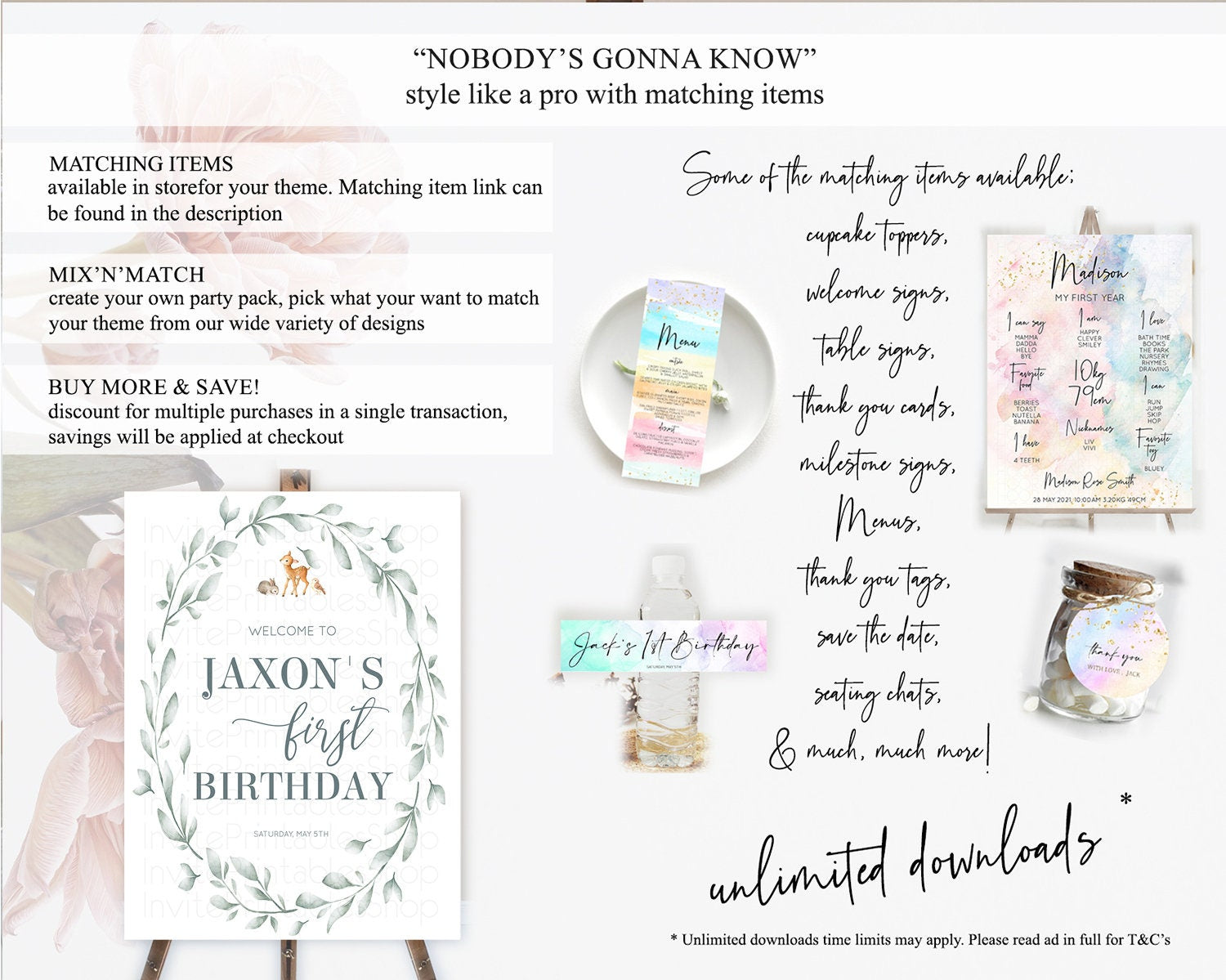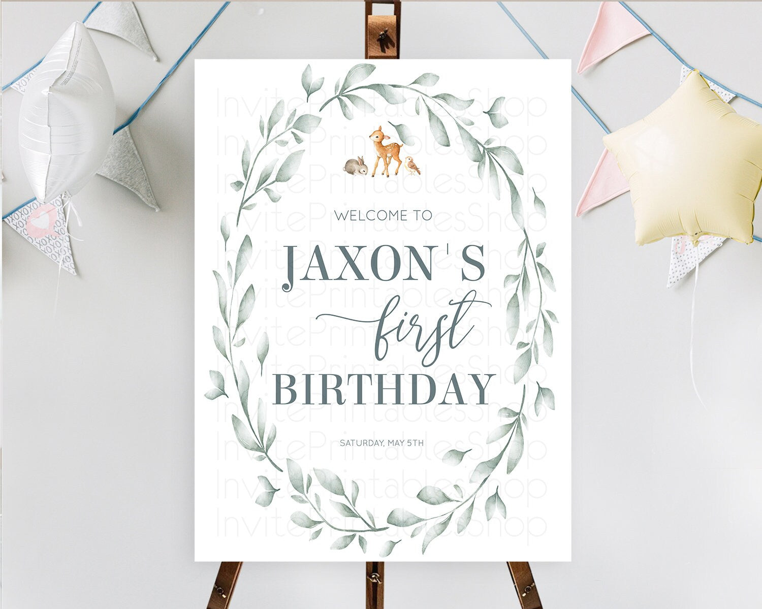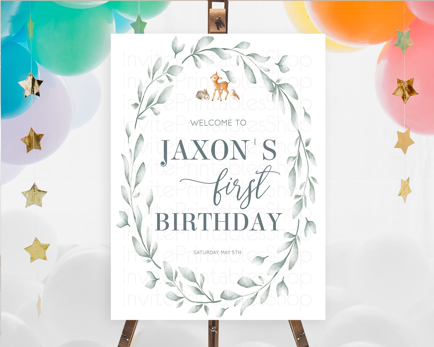 Fawn Welcome Sign Deer Welcome Board Floral Deer Welcome Poster Enchanted Forest Butterfly Pastel Floral First Birthday Welcome Sign D10872