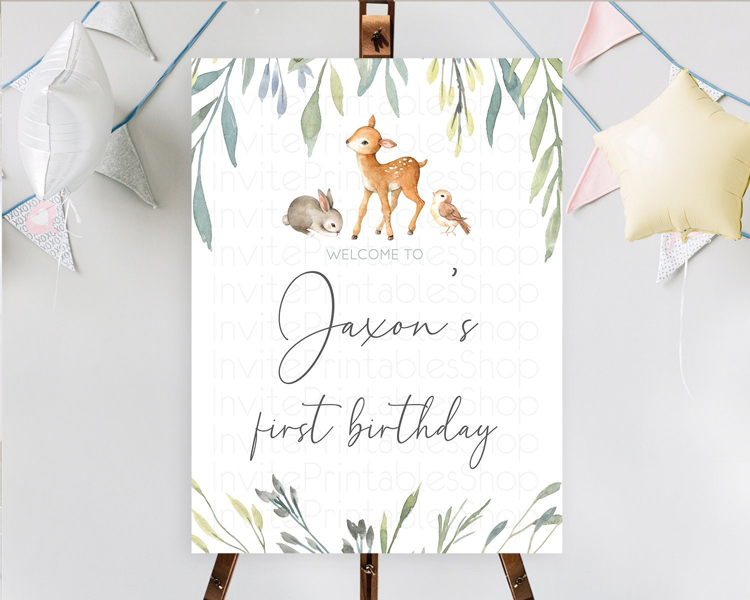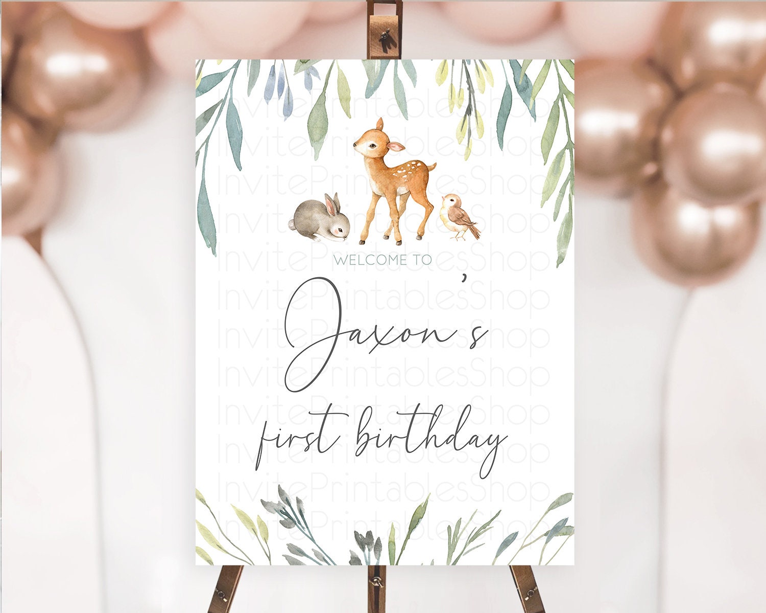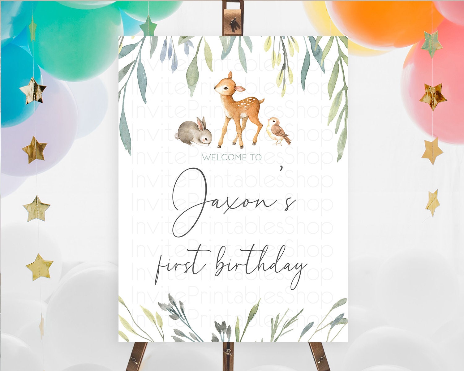 Fawn Welcome Sign Deer Welcome Board Floral Deer Welcome Poster Enchanted Forest Butterfly Pastel Floral First Birthday Welcome Sign D10919