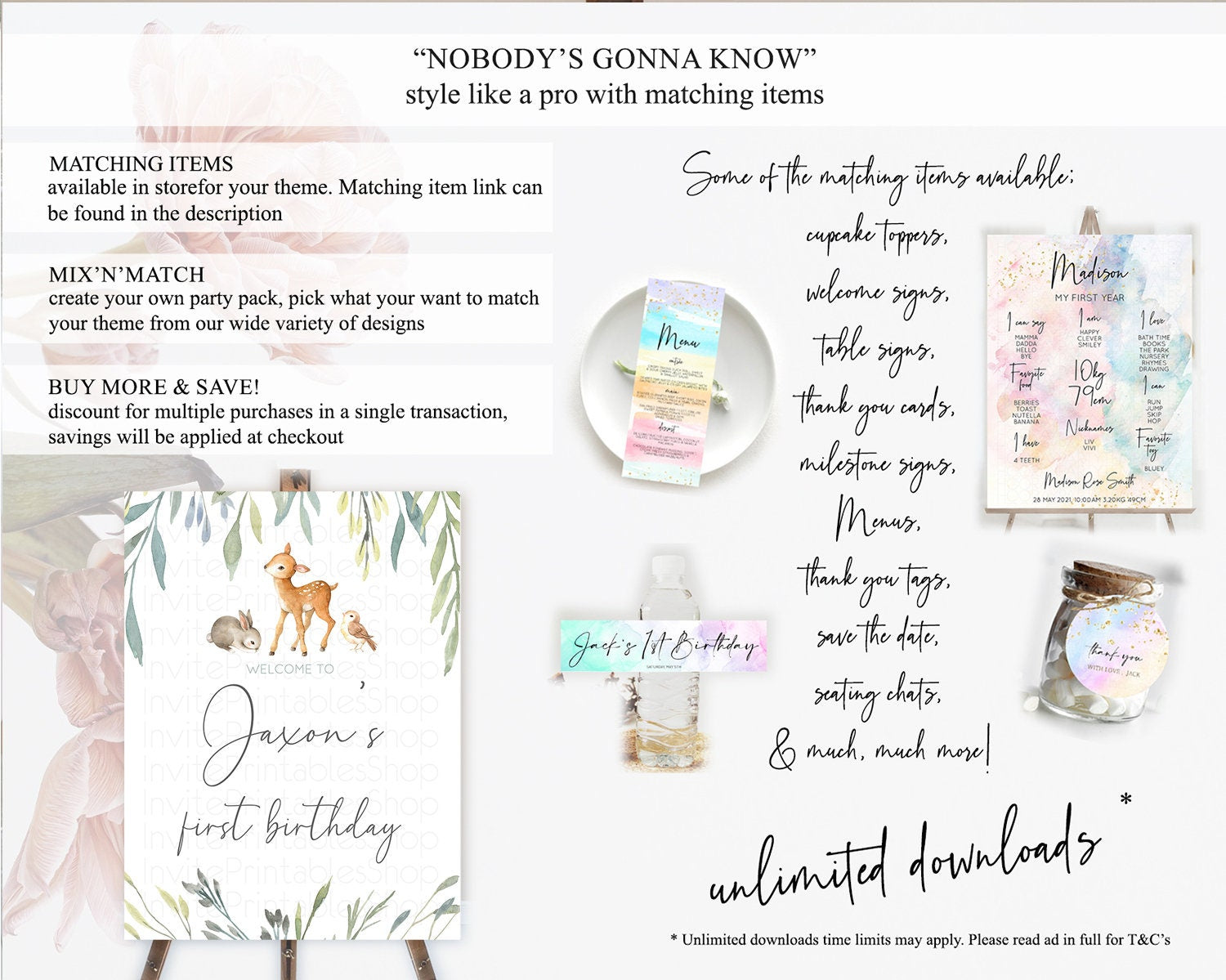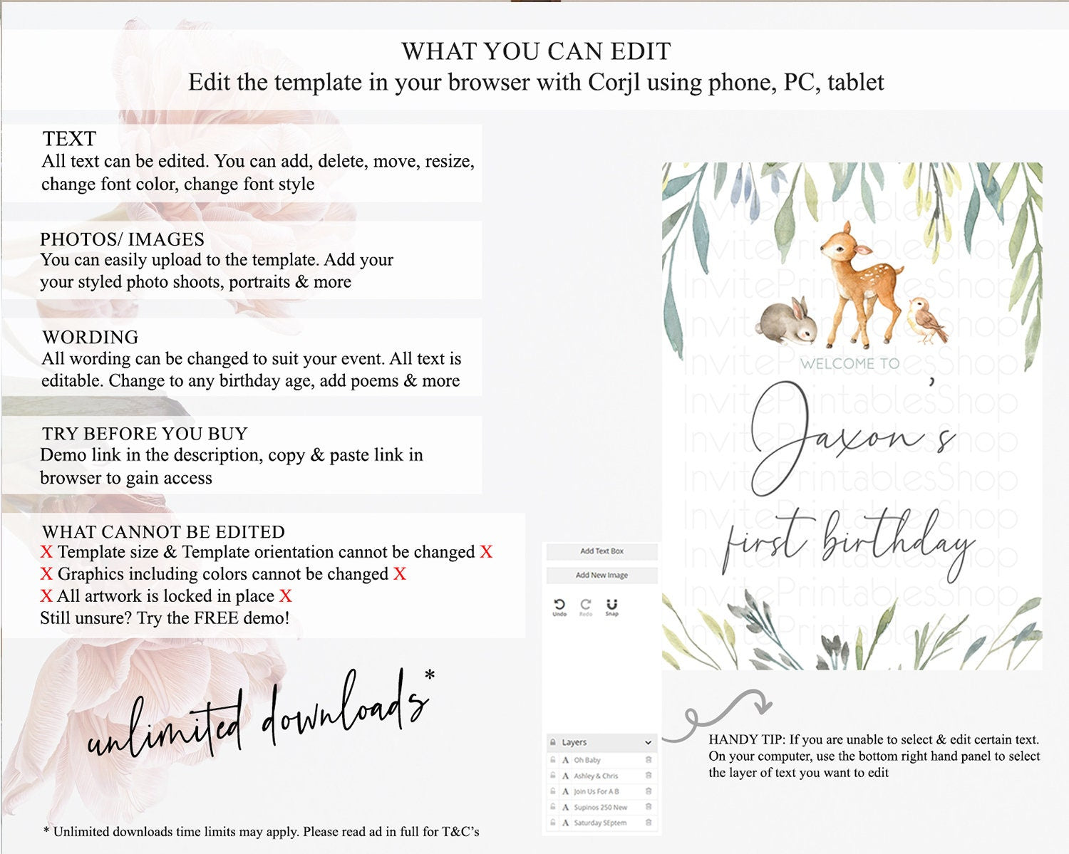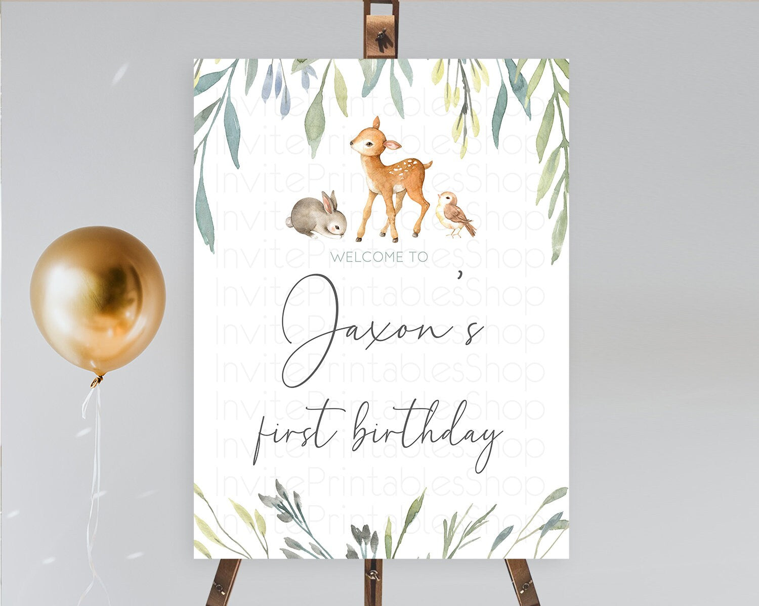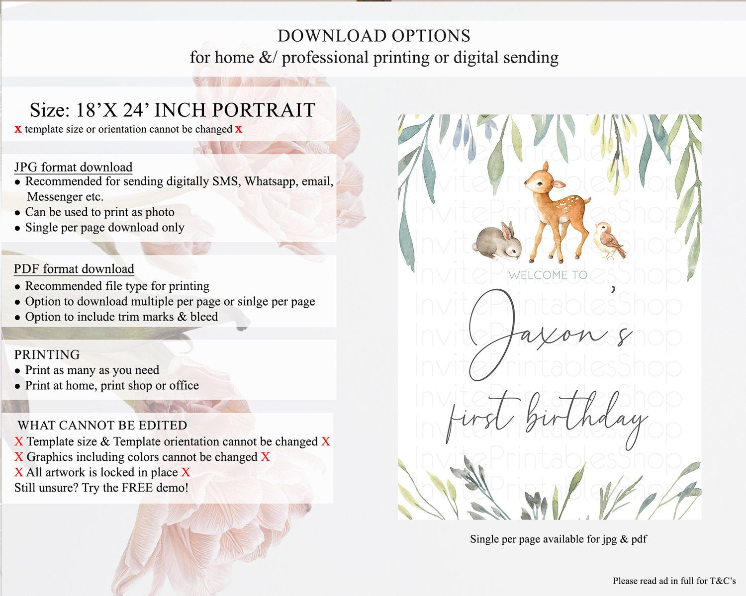 Fawn Welcome Sign Deer Welcome Board Floral Deer Welcome Poster Enchanted Forest Butterfly Pastel Floral First Birthday Welcome Sign D10919