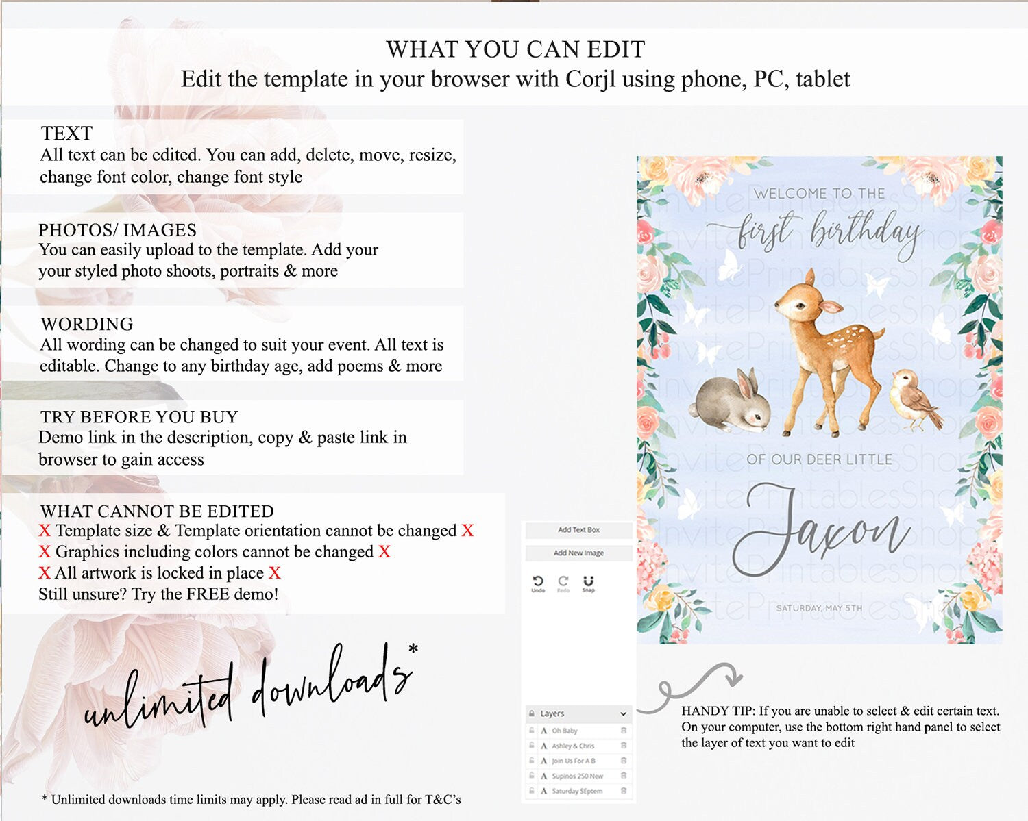 • After purchase, Corjl emails your editing link. Allow up to 15 minutes for delivery.