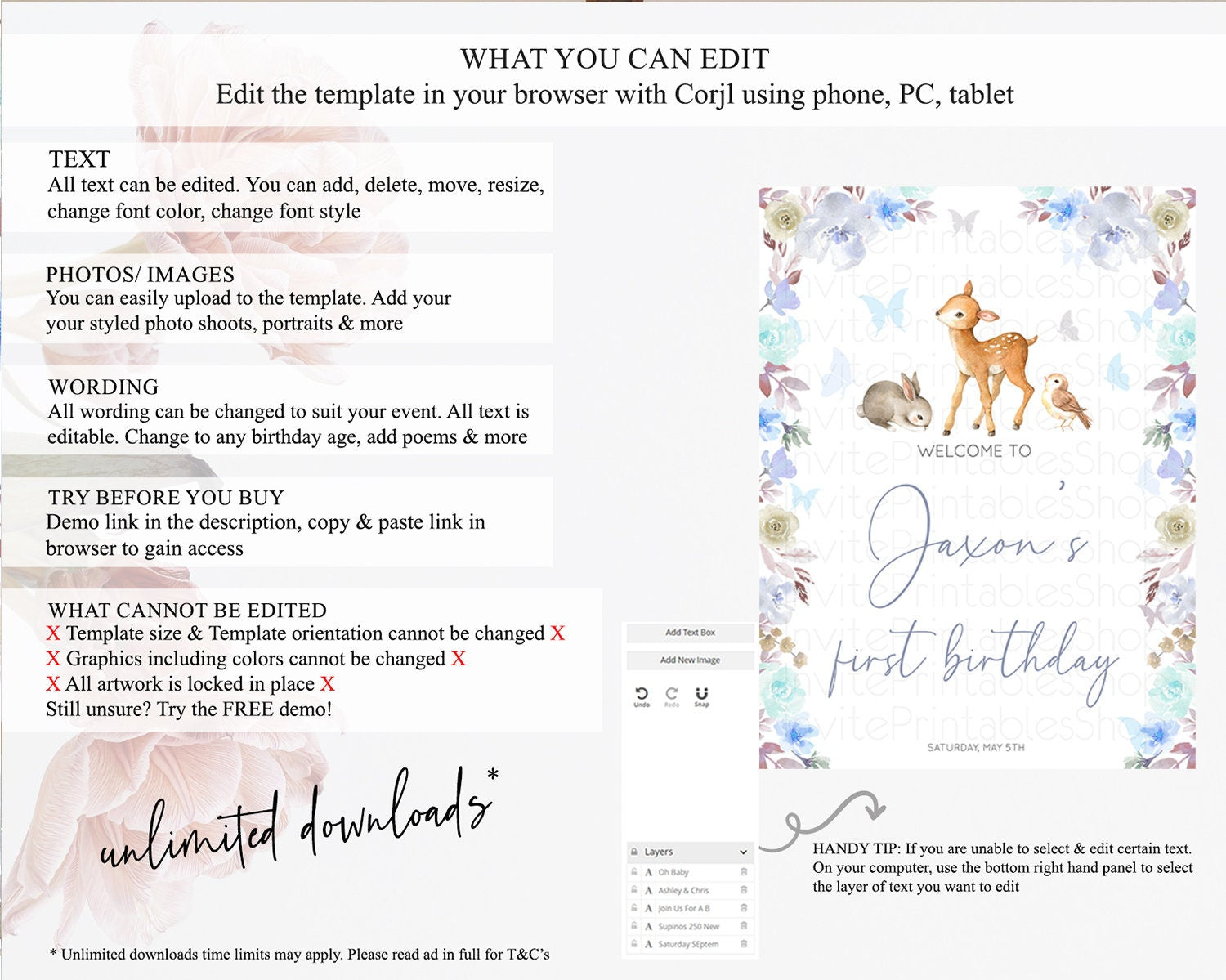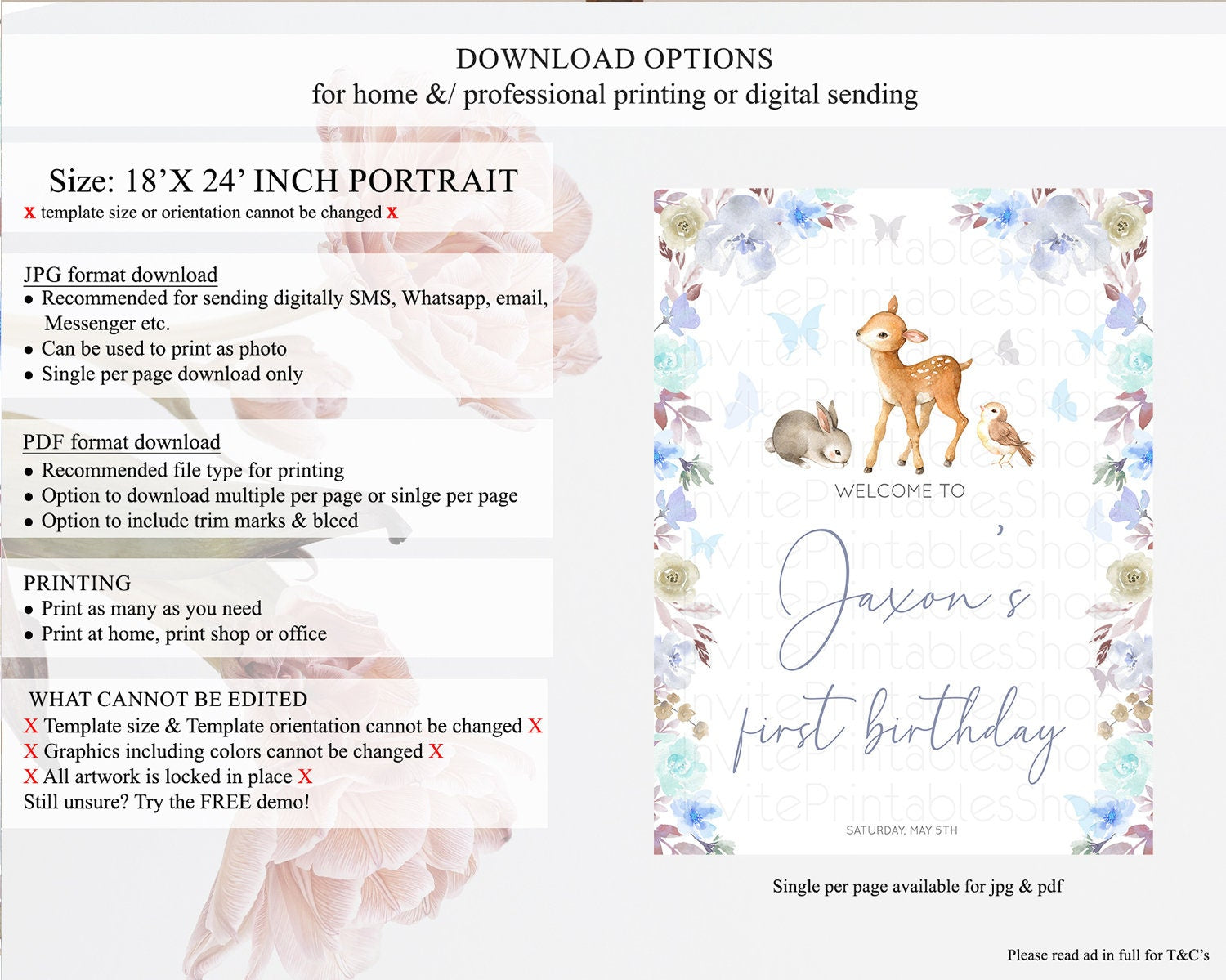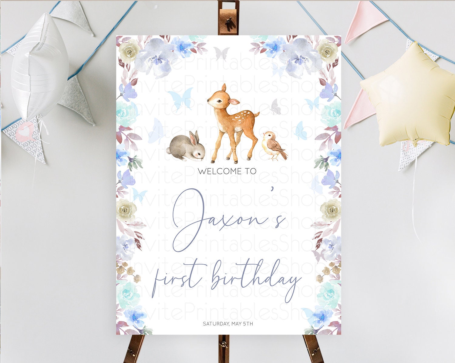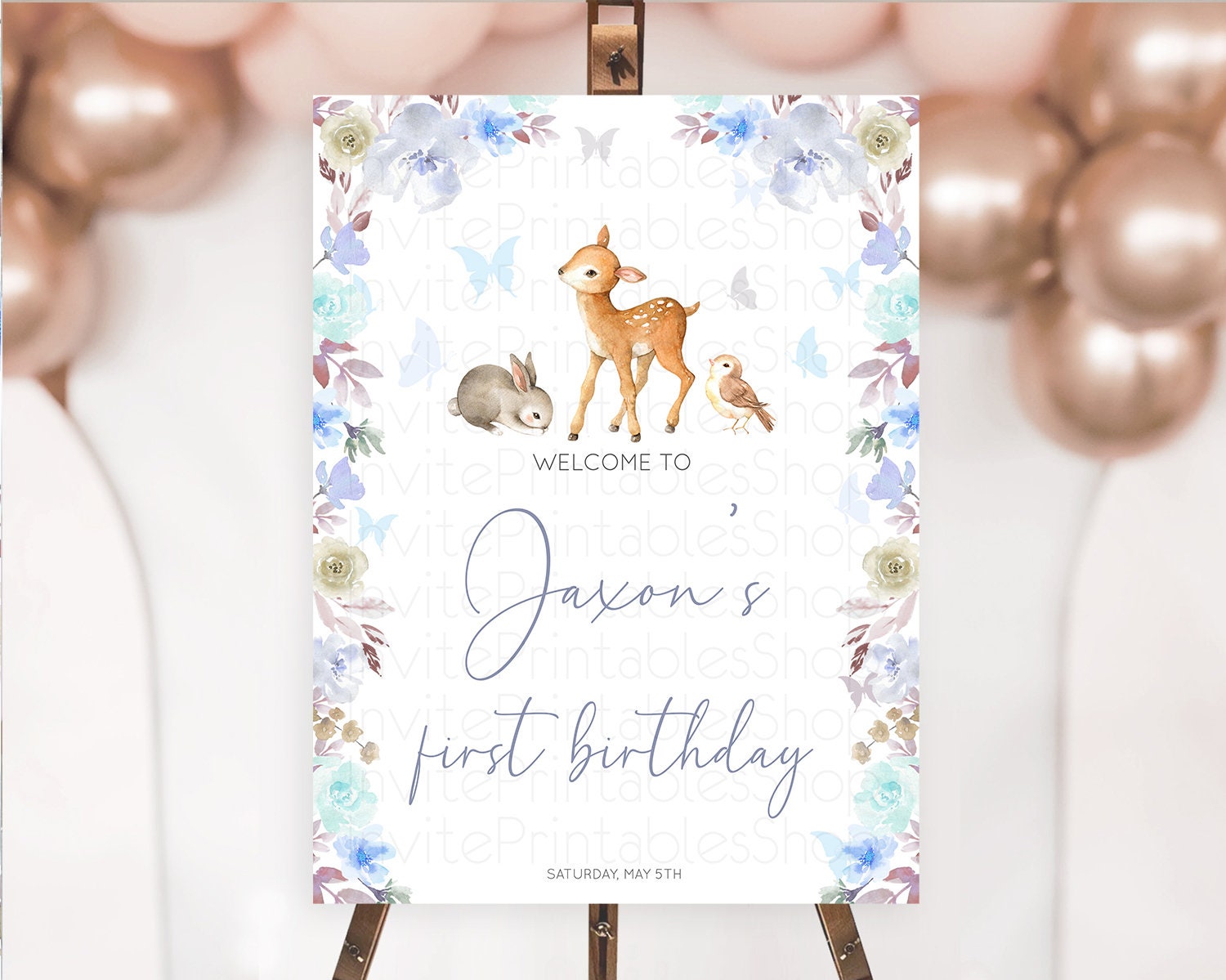 Fawn Welcome Sign Deer Welcome Board Floral Deer Welcome Poster Enchanted Forest Butterfly Pastel Floral First Birthday Welcome Sign D10929