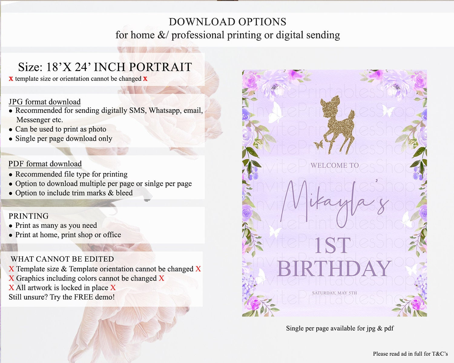 • Template size & orientation cannot be changed. Please use the demo link to confirm this product suits your needs.