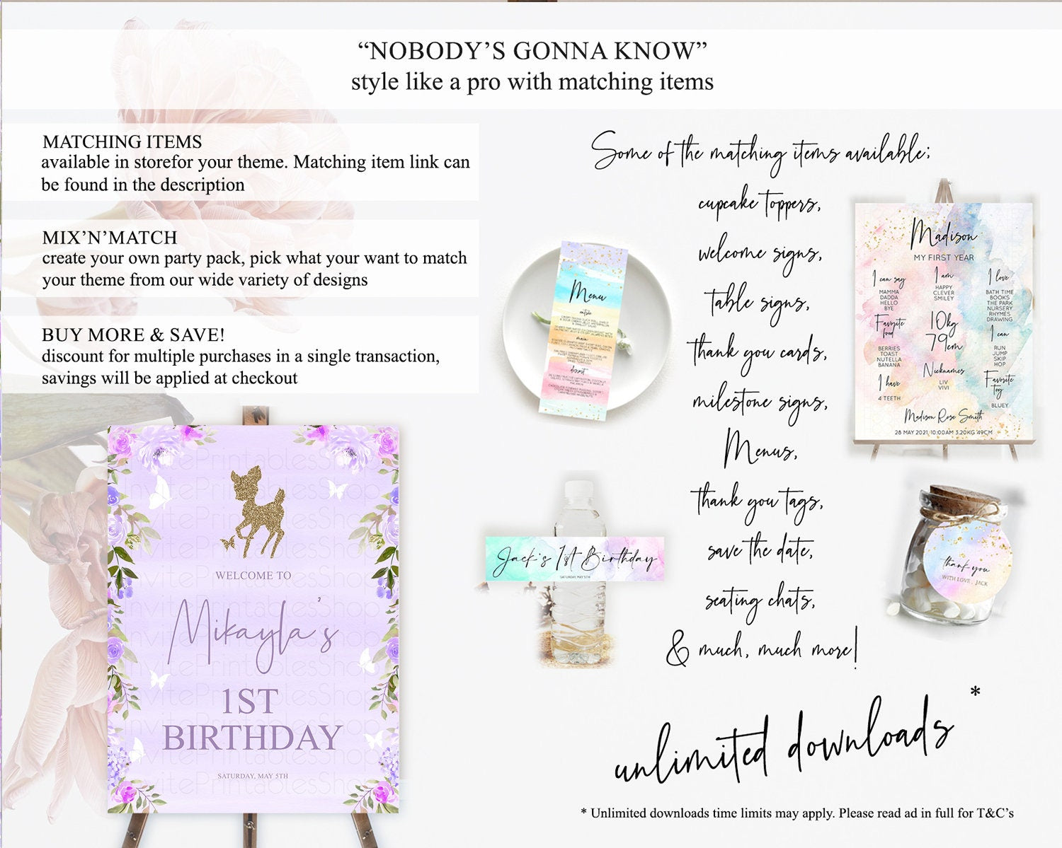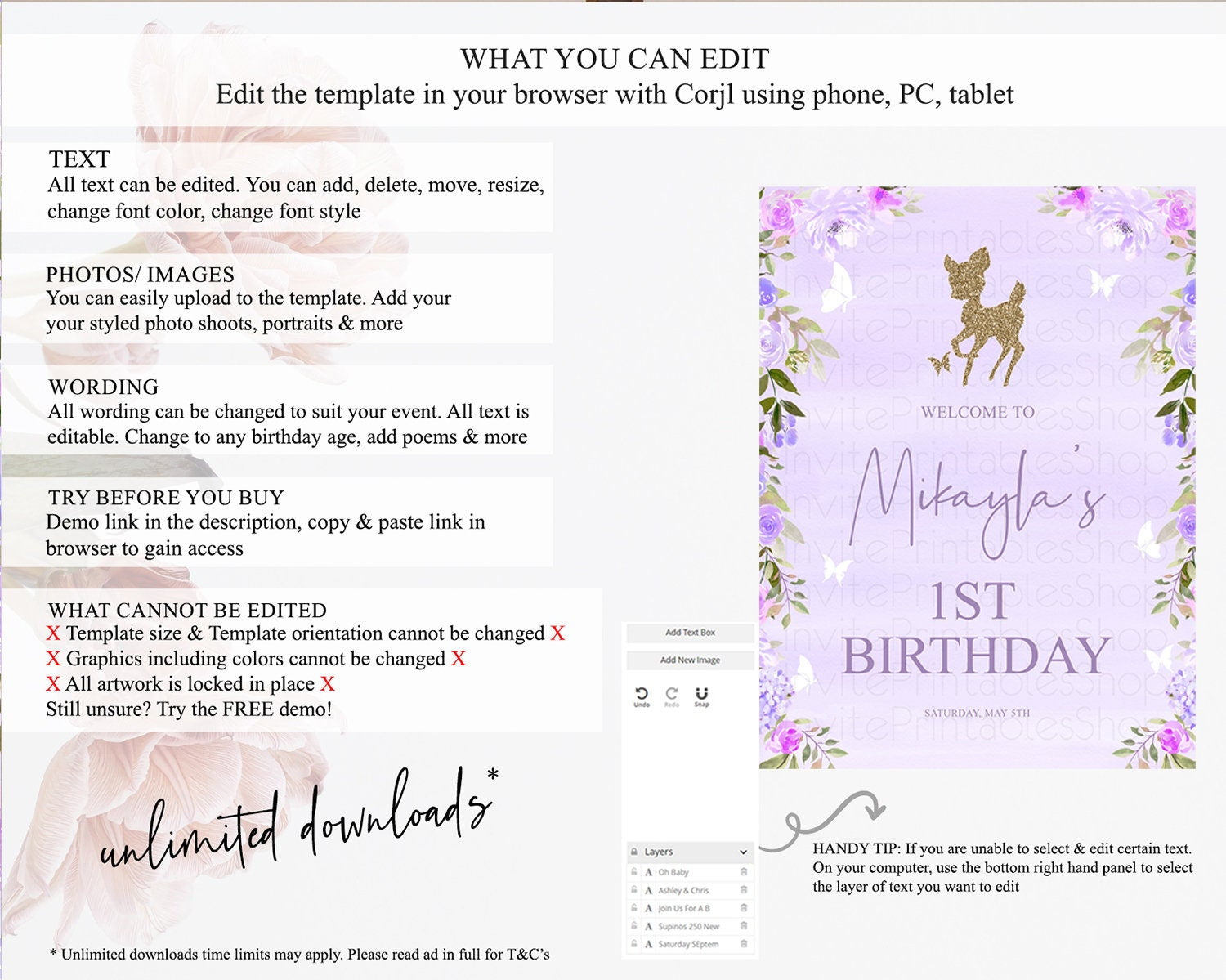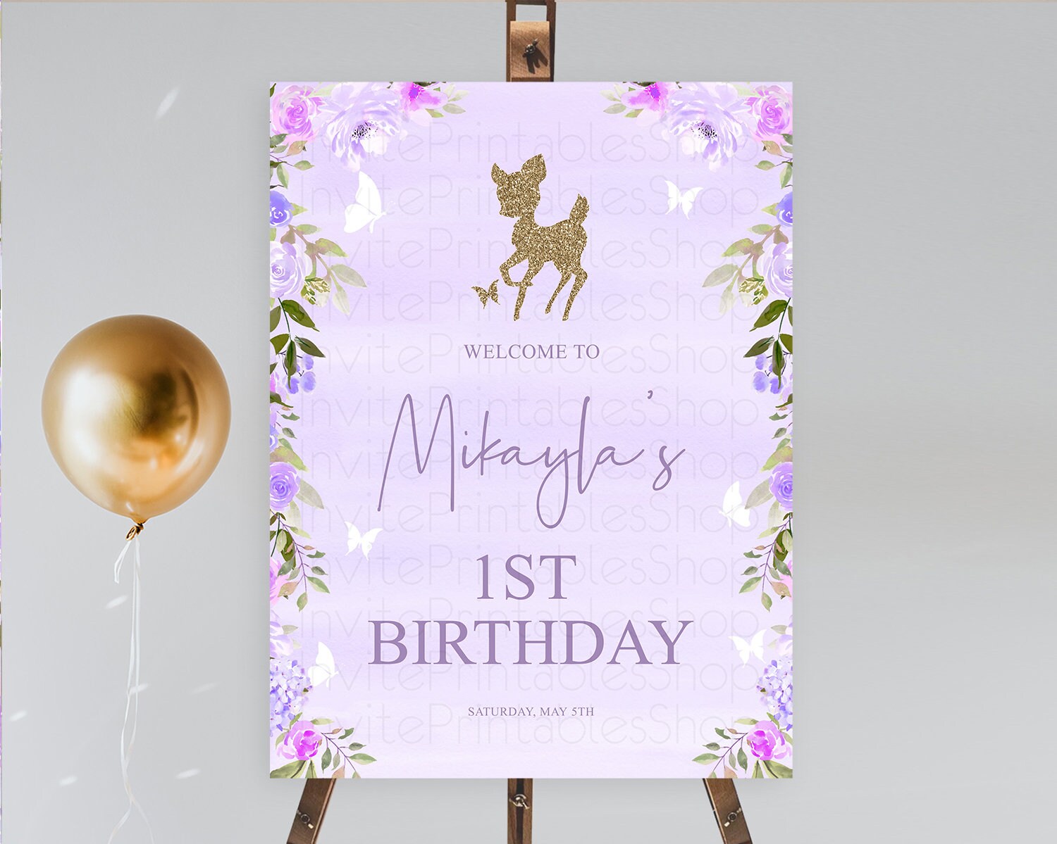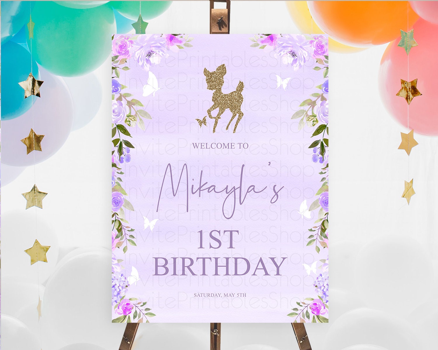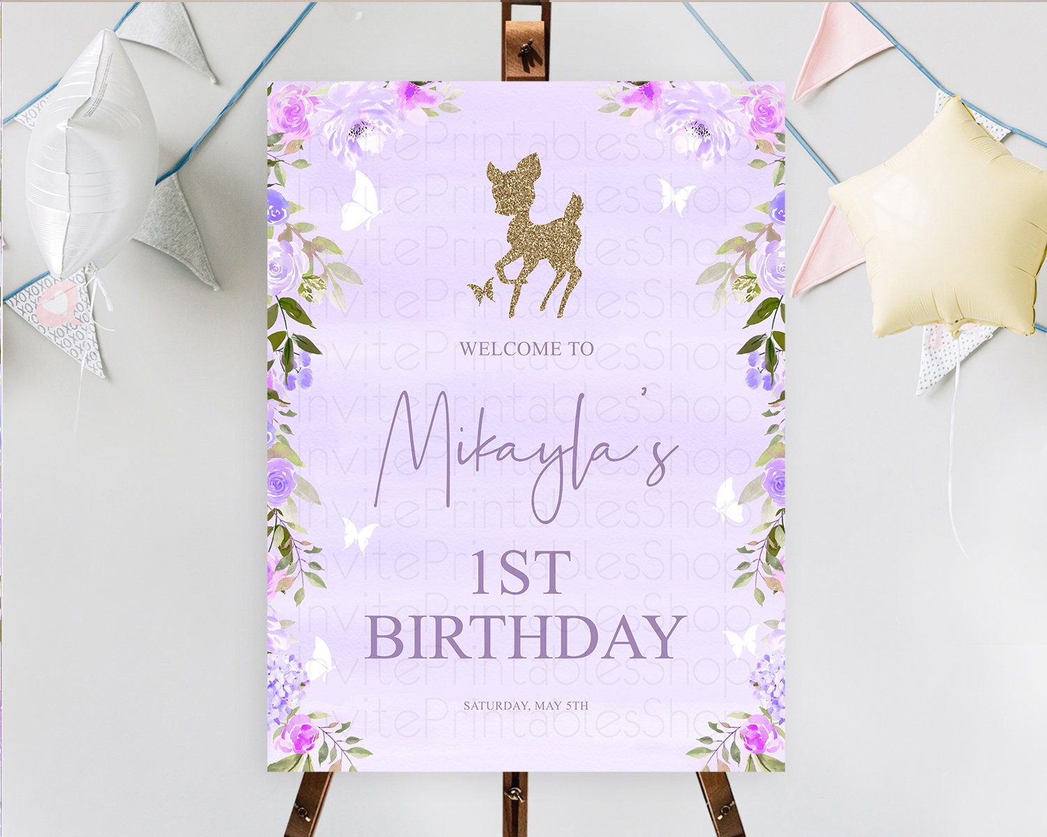 Fawn Welcome Sign Deer Welcome Board Floral Deer Welcome Poster Enchanted Forest Butterfly Pastel Floral First Birthday Welcome Sign D10963