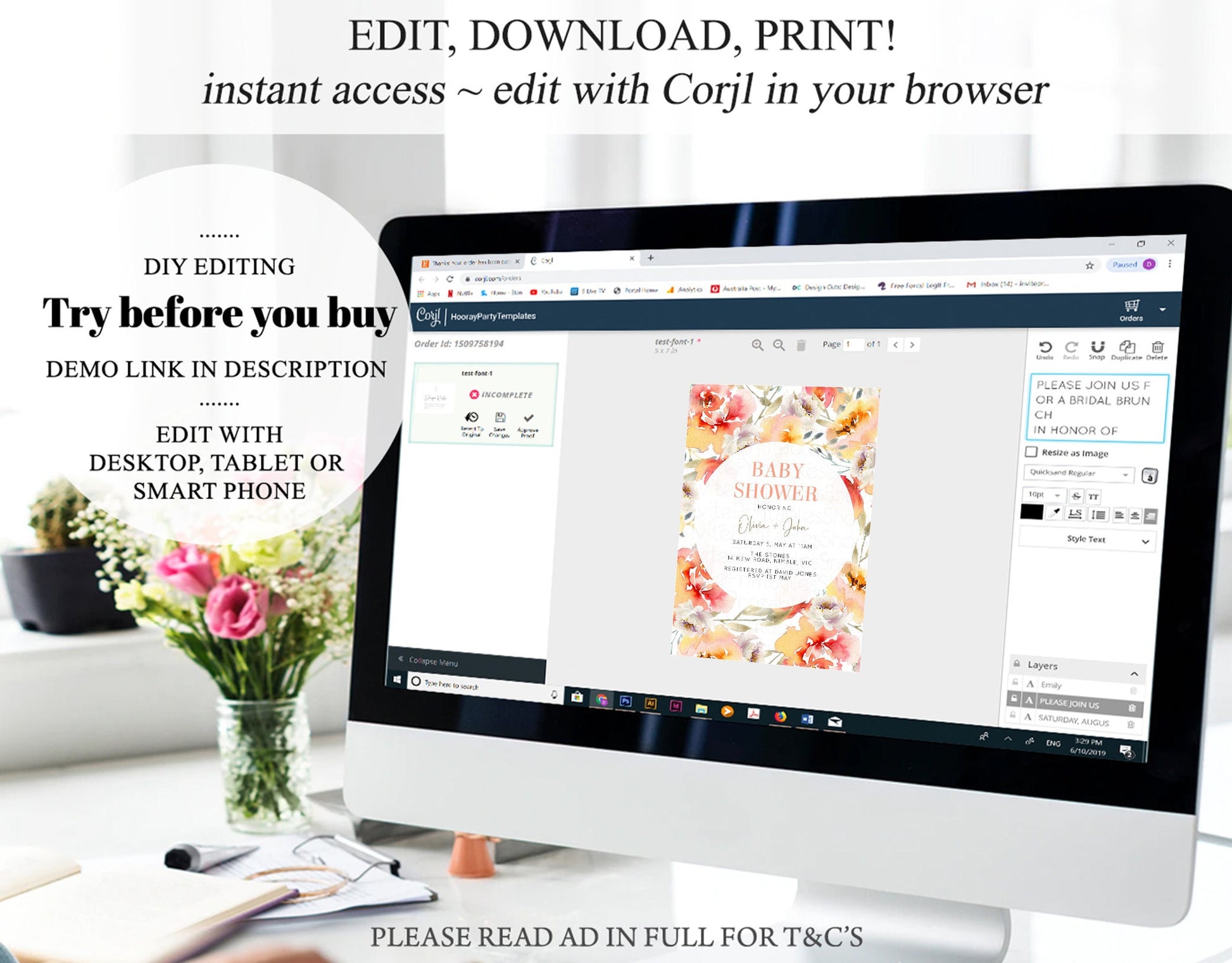 • After purchase, Corjl emails your editing link. Allow up to 15 minutes for delivery.