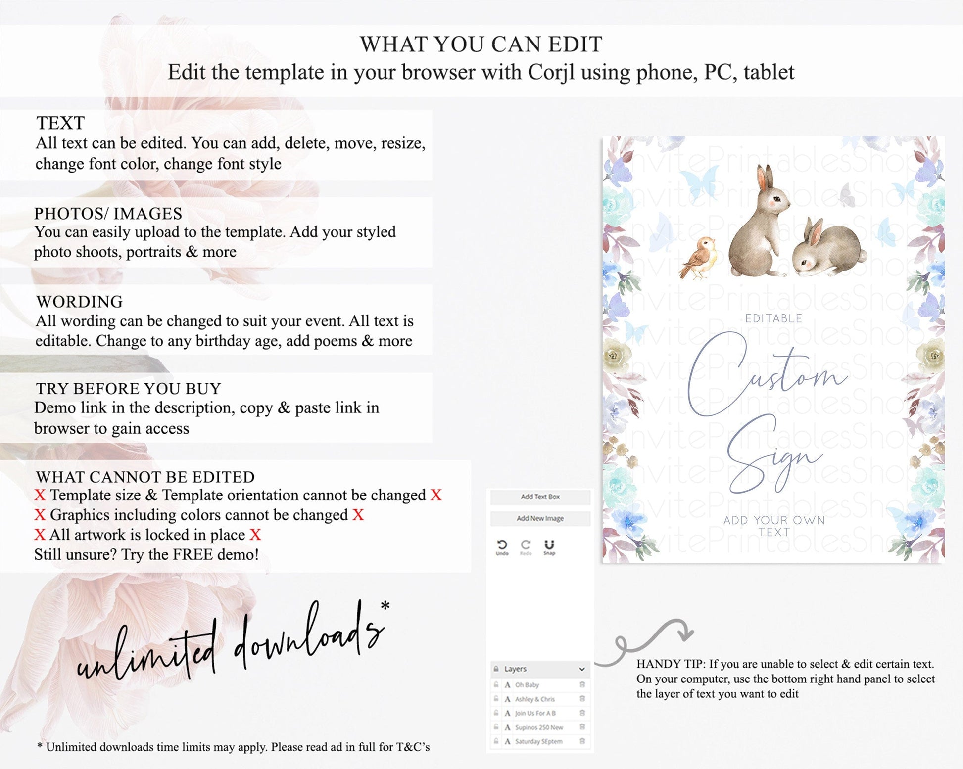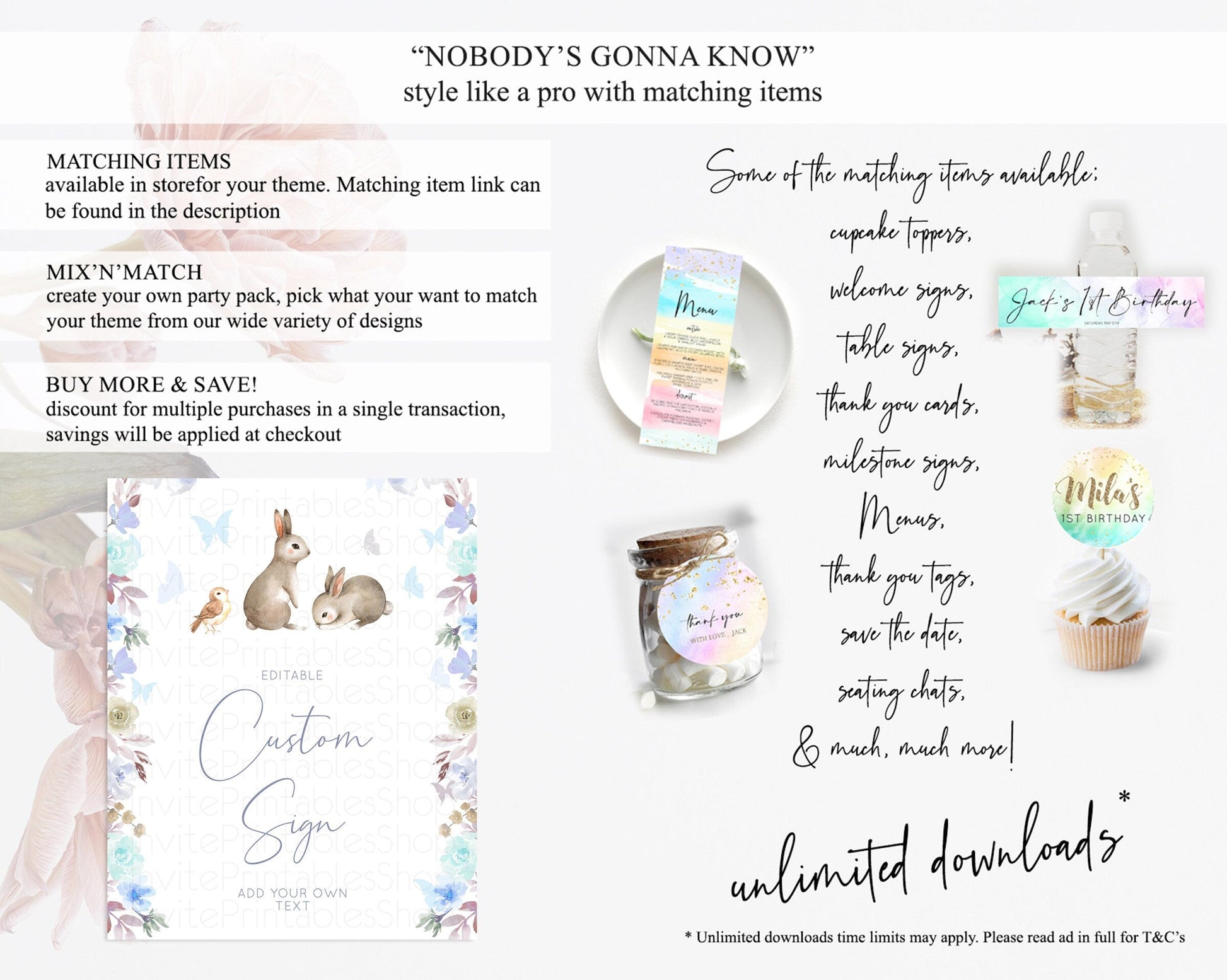 Floral Bunny Sign Pastel Flowers Table Sign Decor Forest Bunny Secret Garden Some Bunny Party 1st Birthday Baby Shower Baptism D10927