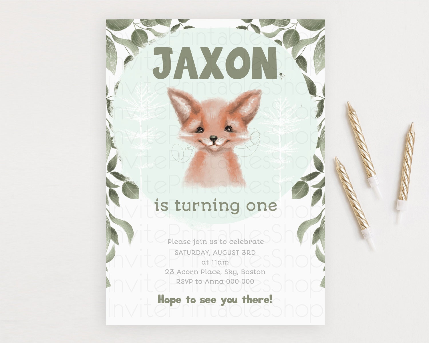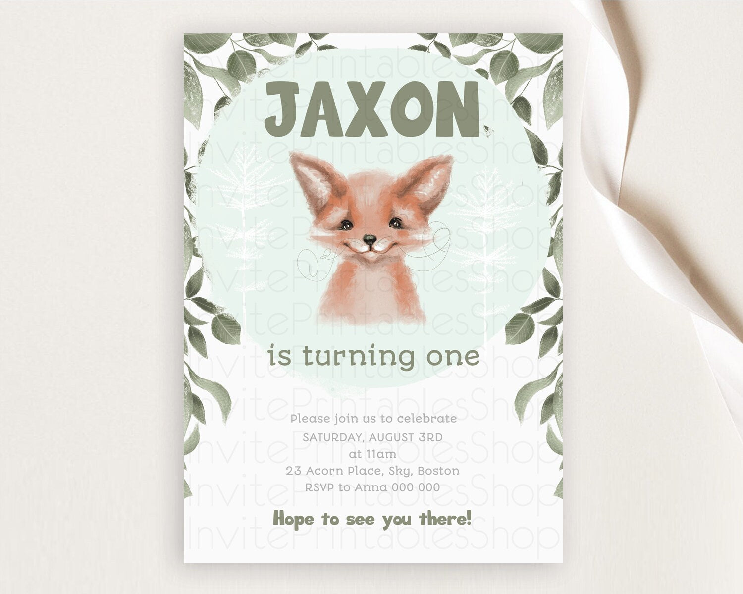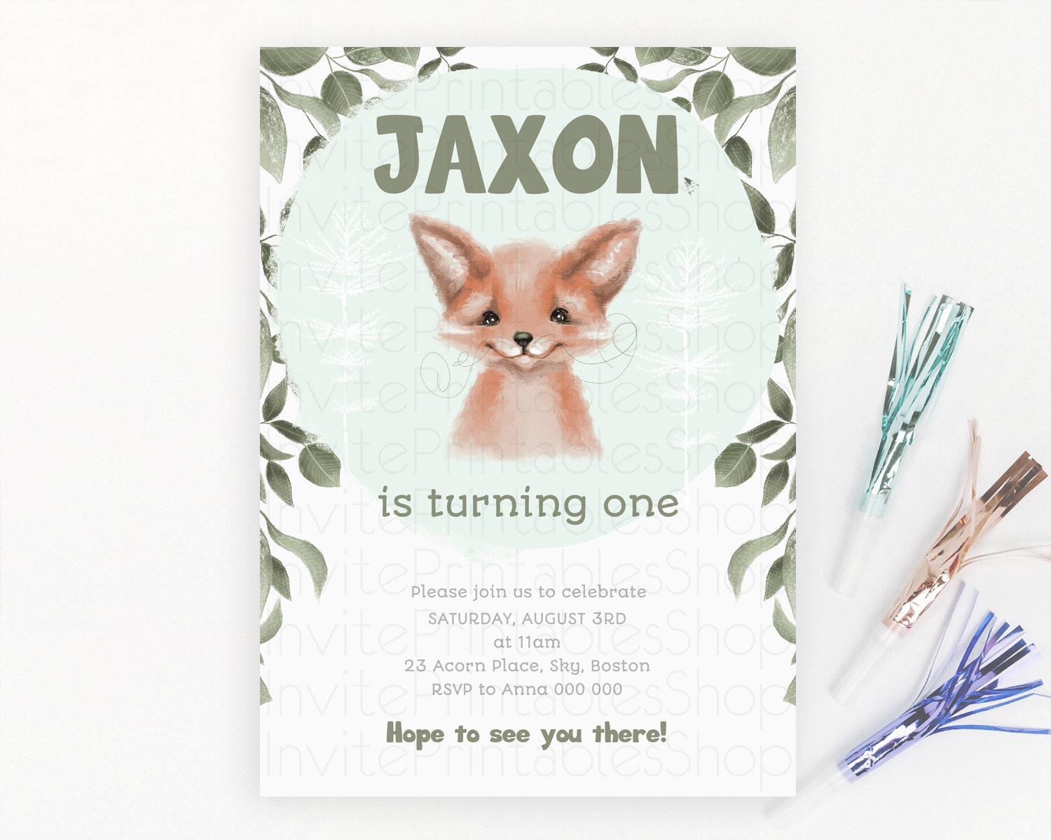 Fox Birthday Invitation Fox Invite Mr. Fox Birthday Green Fox Party Forest Adventure Enchanted Woods Wild One 1st 2nd 3rd Birthday D10124