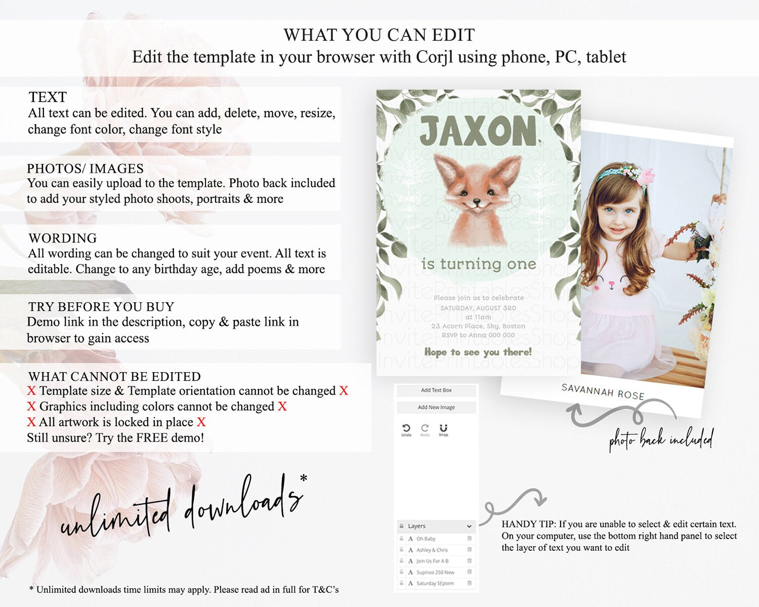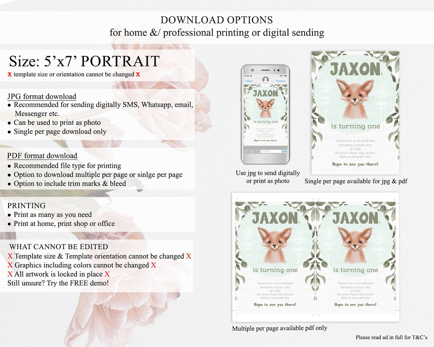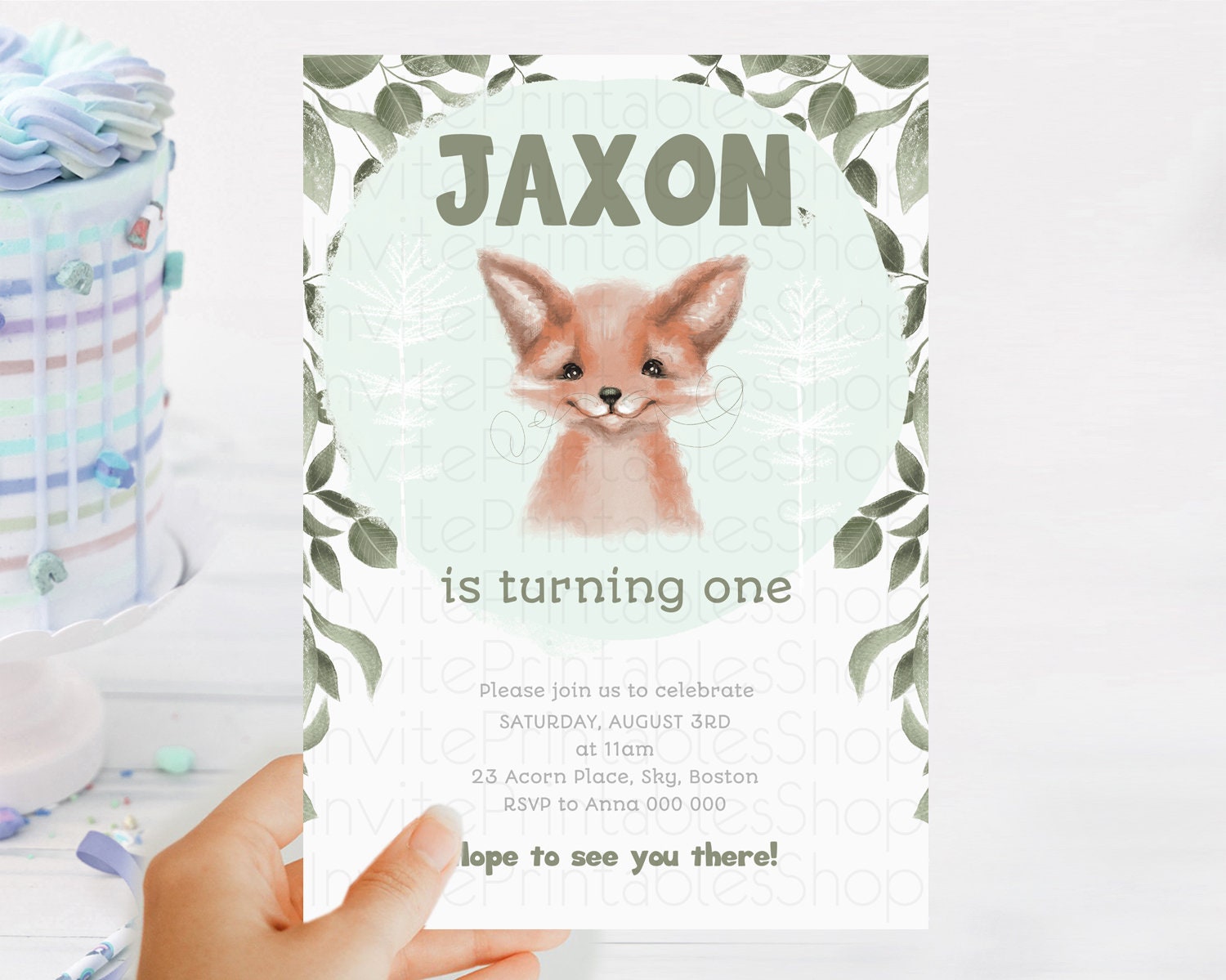 Fox Birthday Invitation Fox Invite Mr. Fox Birthday Green Fox Party Forest Adventure Enchanted Woods Wild One 1st 2nd 3rd Birthday D10124