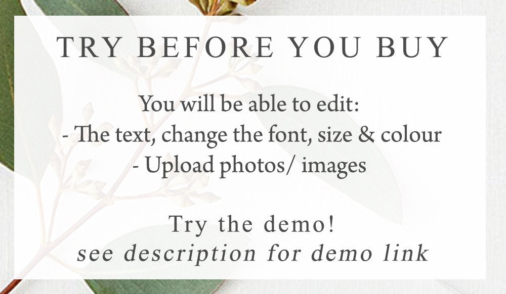 • Template size & orientation cannot be changed. Please use the demo link to confirm this product suits your needs.