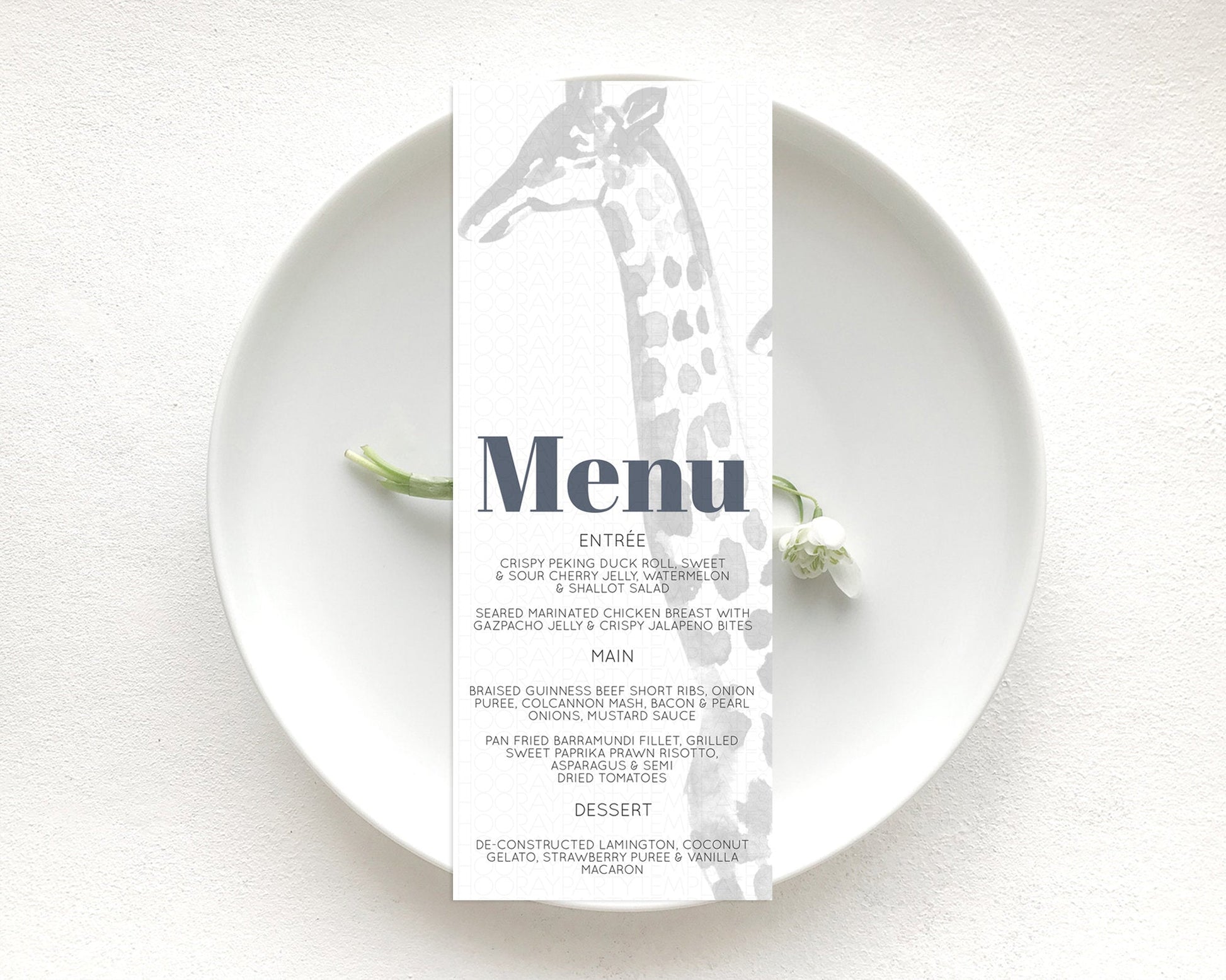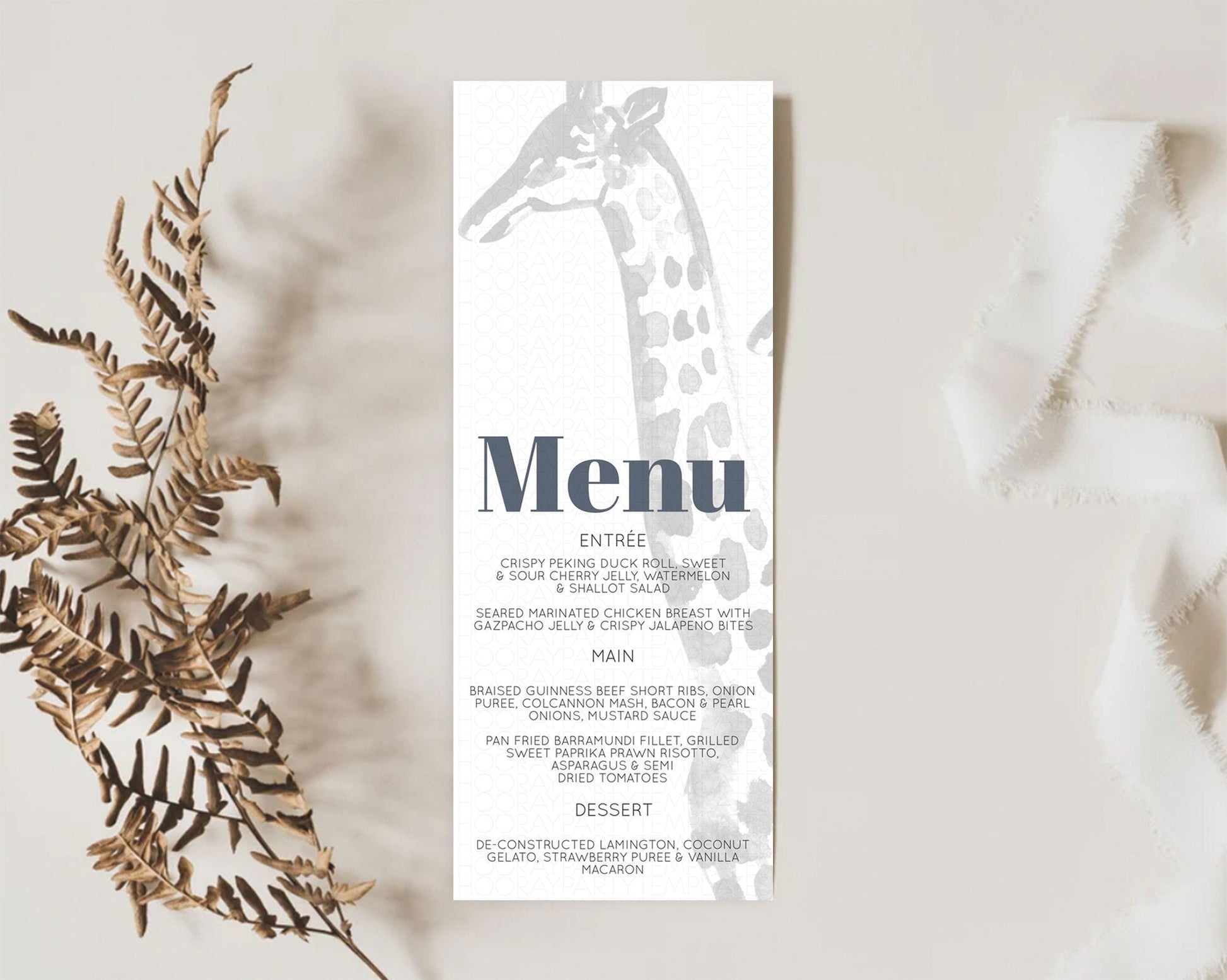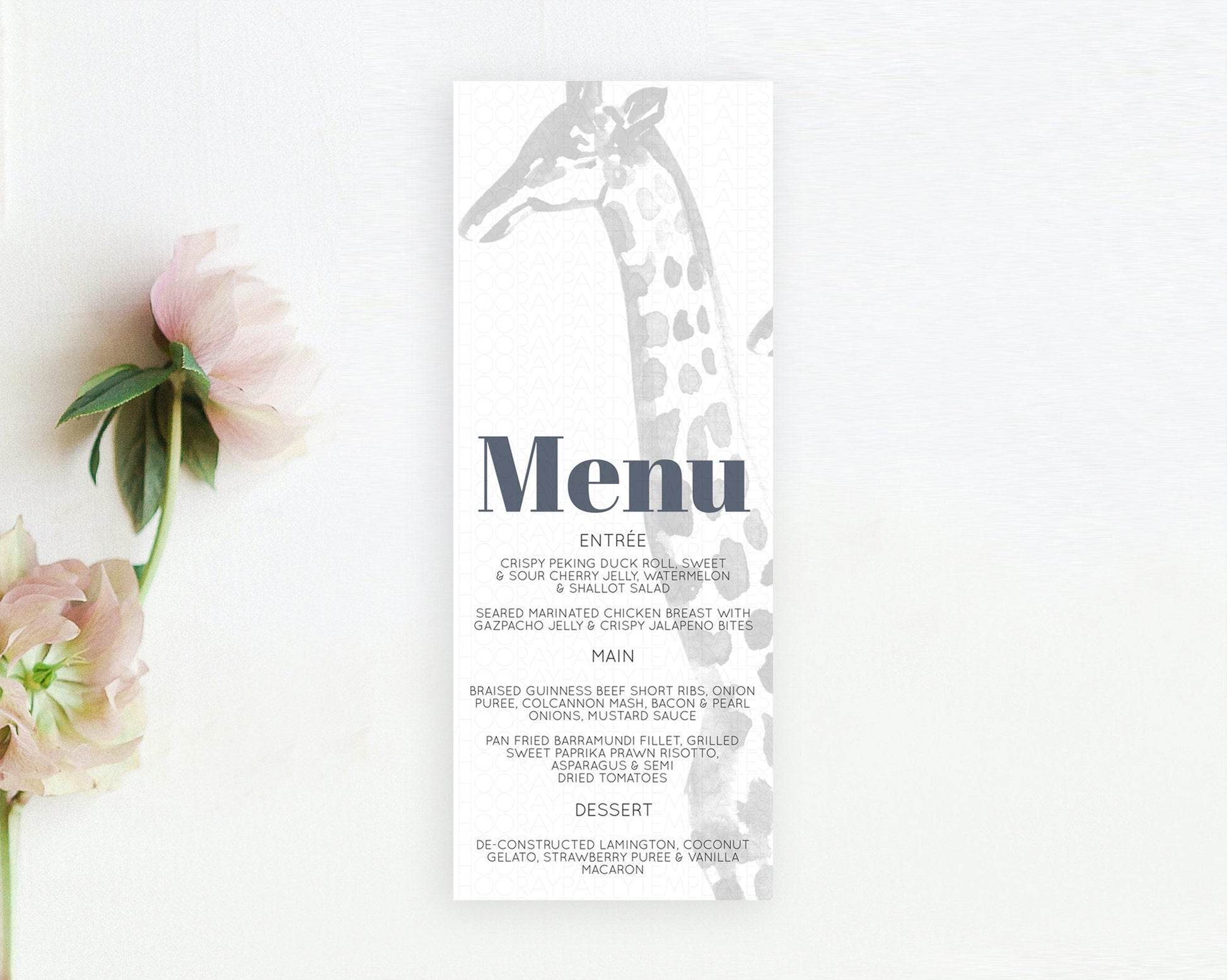 Giraffe Menu Giraffe Menu Template Giraffe Party Table Decor Safari Adventure Decor Zoo Giraffe Dinner Dessert Party Food Menu D10306