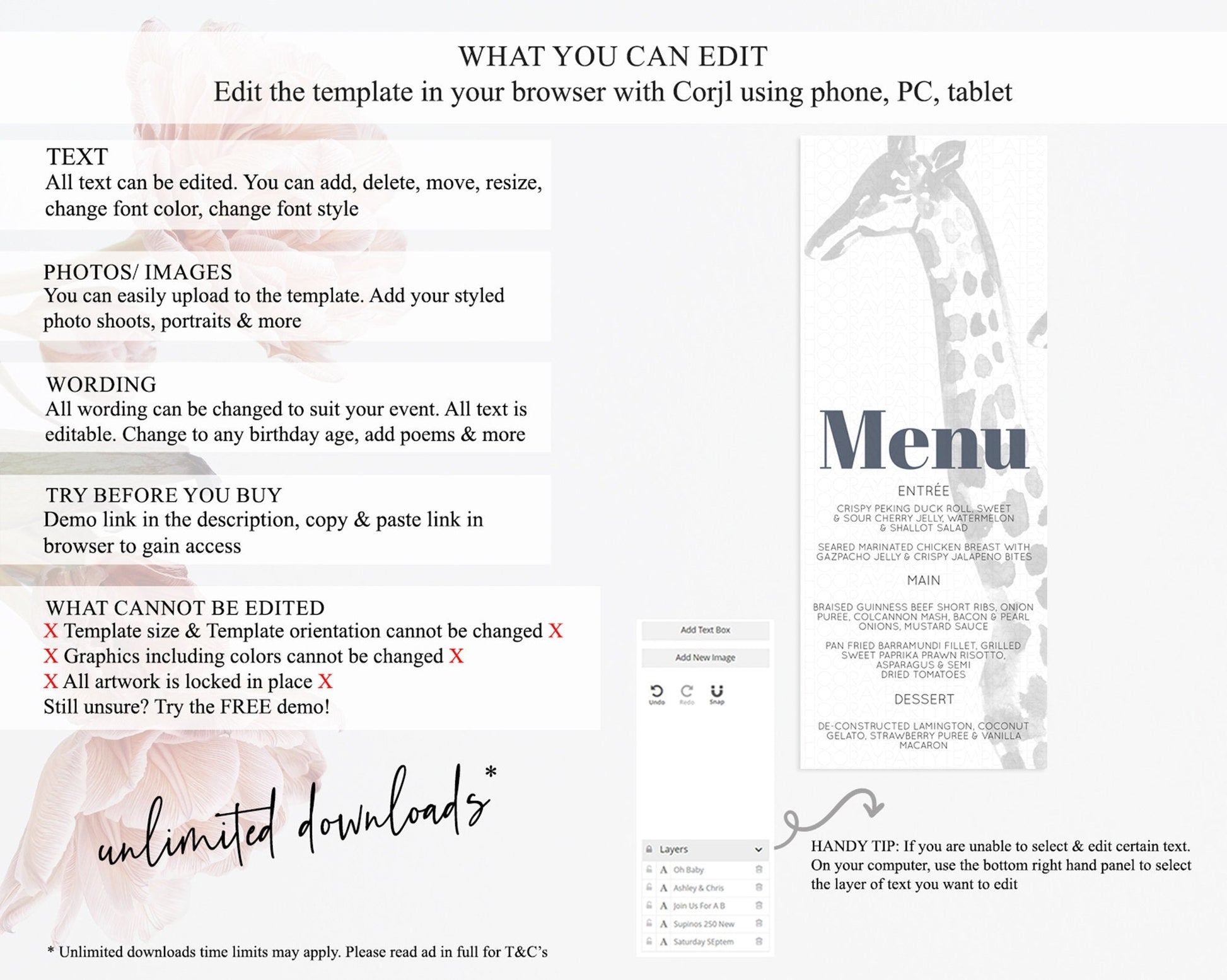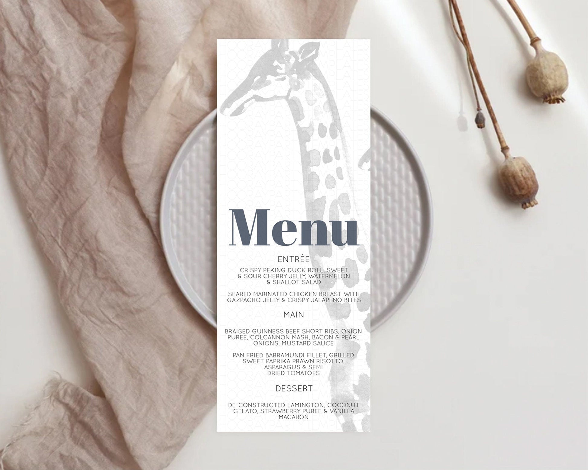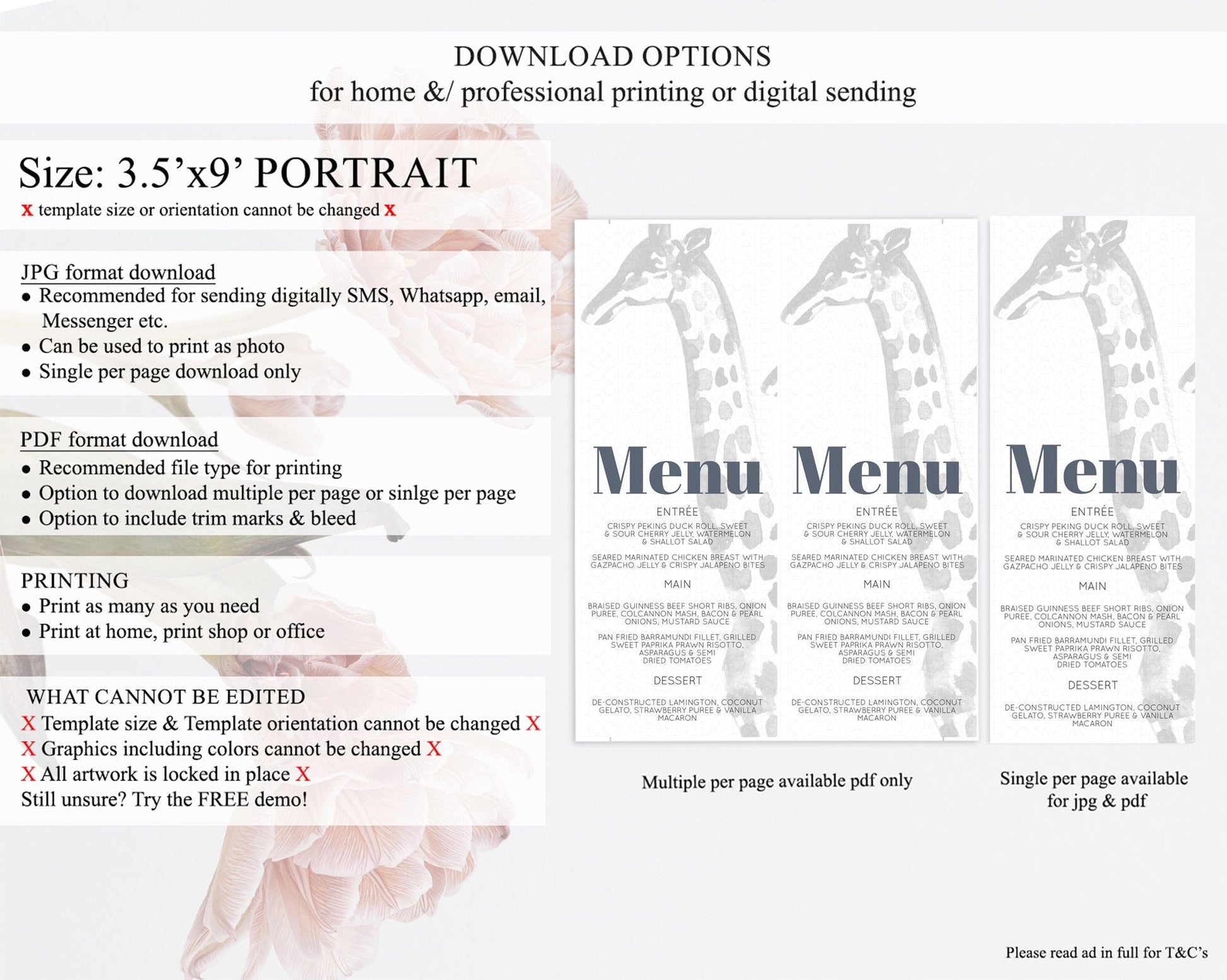Giraffe Menu Giraffe Menu Template Giraffe Party Table Decor Safari Adventure Decor Zoo Giraffe Dinner Dessert Party Food Menu D10306