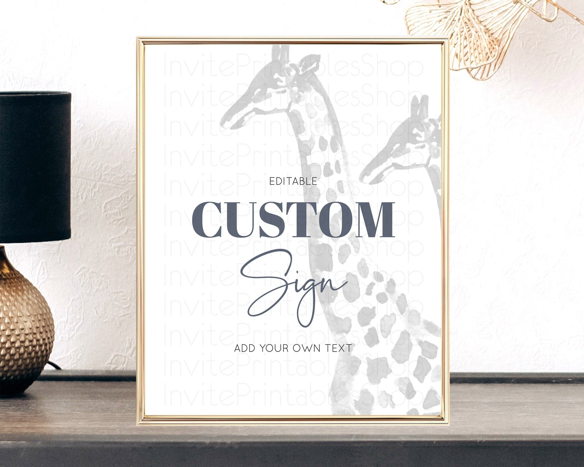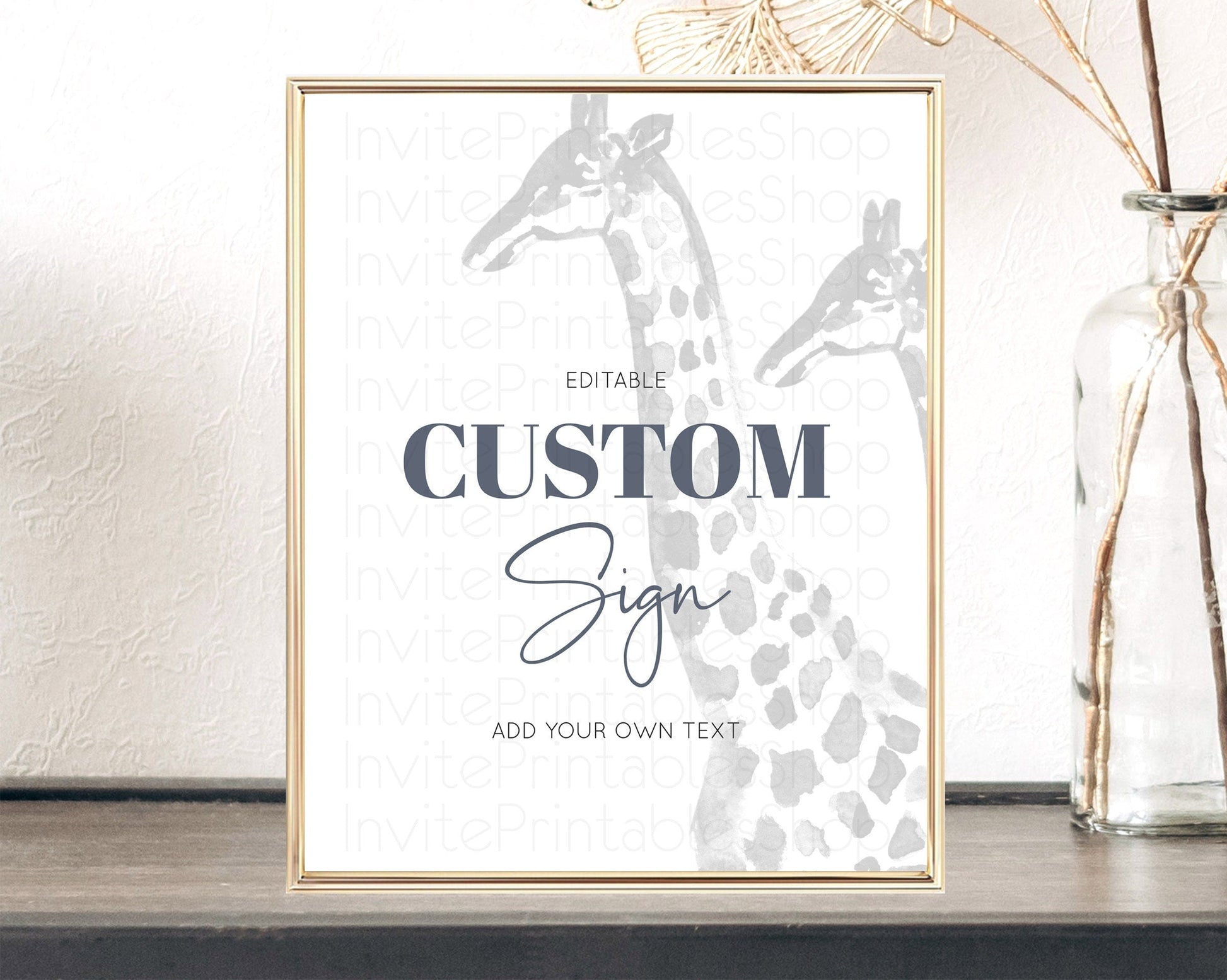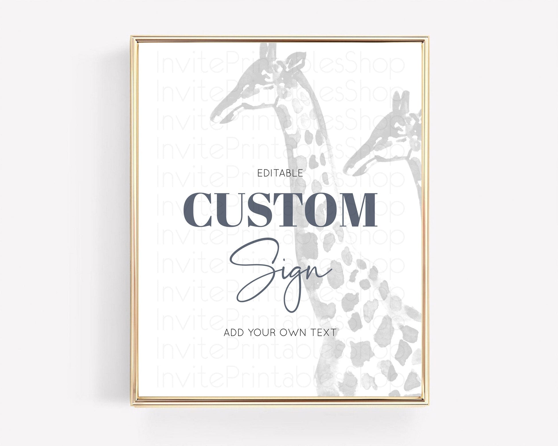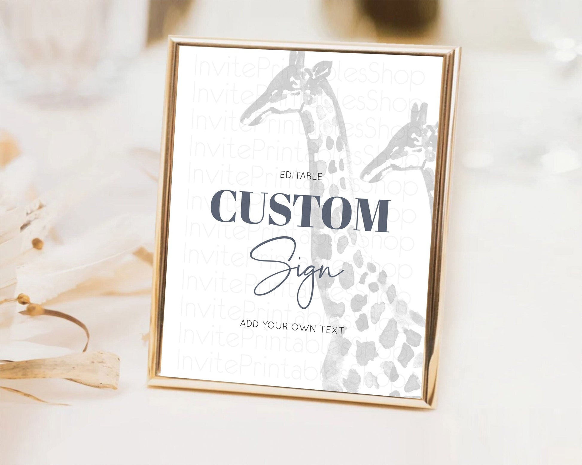 Giraffe Sign Giraffe Party Sign Template Safari Adventure Table Sign Decor Giraffe Minimal Theme 1st Birthday Baptism Baby Shower D10306