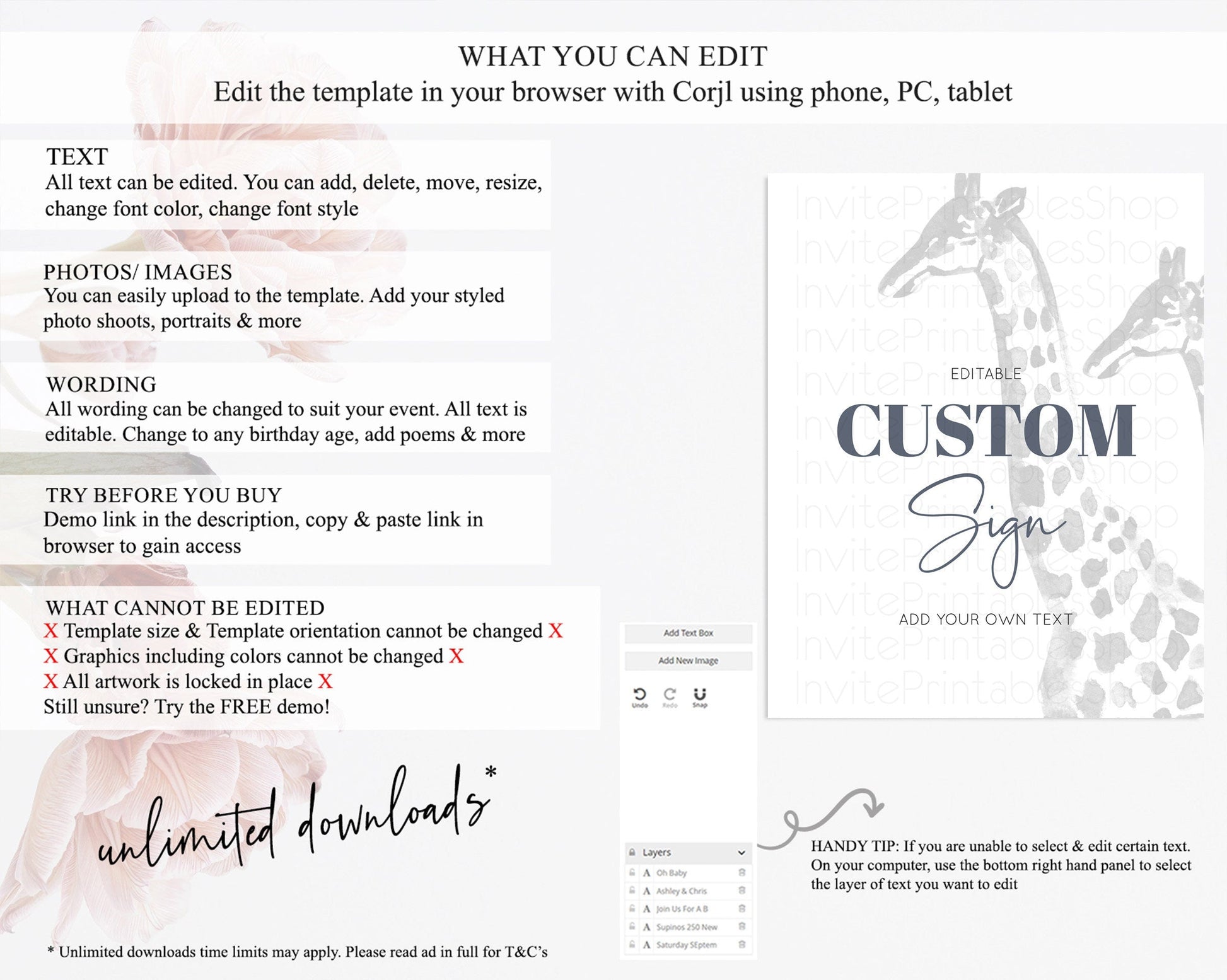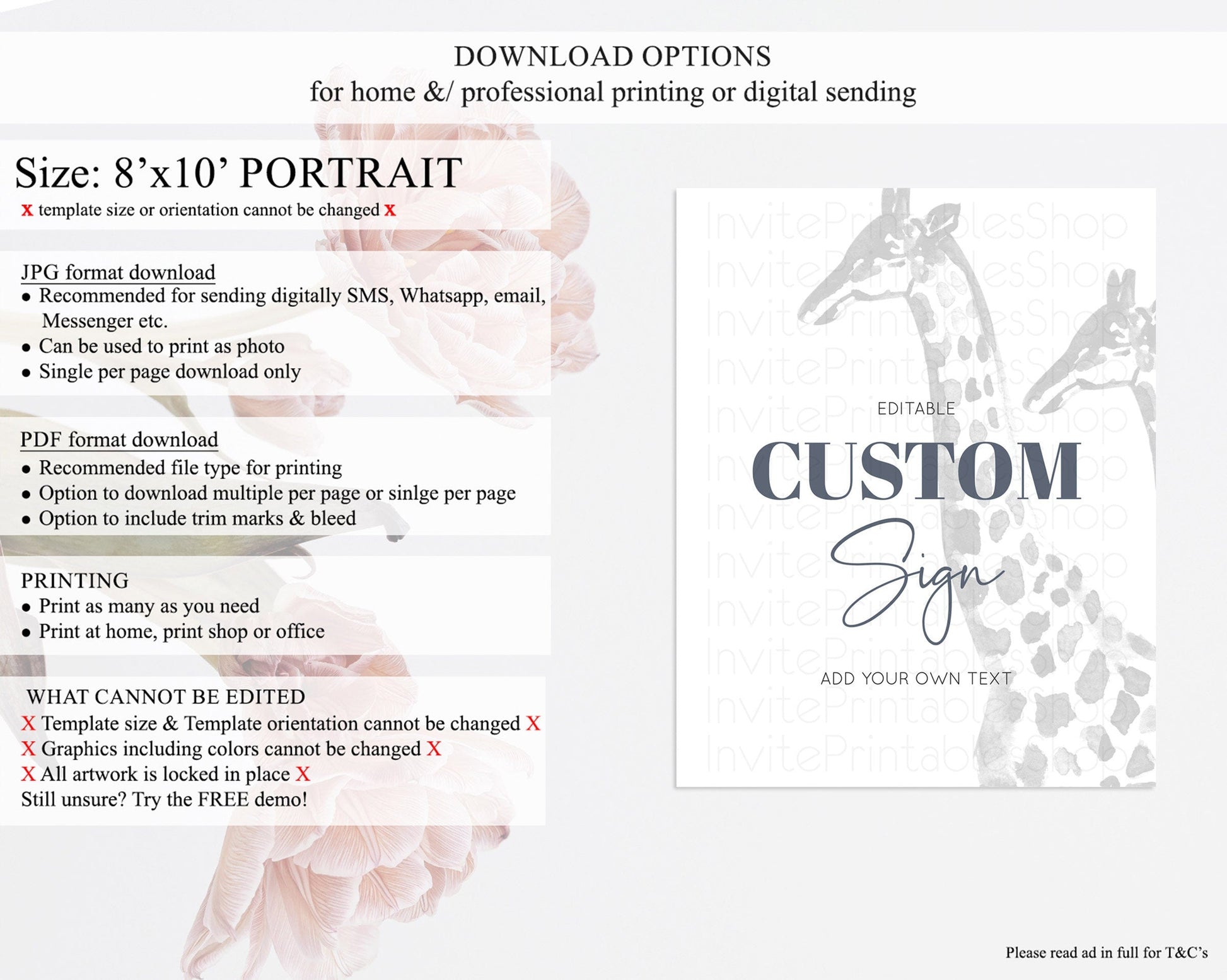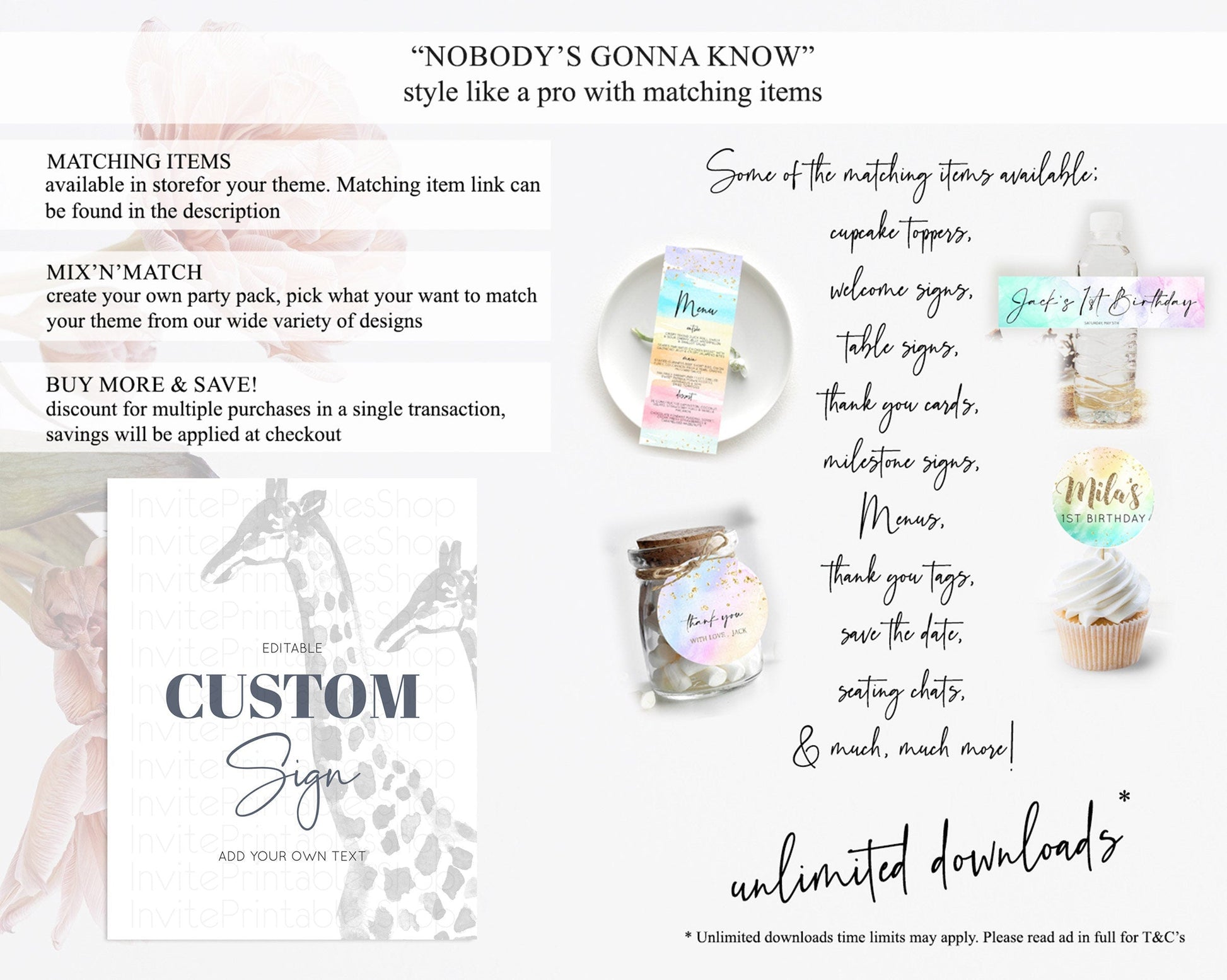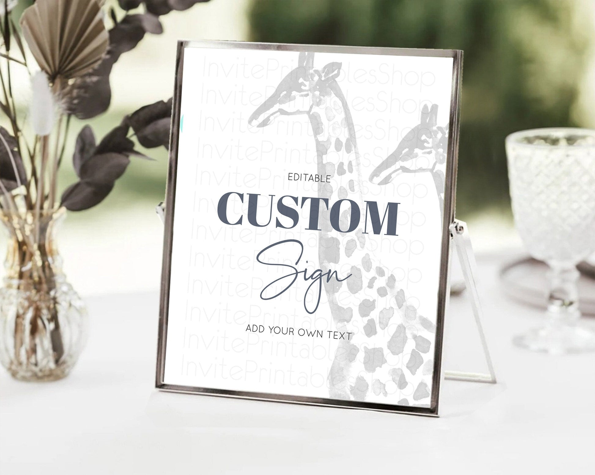 Giraffe Sign Giraffe Party Sign Template Safari Adventure Table Sign Decor Giraffe Minimal Theme 1st Birthday Baptism Baby Shower D10306