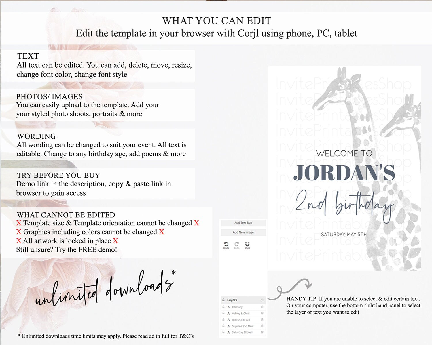 • After purchase, Corjl emails your editing link. Allow up to 15 minutes for delivery.