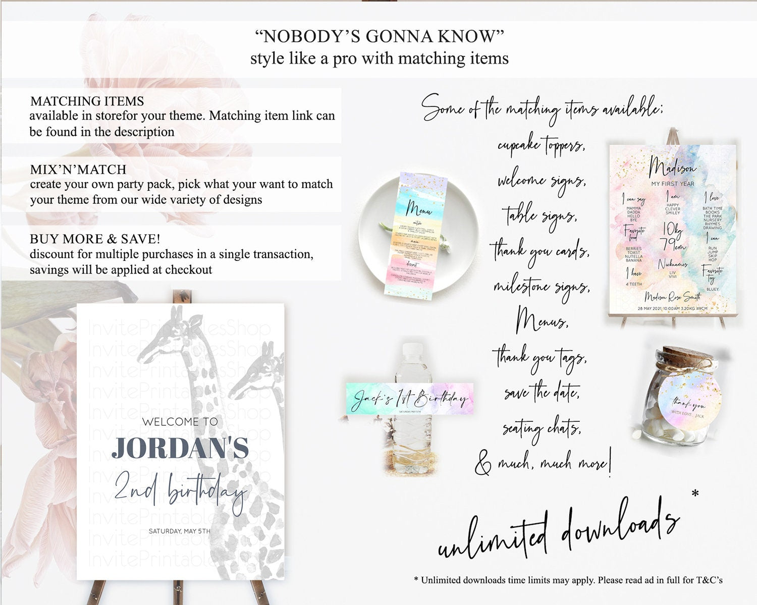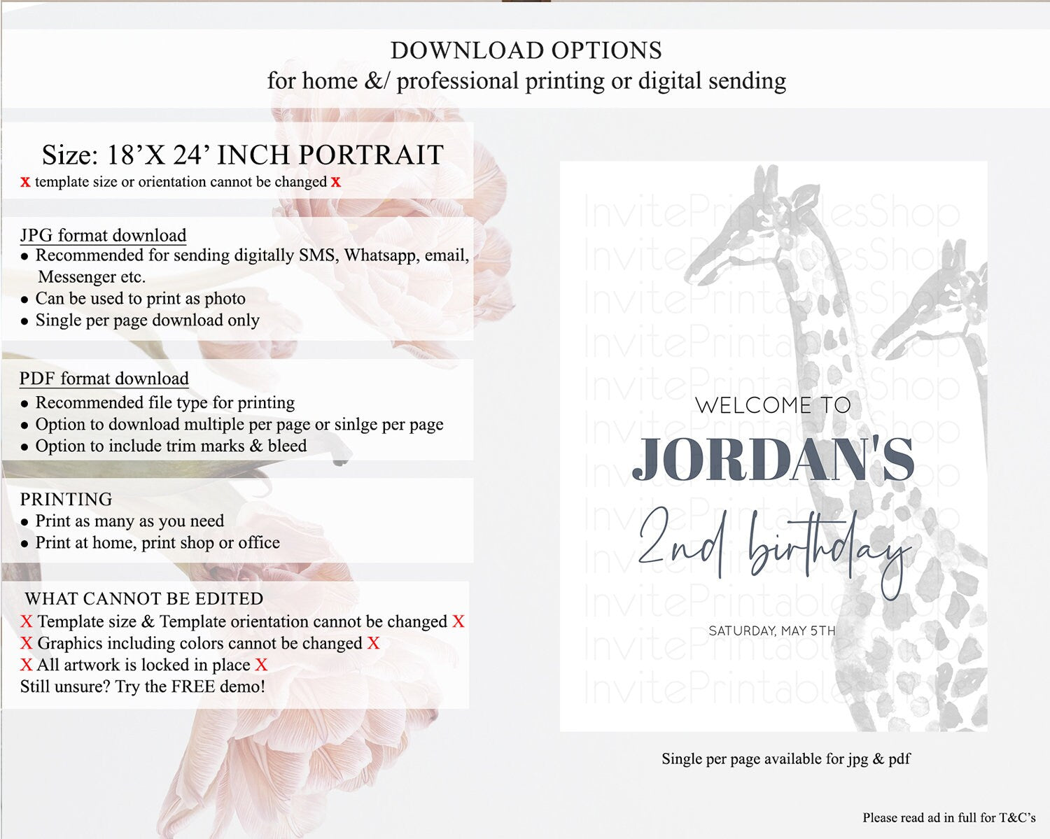 Giraffe Welcome Sign Giraffe Welcome Board Giraffe Party Welcome Poster Safari Adventure Decor Giraffe First Birthday Welcome Sign D10306