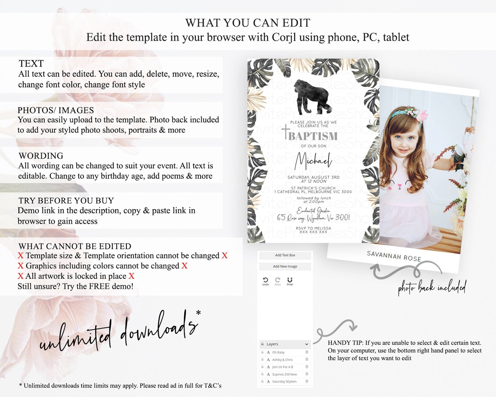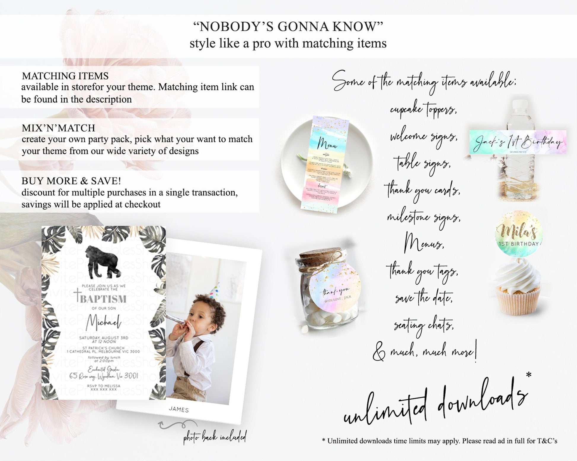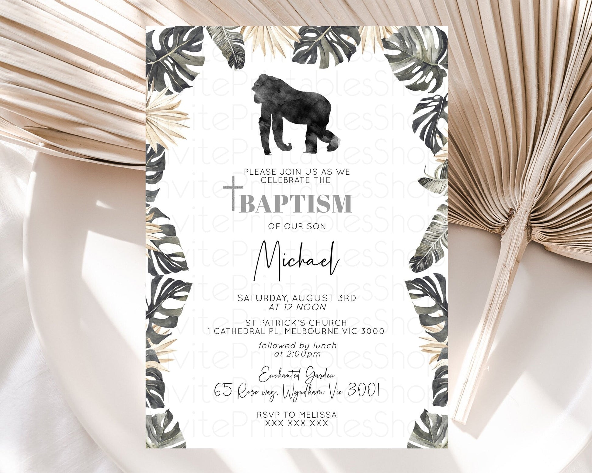 Gorilla Baptism Invitation Gorilla Baptism 1st Birthday Invitation Gorilla Jungle Adventure Christening Invitation Wild Zoo Theme D10804