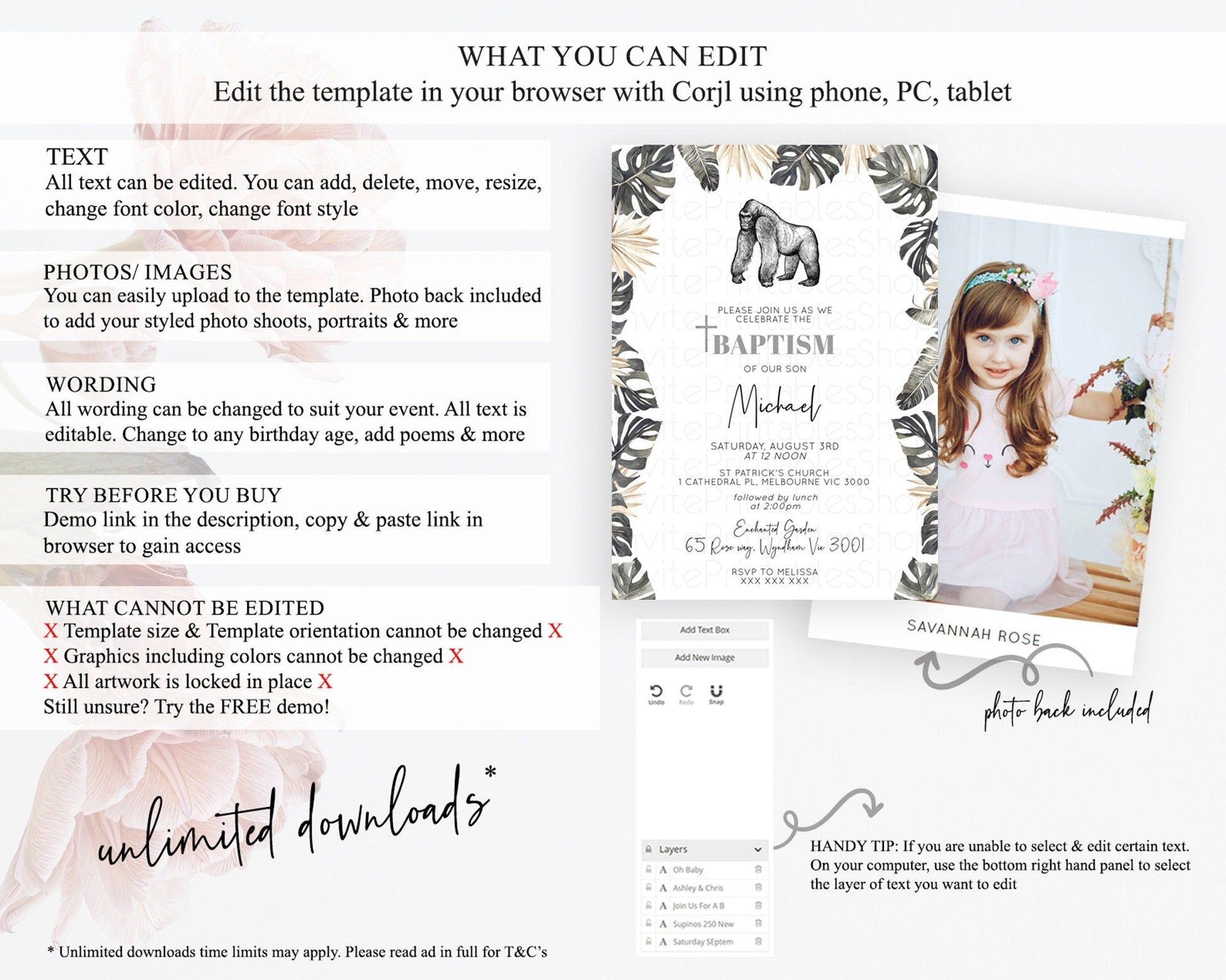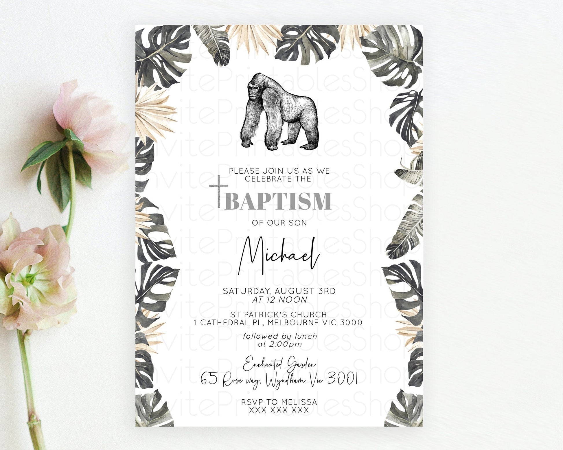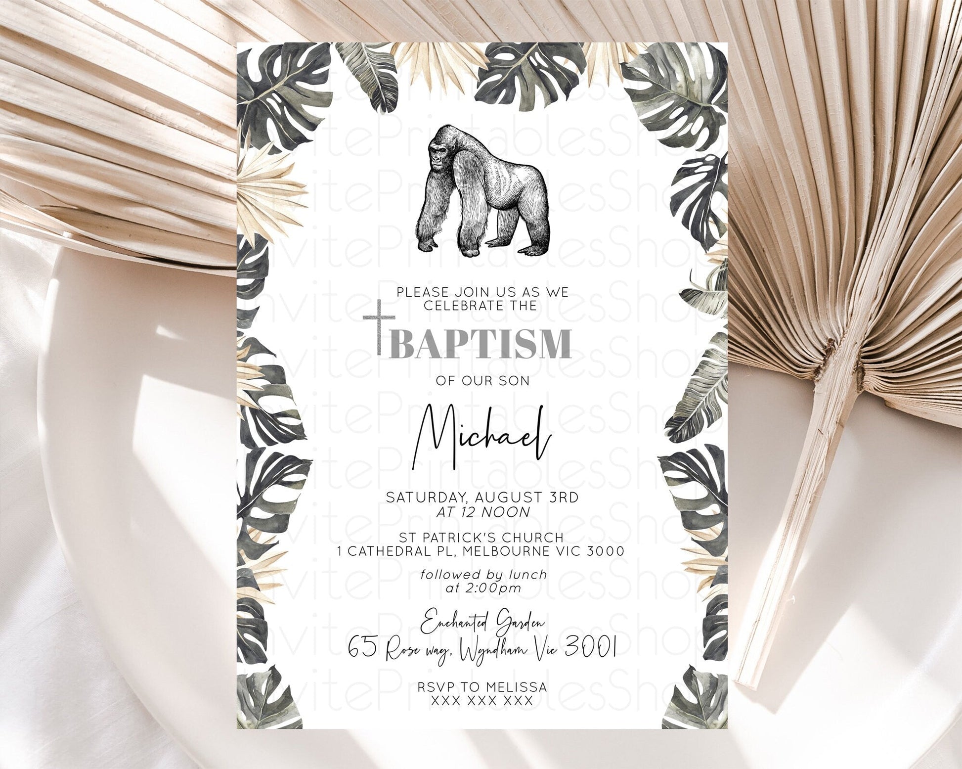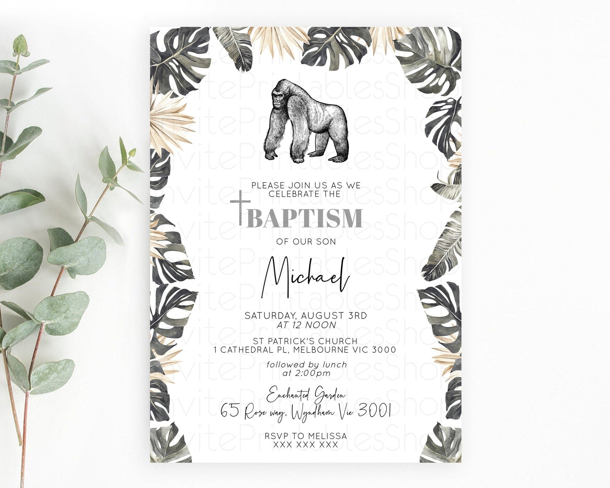 Gorilla Baptism Invitation Gorilla Baptism 1st Birthday Invitation Gorilla Jungle Adventure Christening Invitation Wild Zoo Theme D10825