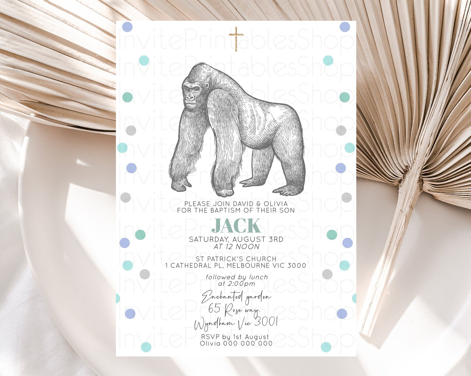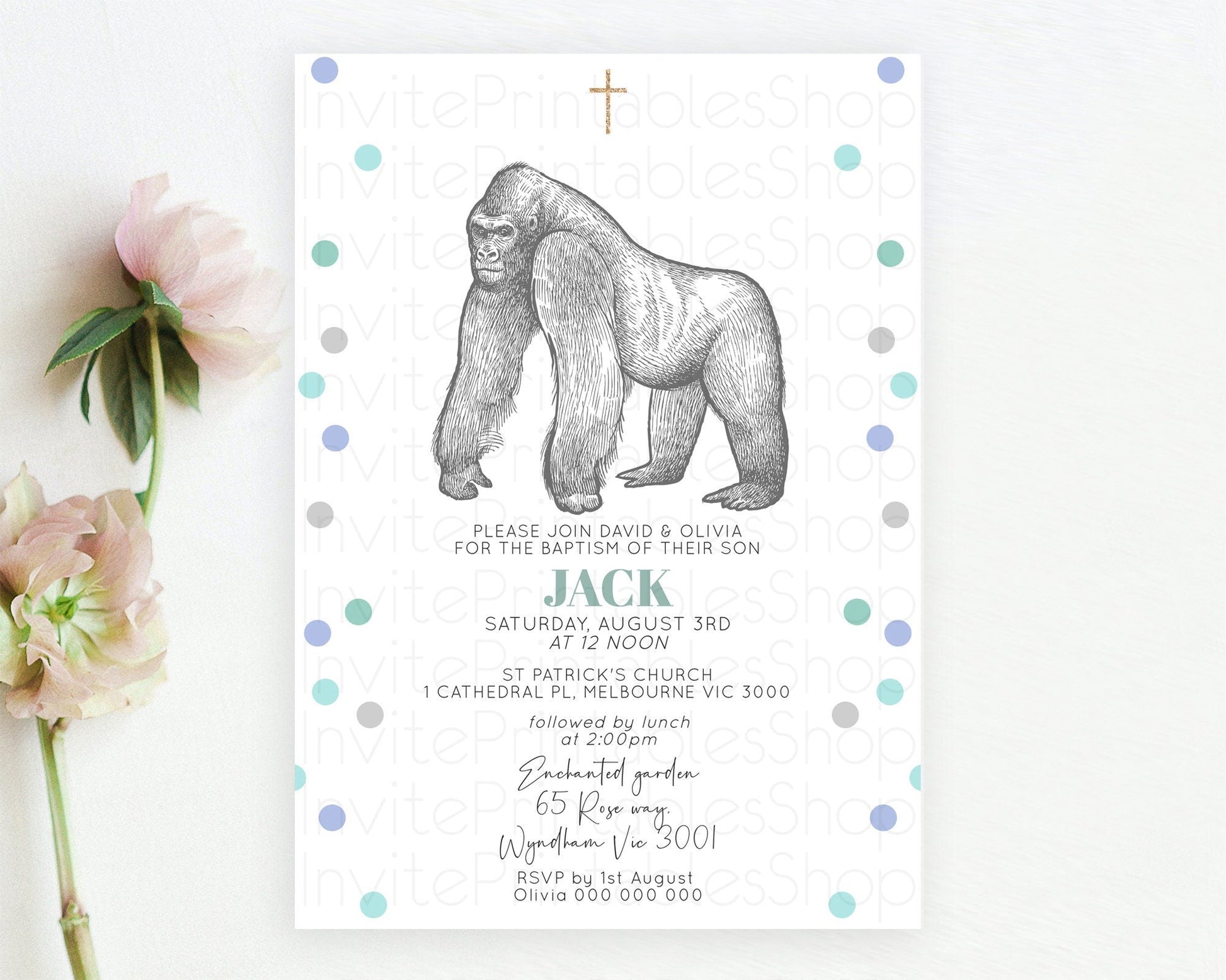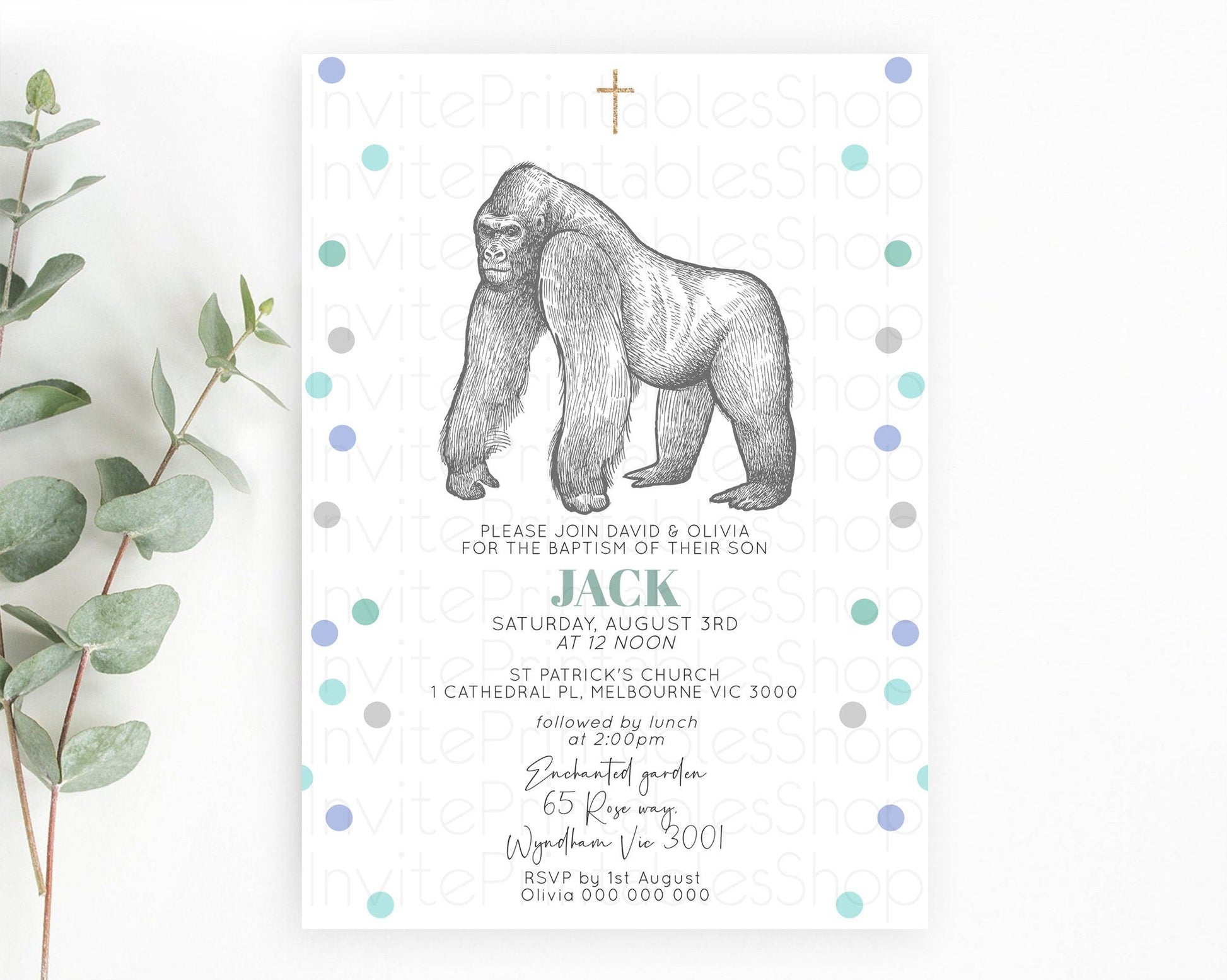 Gorilla Baptism Invitation Gorilla Baptism 1st Birthday Invitation Gorilla Jungle Adventure Christening Invitation Wild Zoo Theme D10854