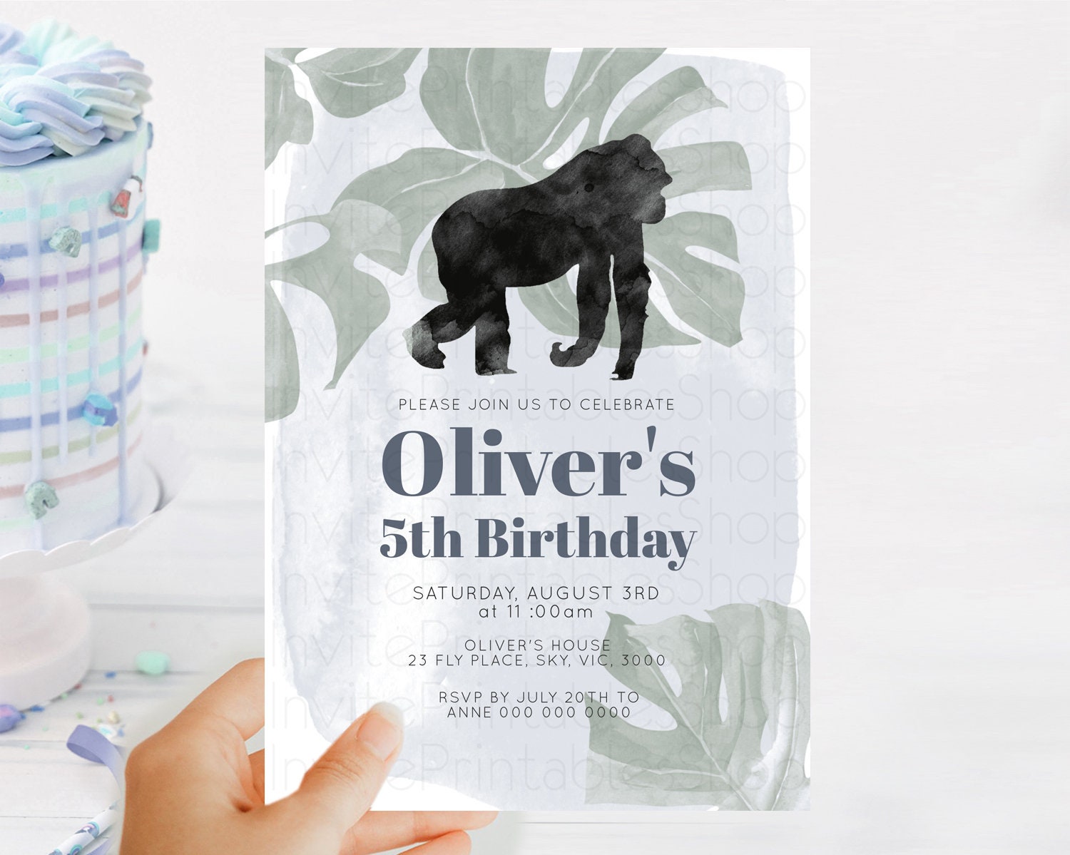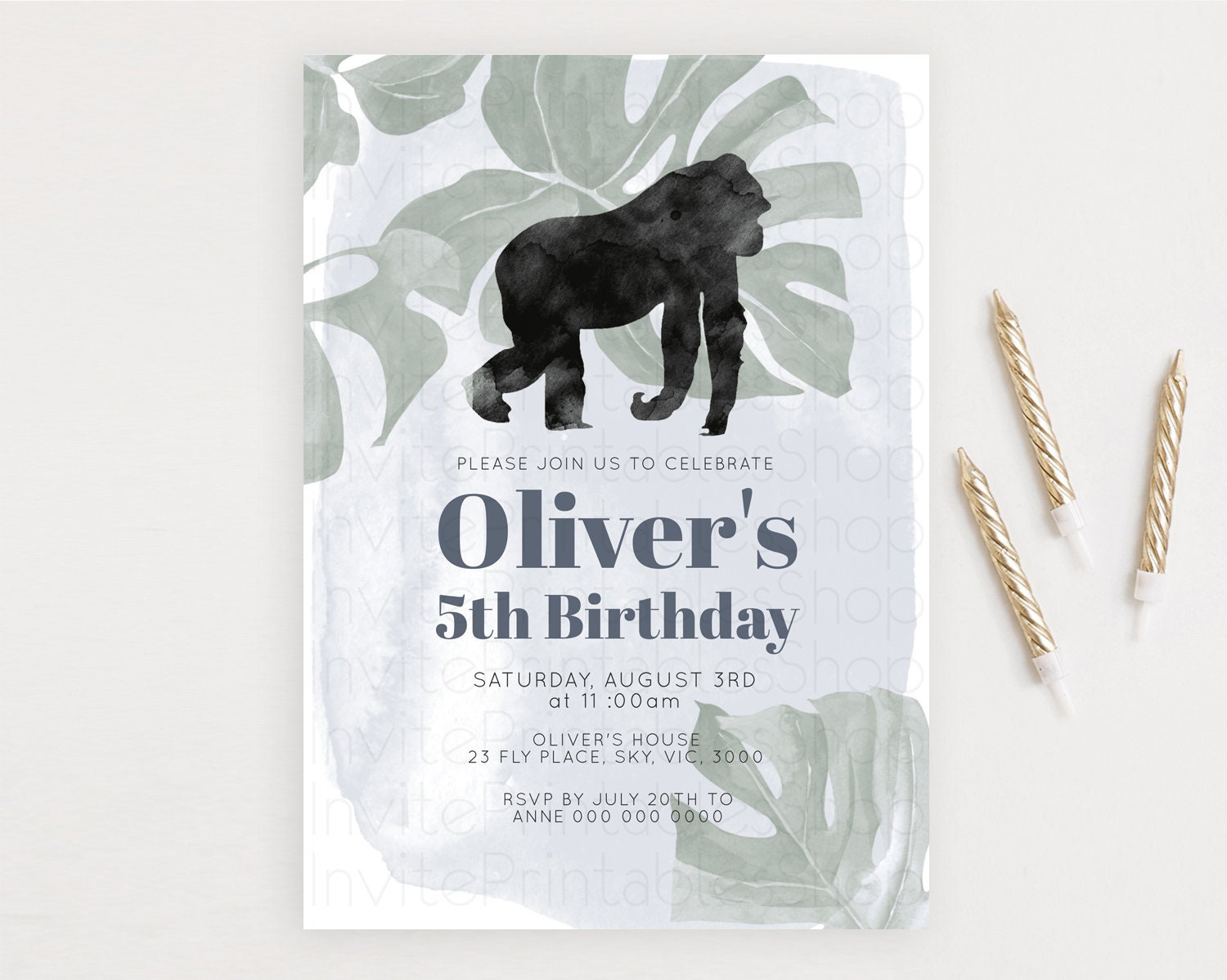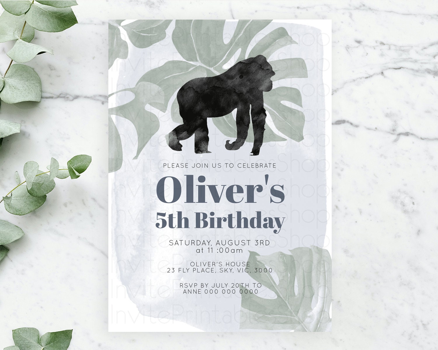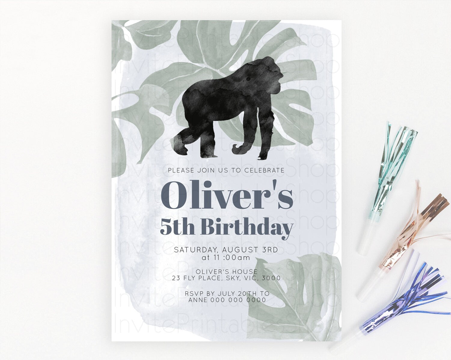 Gorilla Birthday Invitation Gorilla Invitation Gorilla Birthday Jungle Gorilla Party Jungle Adventure Zoo Party Animals Two Wild ONE D10443