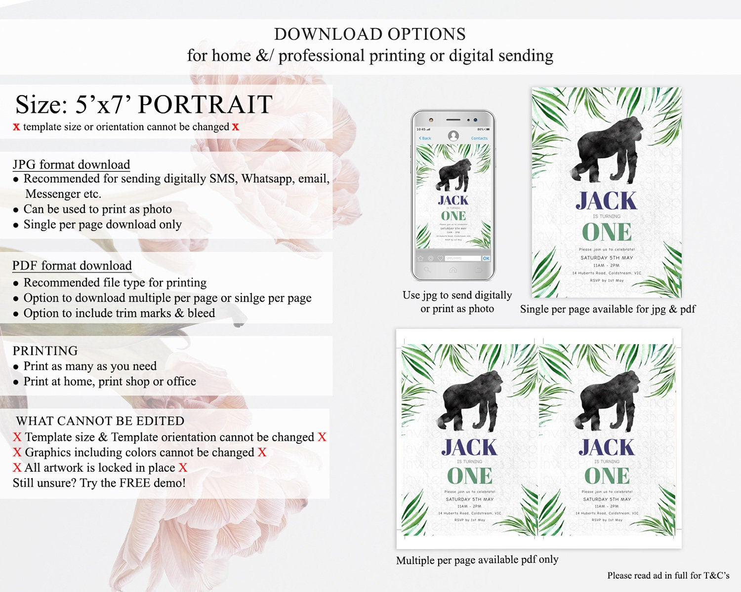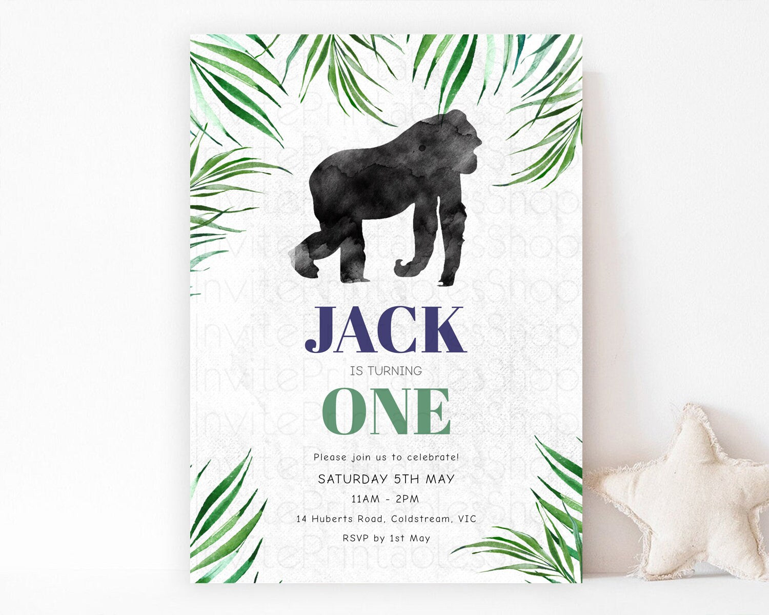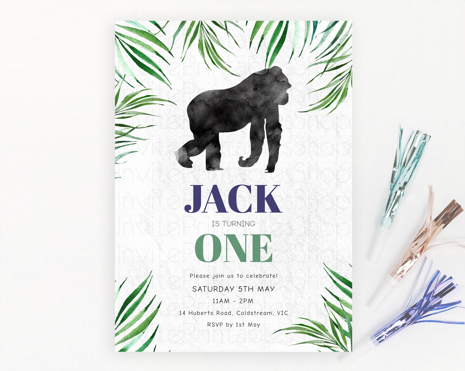 Gorilla Birthday Invitation Gorilla Invitation Gorilla Birthday Jungle Gorilla Party Jungle Adventure Zoo Party Animals Two Wild ONE D10840