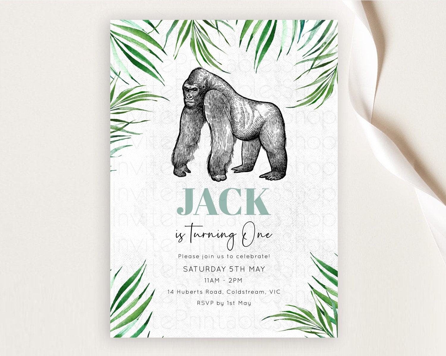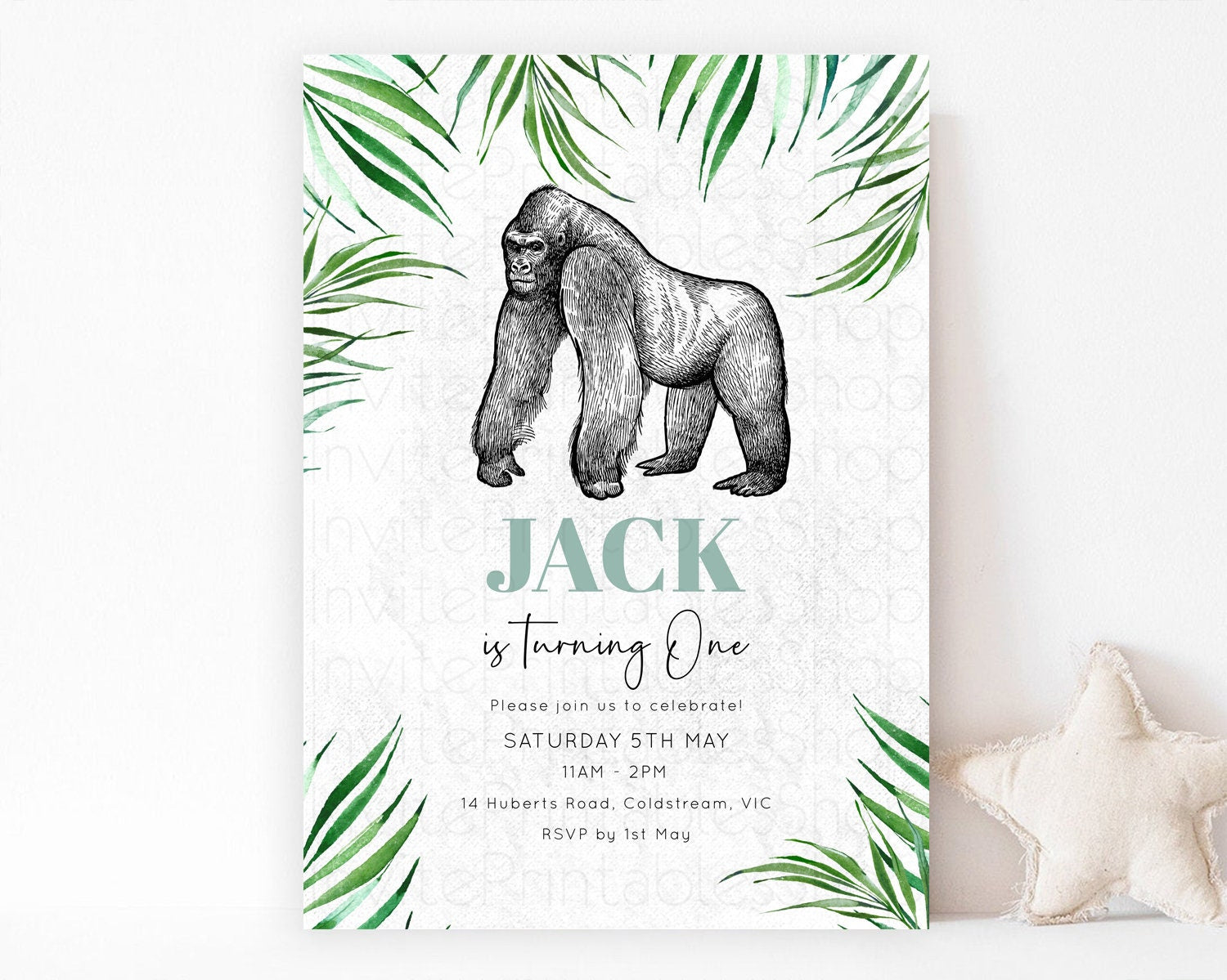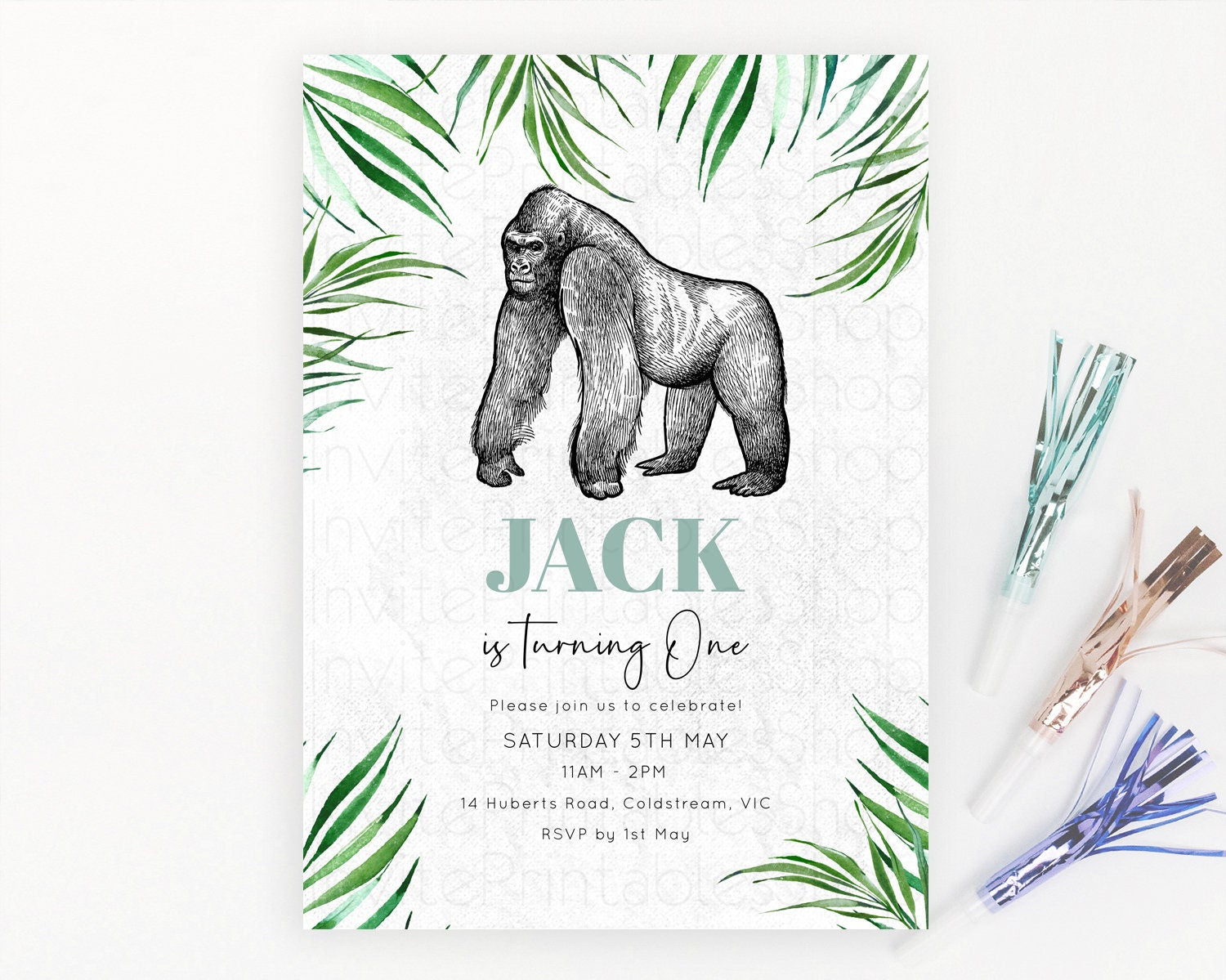 Gorilla Birthday Invitation Gorilla Invitation Gorilla Birthday Jungle Gorilla Party Jungle Adventure Zoo Party Animals Two Wild ONE D10846