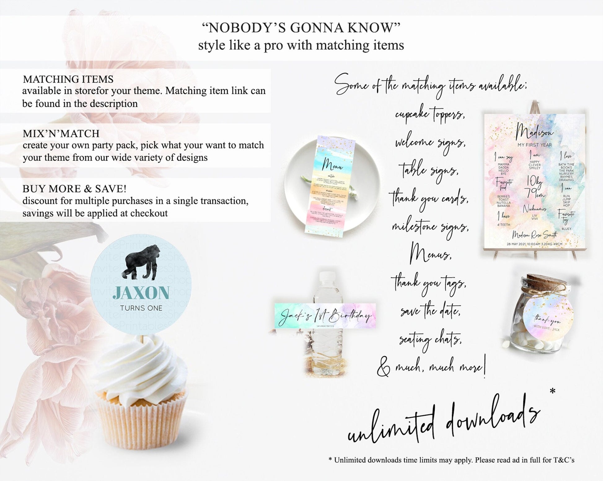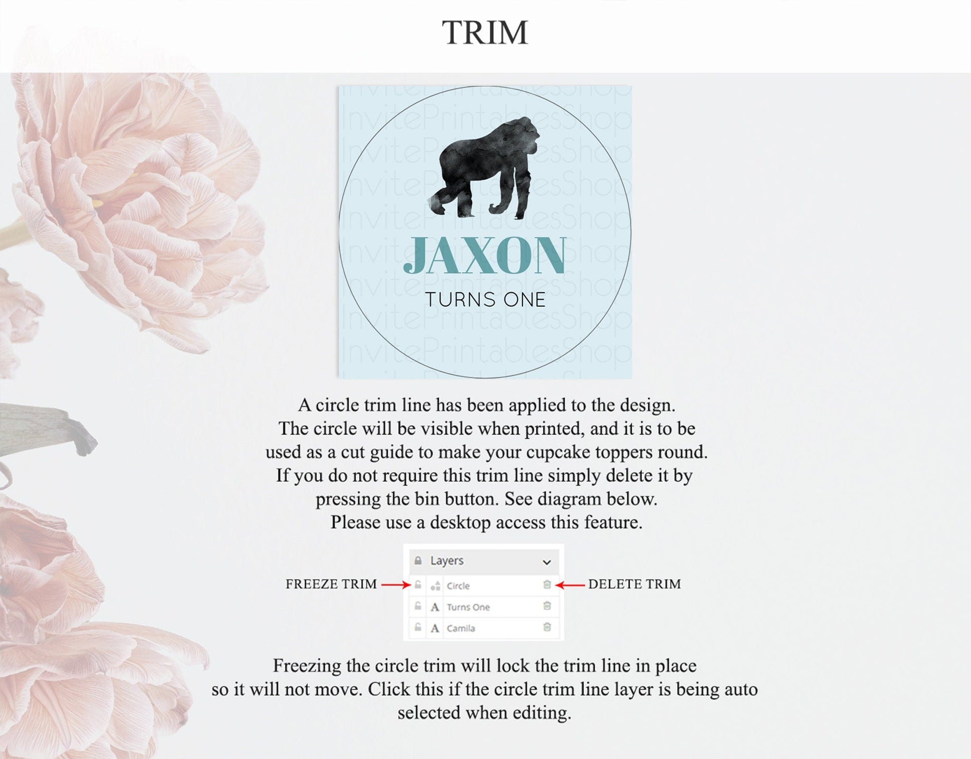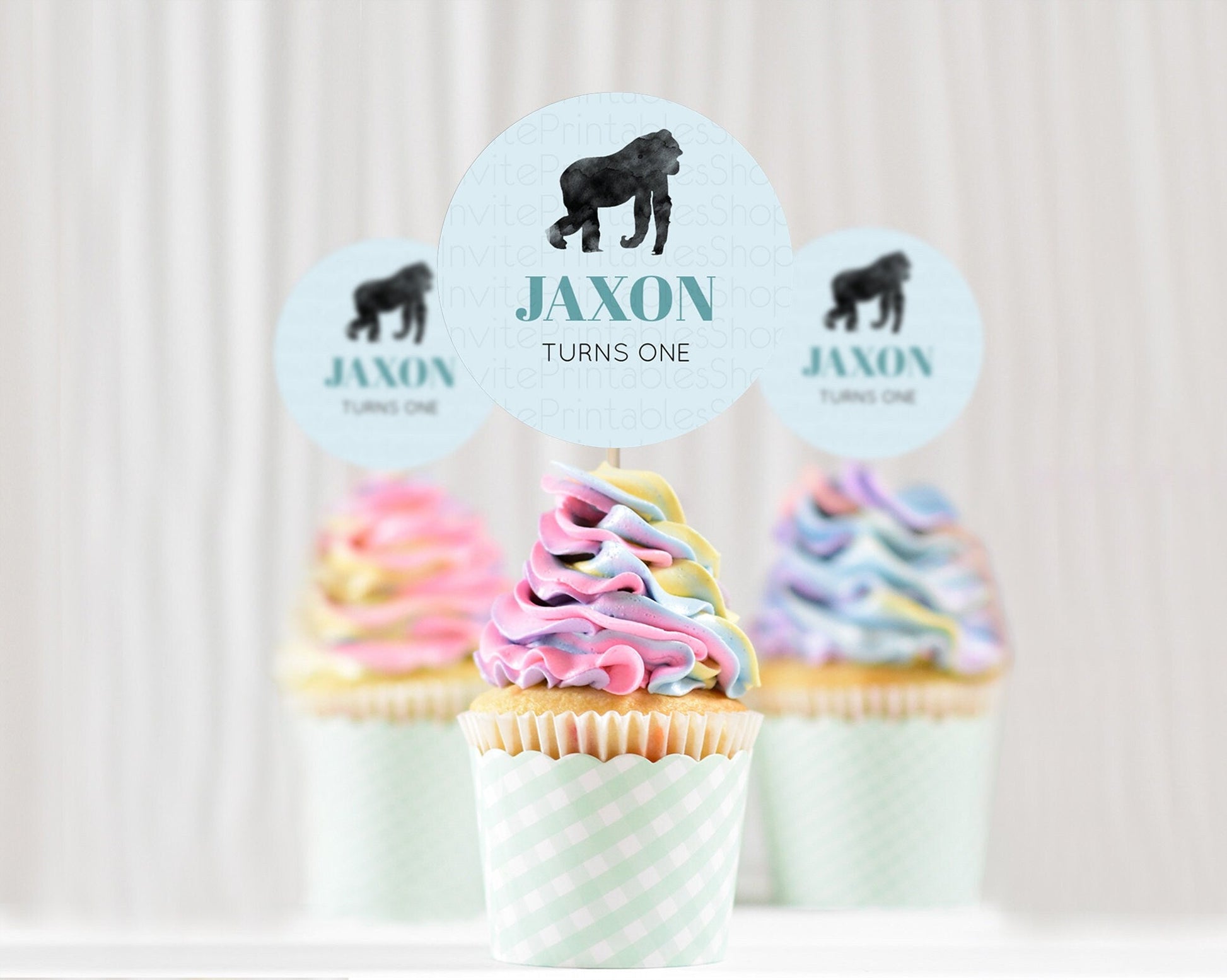 Gorilla Cupcake Toppers Jungle Gorilla Cupcake Gorilla Party Decor Gorilla Jungle Adventure Zoo Green Palm Leaf Fern First Birthday D10799