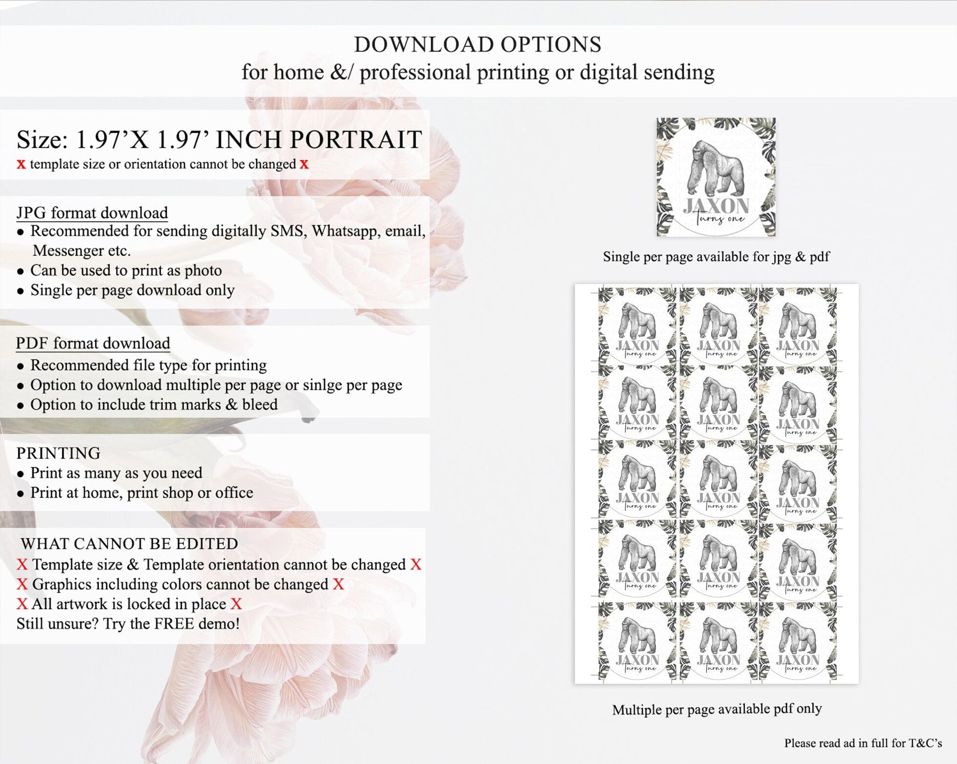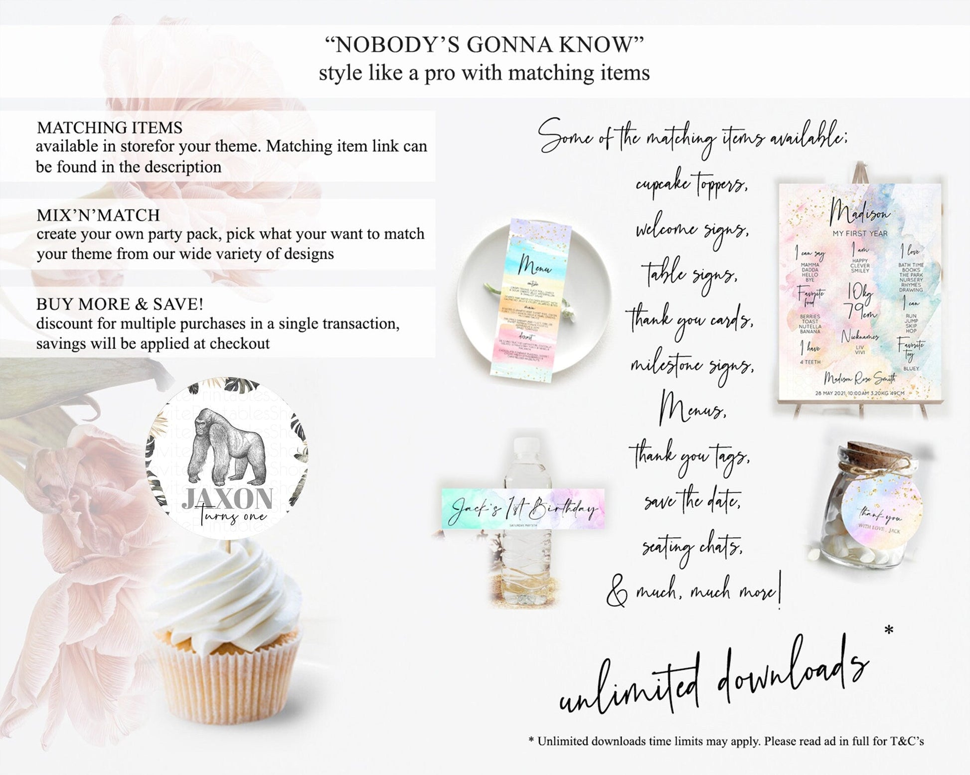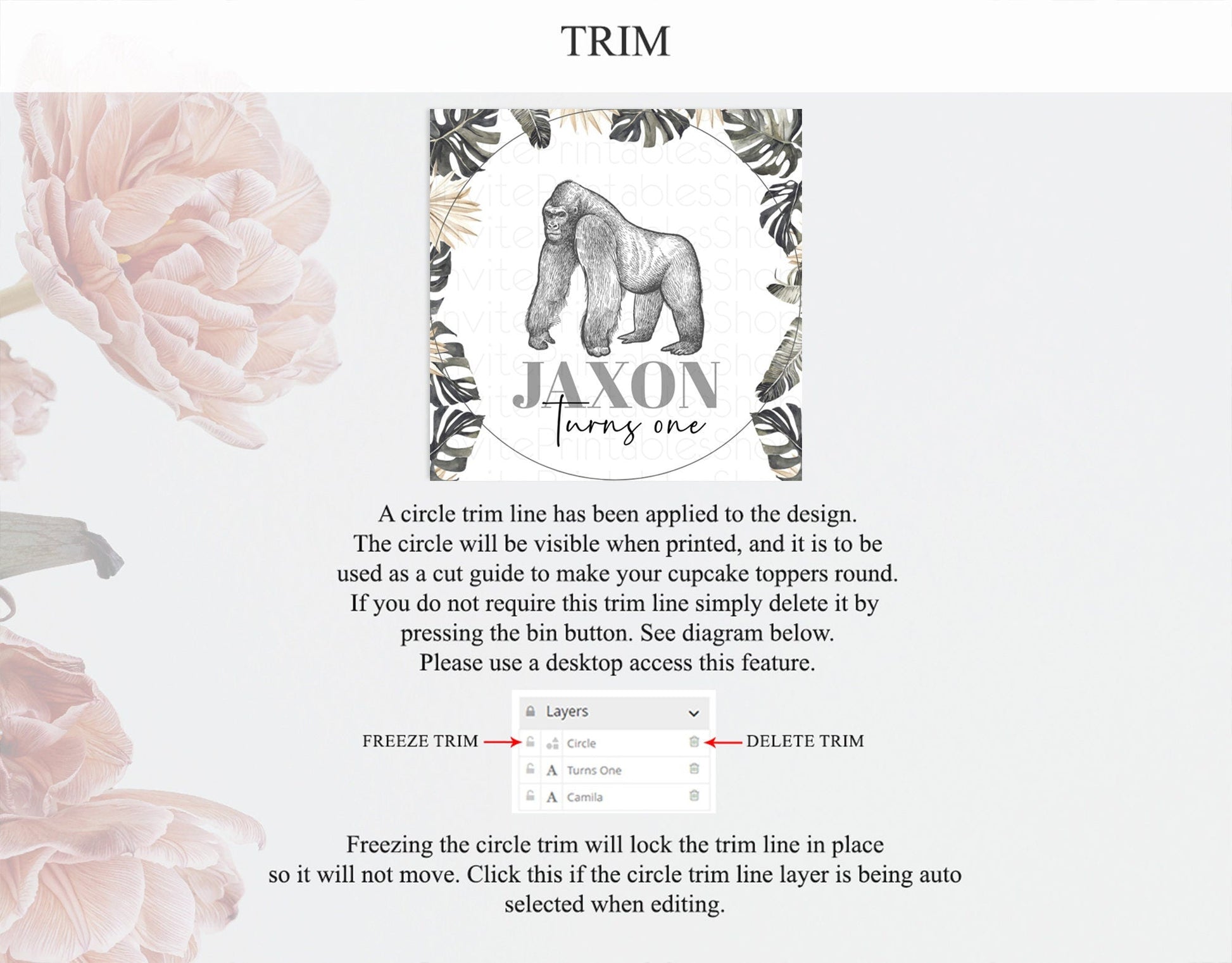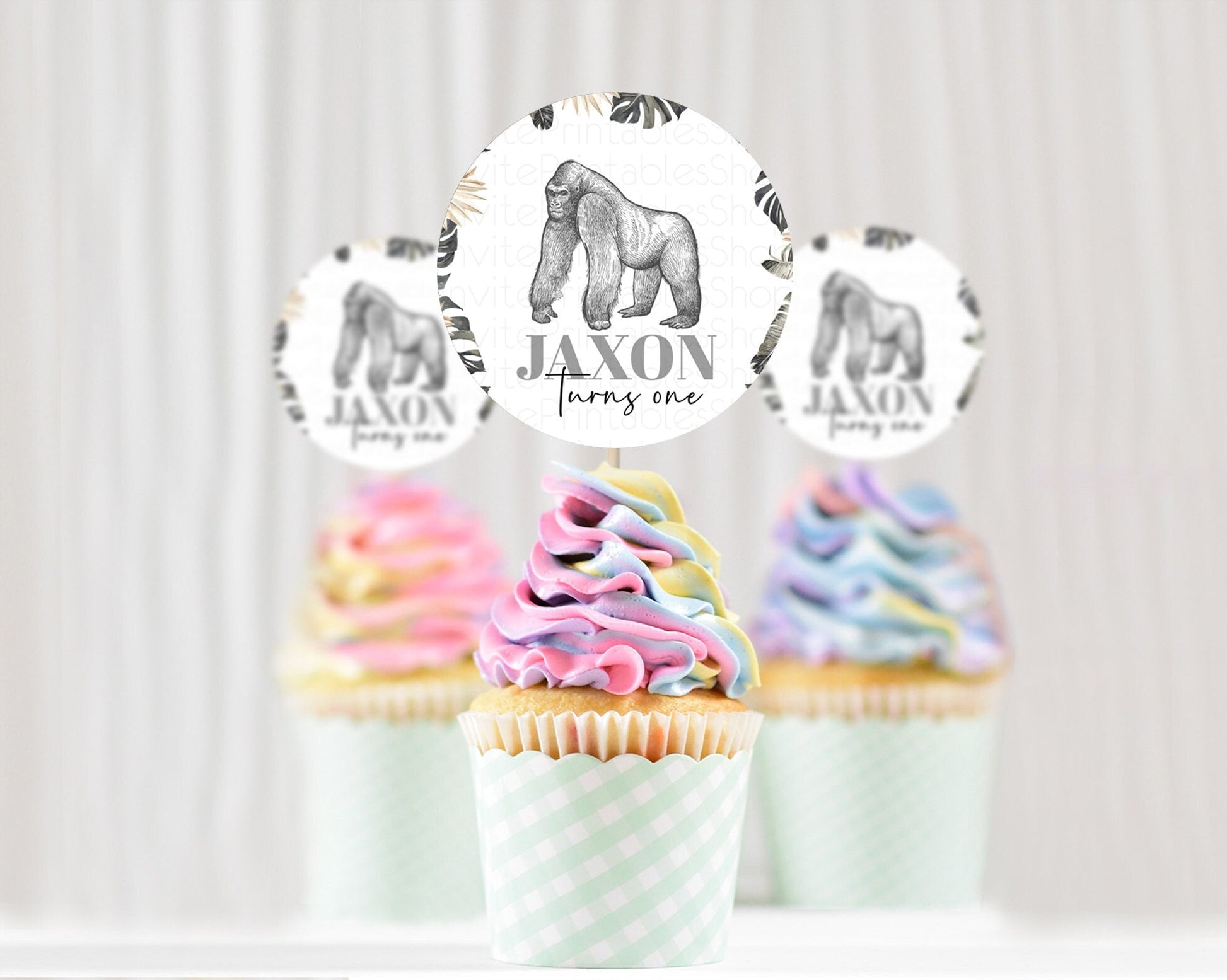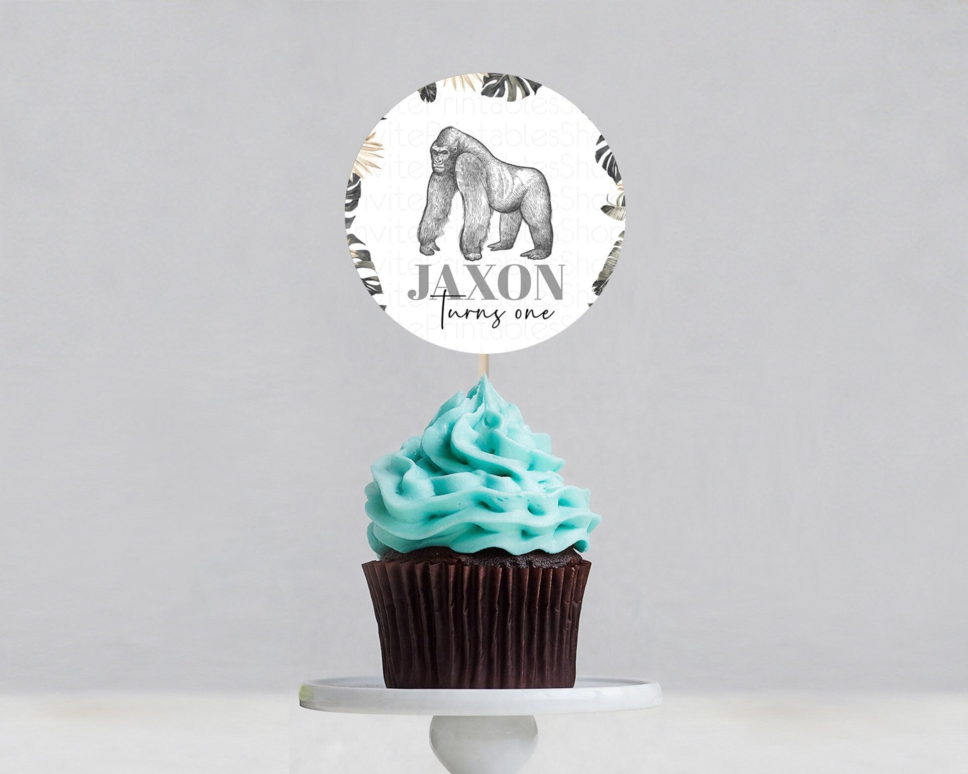 Gorilla Cupcake Toppers Jungle Gorilla Cupcake Gorilla Party Decor Gorilla Jungle Adventure Zoo Green Palm Leaf Fern First Birthday D10825