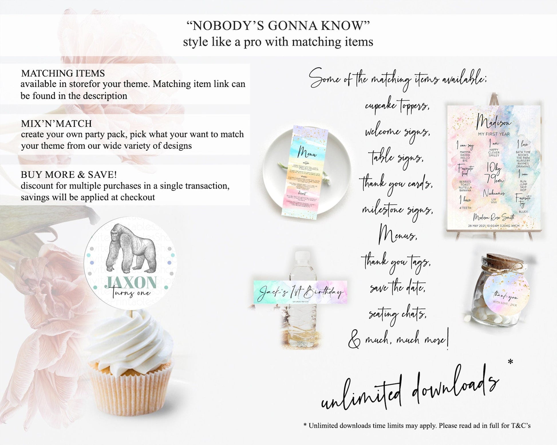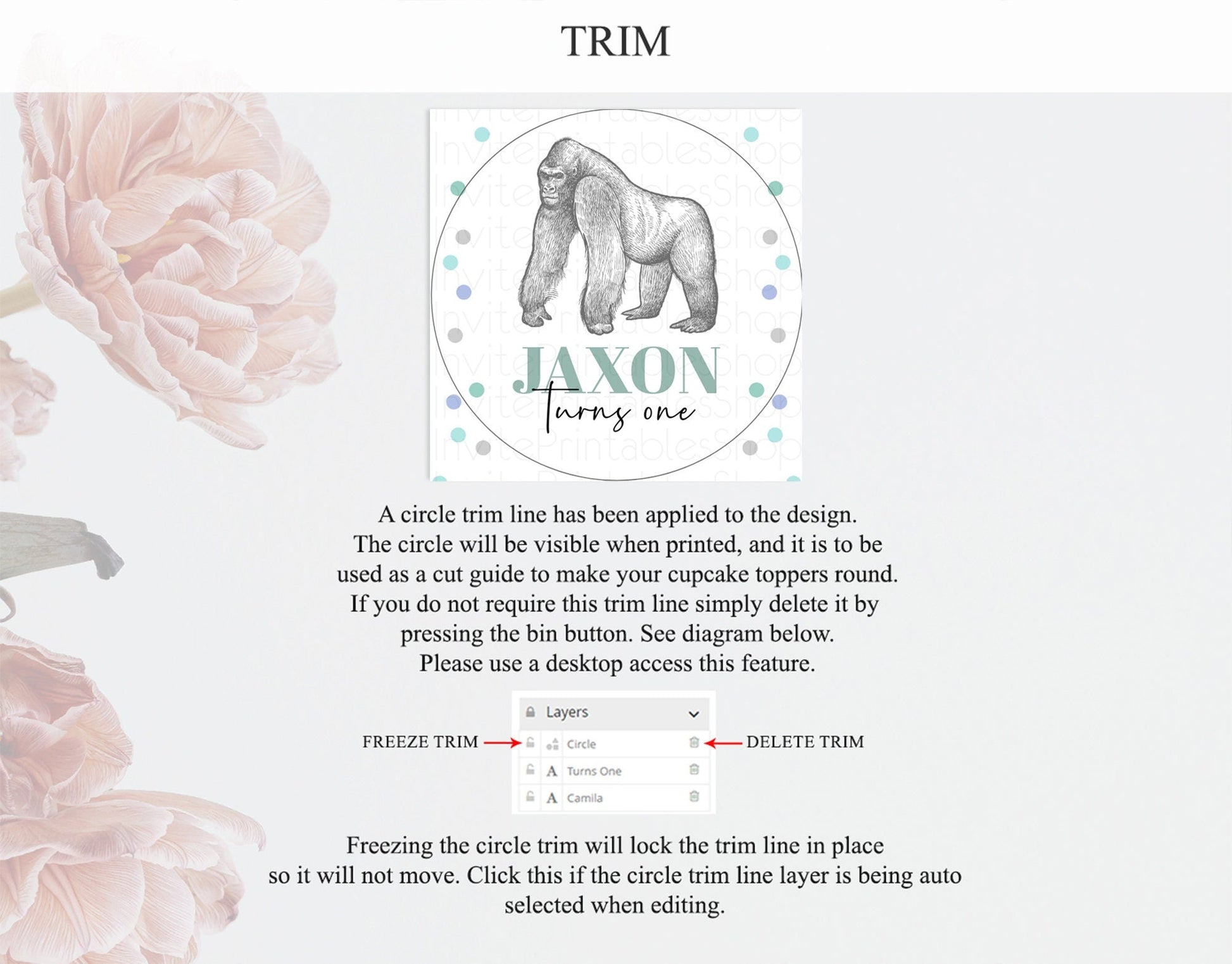 Gorilla Cupcake Toppers Jungle Gorilla Cupcake Gorilla Party Decor Gorilla Jungle Adventure Zoo Green Palm Leaf Fern First Birthday D10854