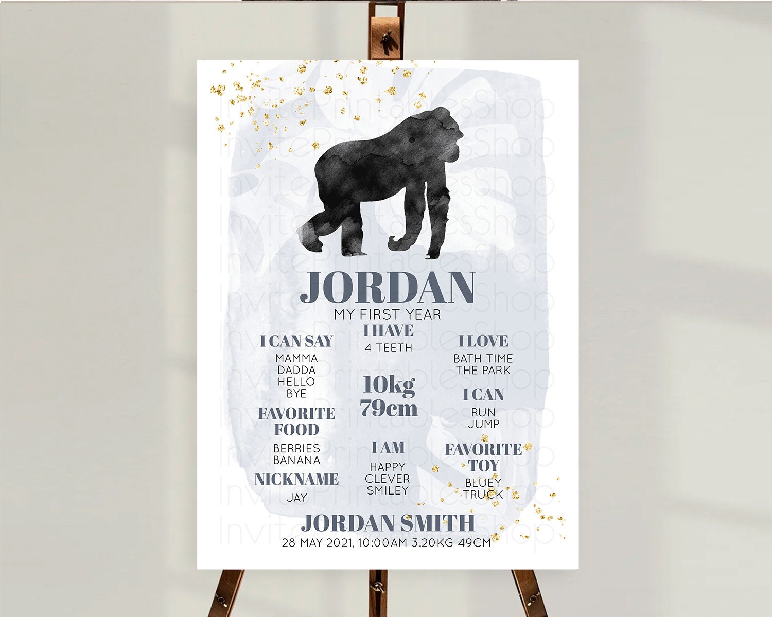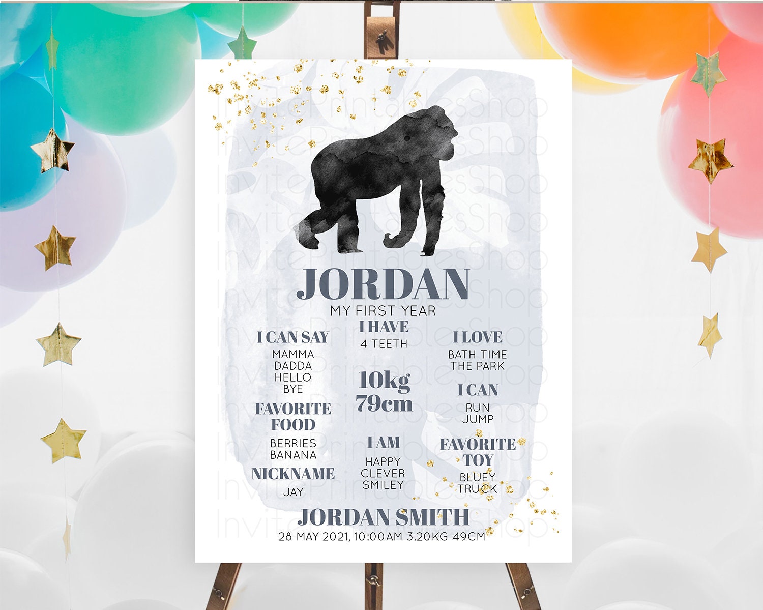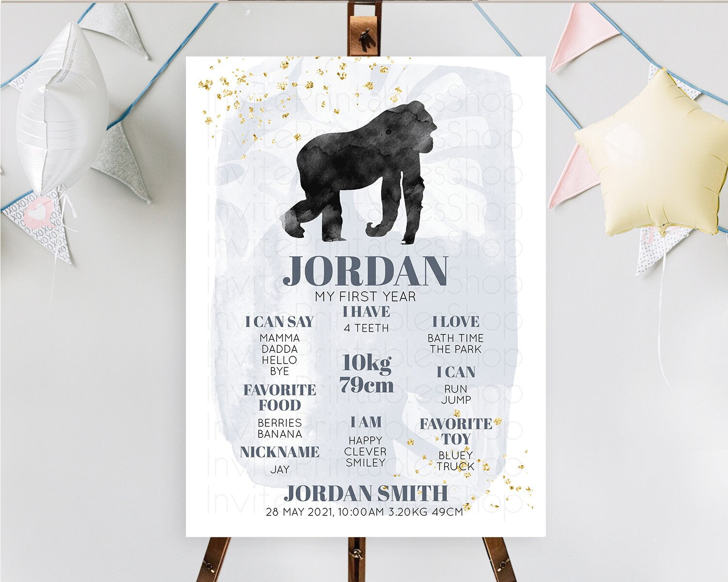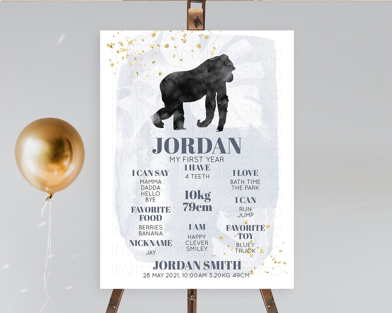 Gorilla First Birthday Milestone Board Gorilla Milestone Poster Gorilla Decor Safari Adventure Gorilla First Birthday Welcome Sign D10443