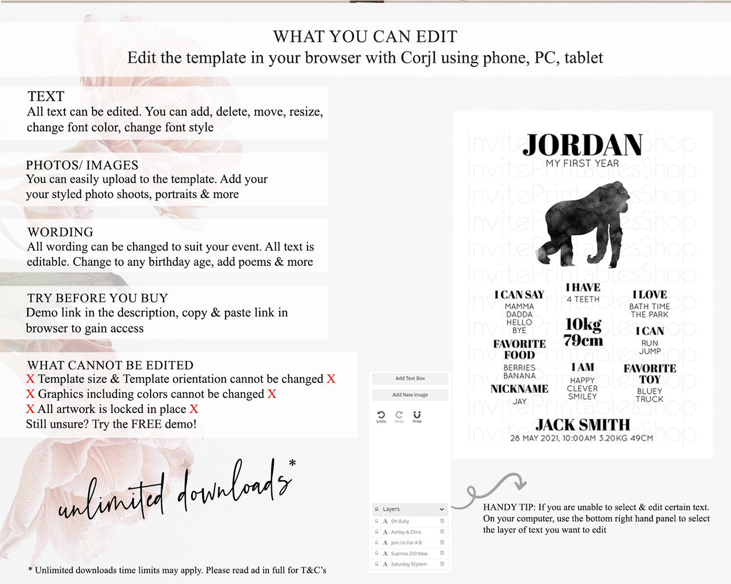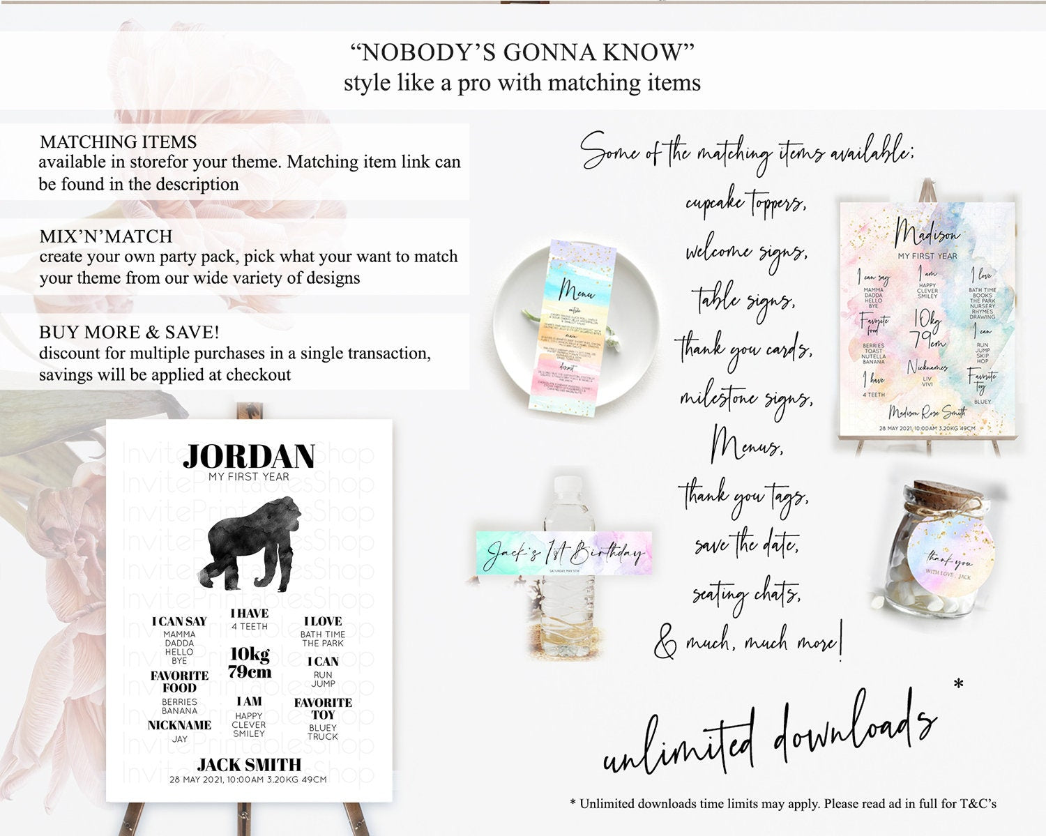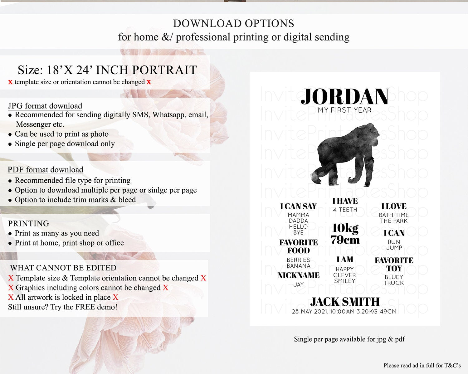 Gorilla First Birthday Milestone Board Gorilla Milestone Poster Gorilla Decor Safari Adventure Gorilla First Birthday Welcome Sign D10799