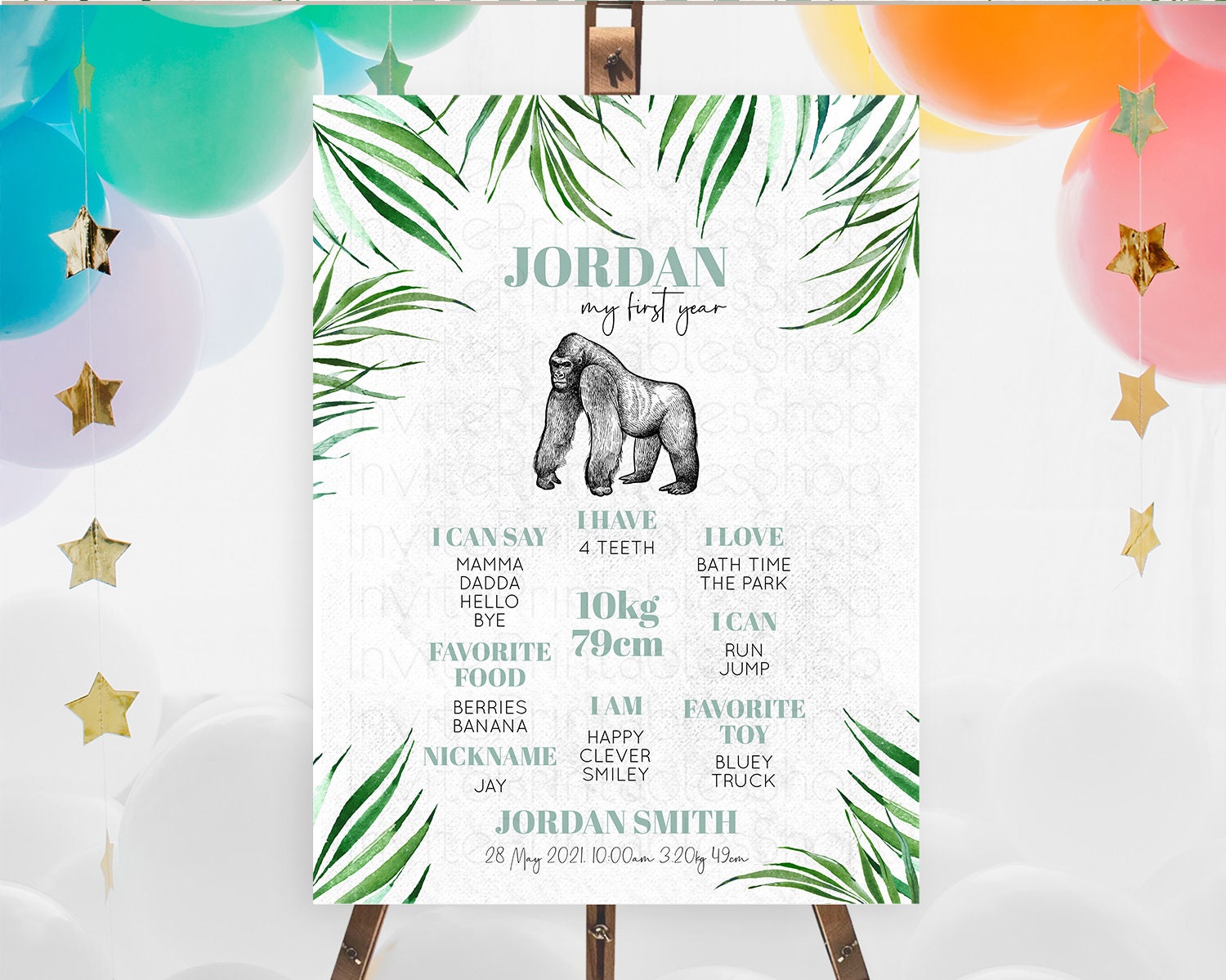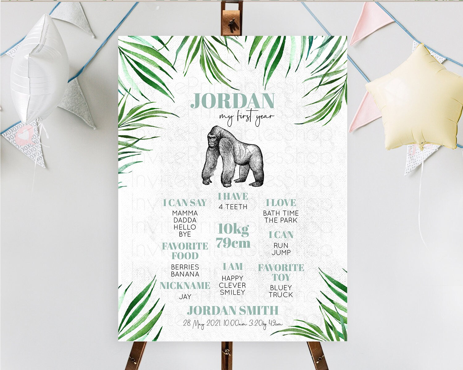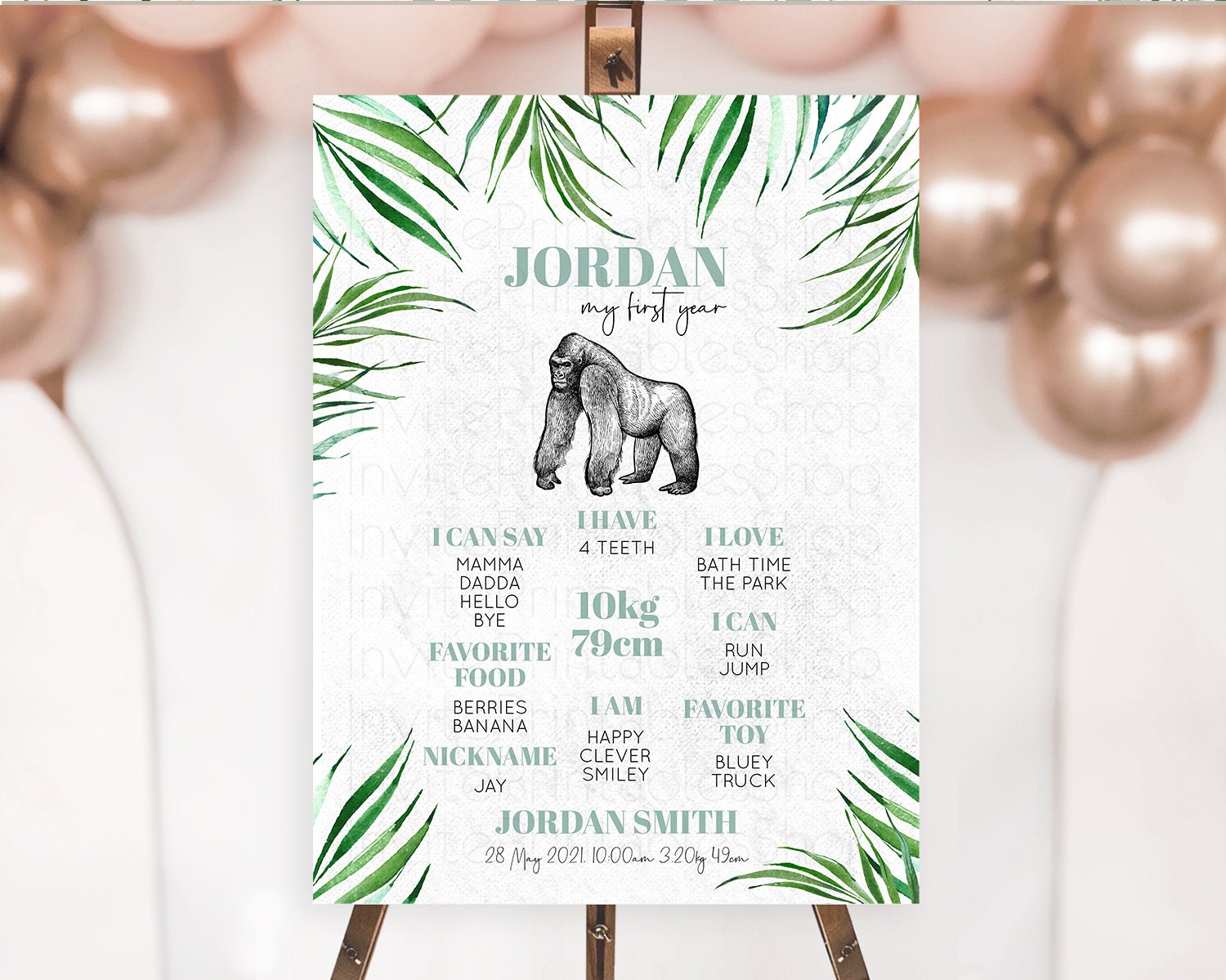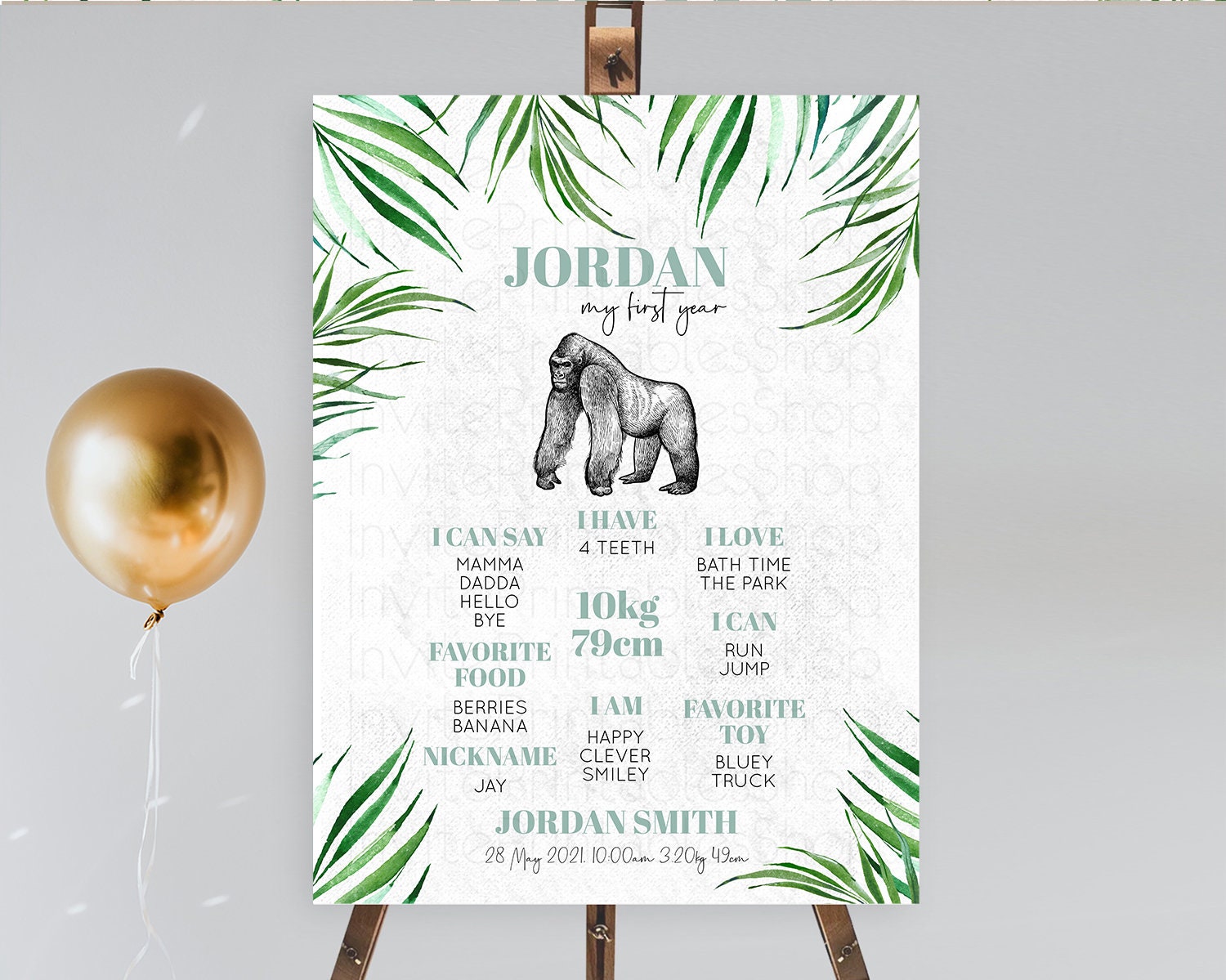 Gorilla First Birthday Milestone Board Gorilla Milestone Poster Gorilla Decor Safari Adventure Gorilla First Birthday Welcome Sign D10846