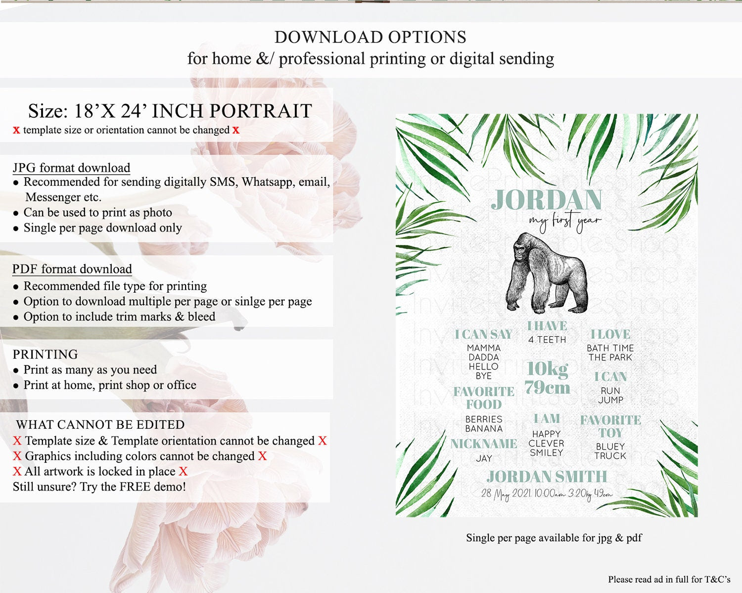 • Template size & orientation cannot be changed. Please use the demo link to confirm this product suits your needs.