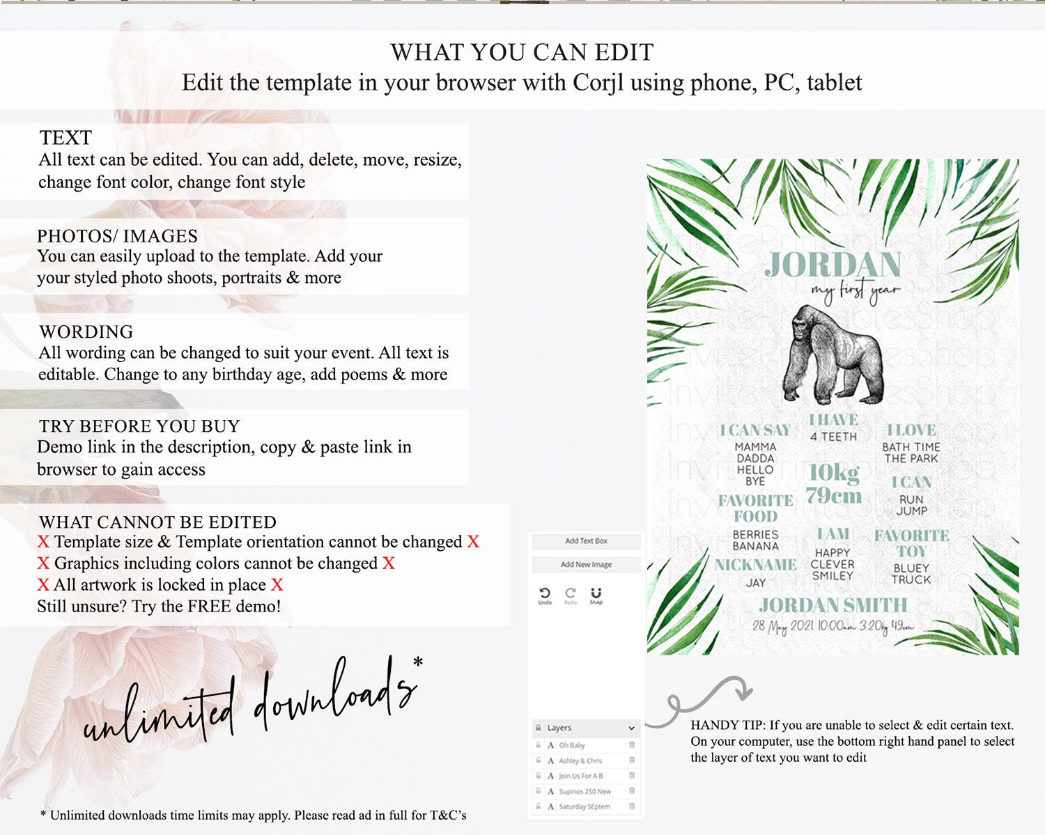 • After purchase, Corjl emails your editing link. Allow up to 15 minutes for delivery.