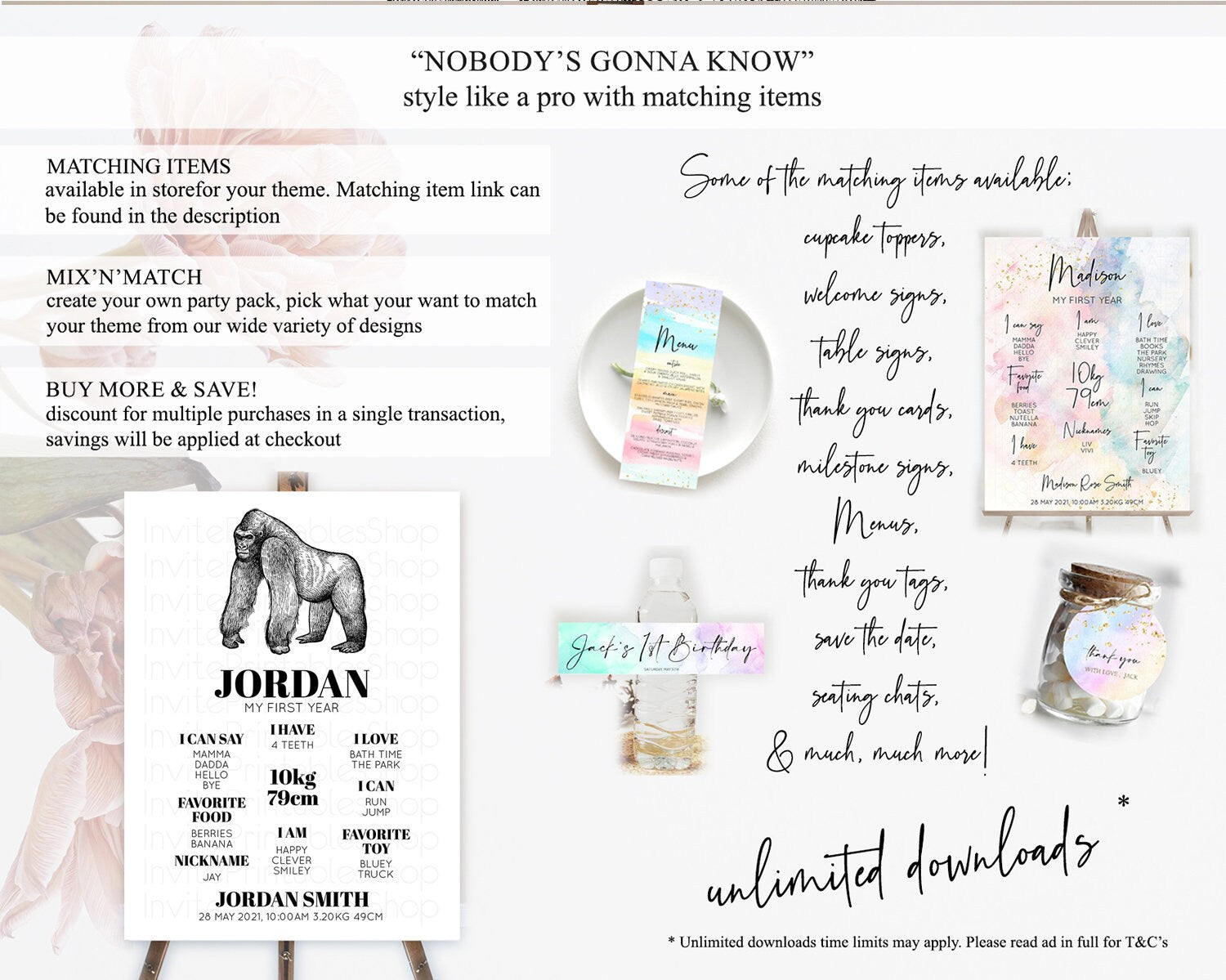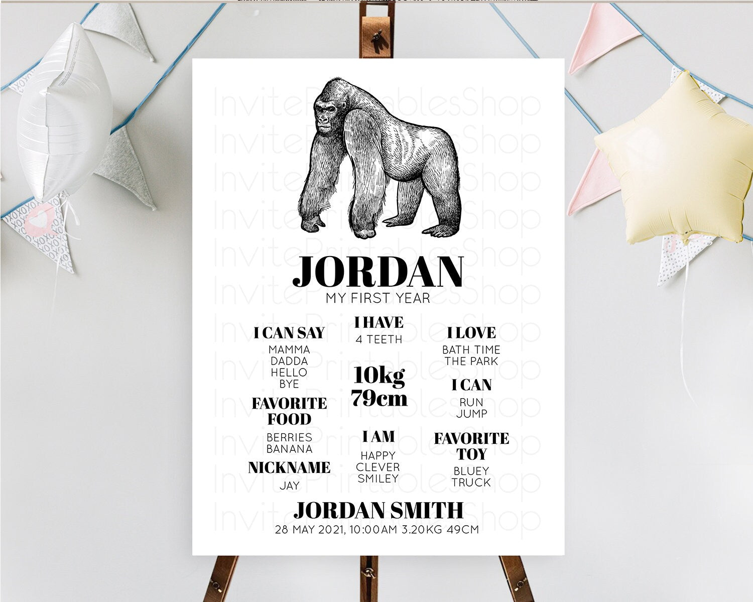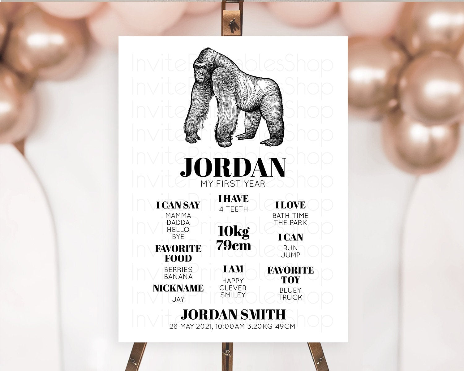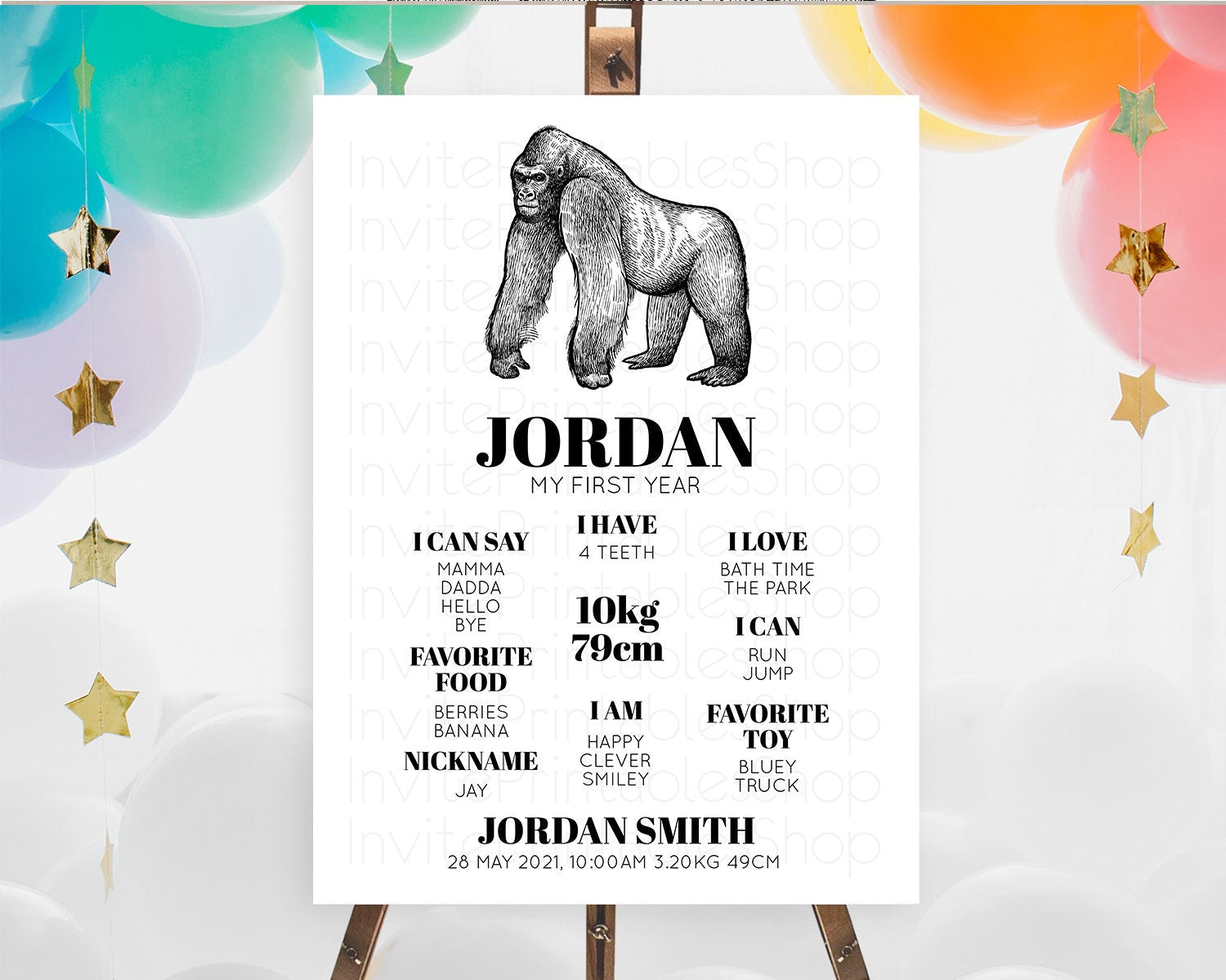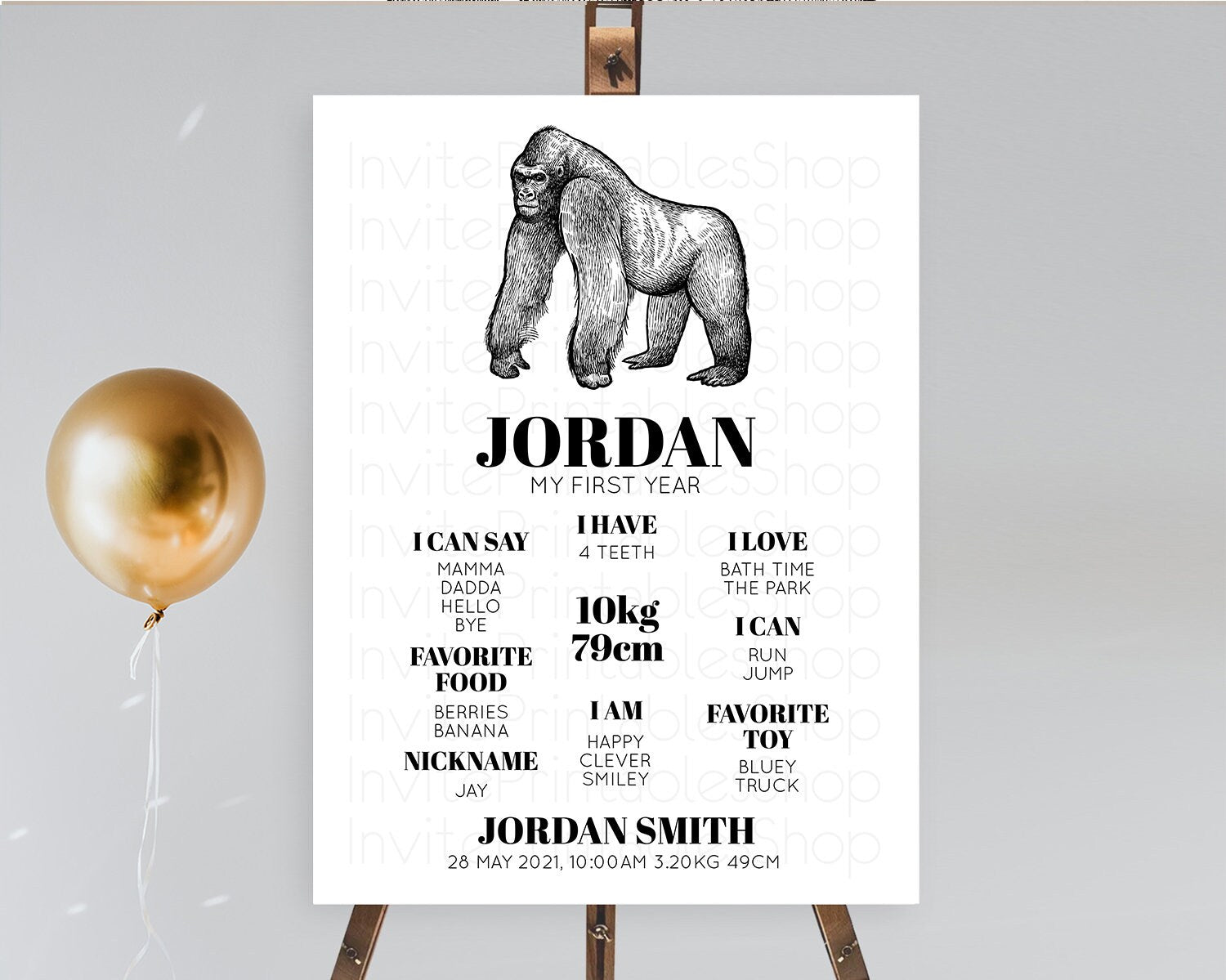 Gorilla First Birthday Milestone Board Gorilla Milestone Poster Gorilla Decor Safari Adventure Gorilla First Birthday Welcome Sign D10855