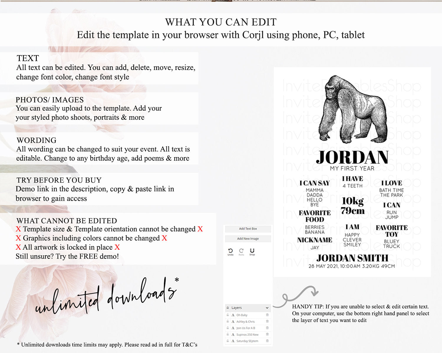 • After purchase, Corjl emails your editing link. Allow up to 15 minutes for delivery.