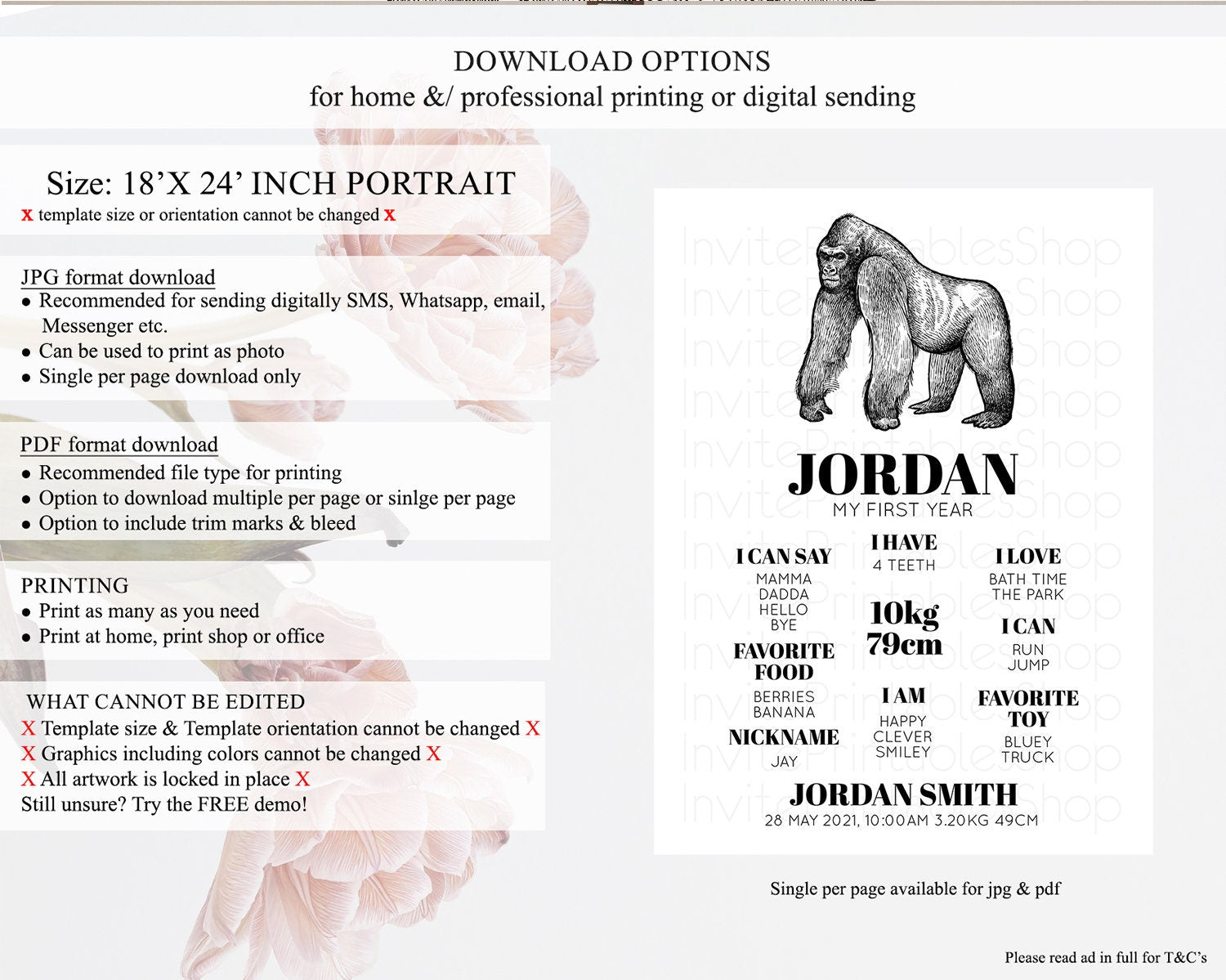 • Template size & orientation cannot be changed. Please use the demo link to confirm this product suits your needs.