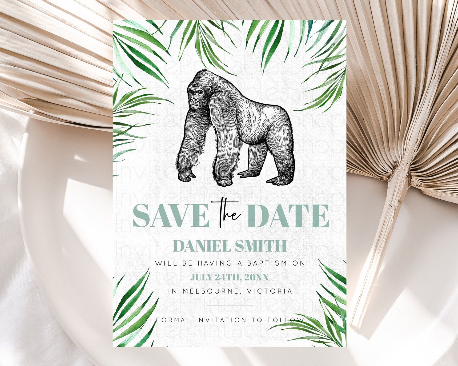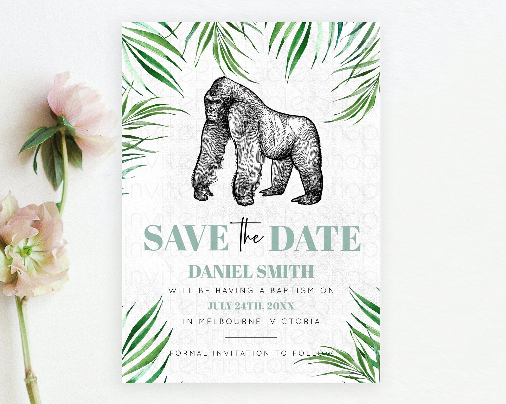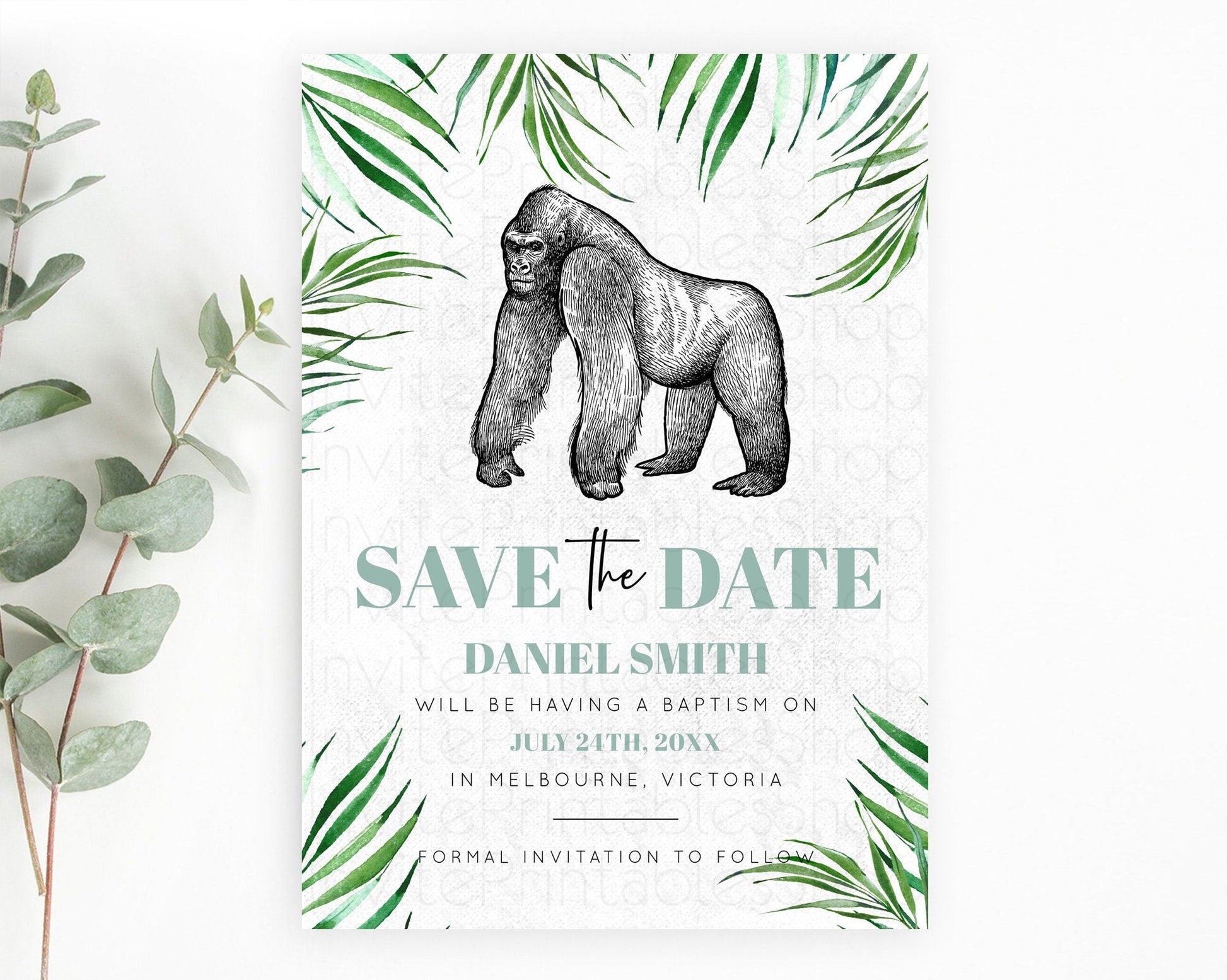 Gorilla Save The Date Template Gorilla Party Save The Date Safari Adventure Gorilla Minimal Theme 1st Birthday Baptism Baby Shower D10846