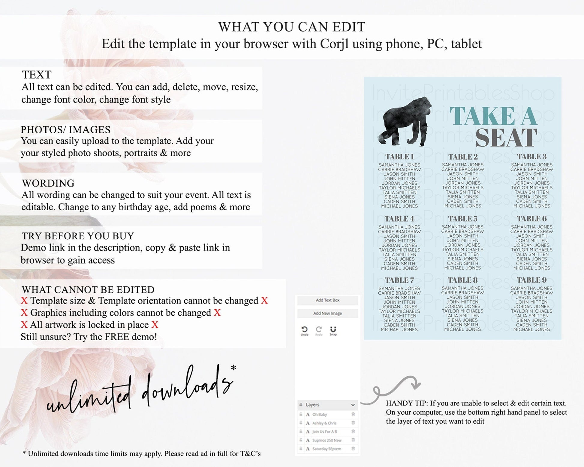 Gorilla Seating Chart Jungle Gorilla Seating Sign Gorilla Party Decor Gorilla Jungle Adventure Zoo Green Palm Leaf Fern Take A Seat D10799