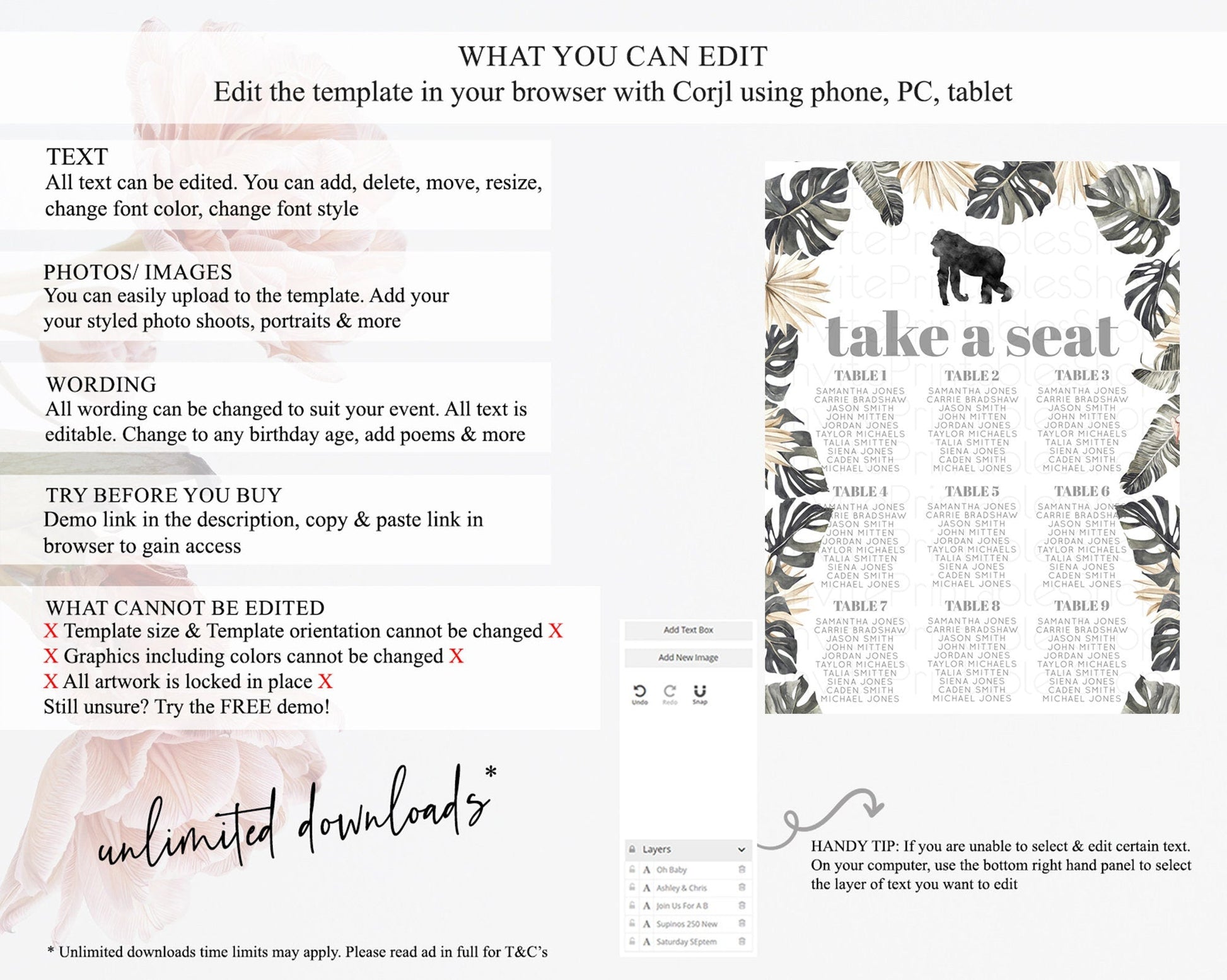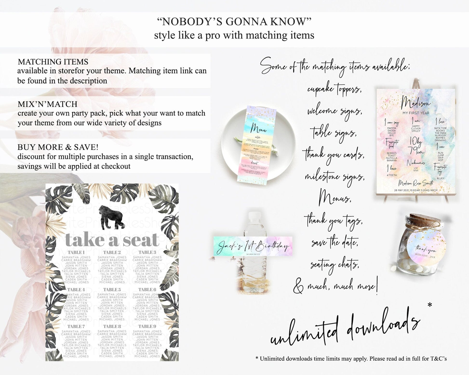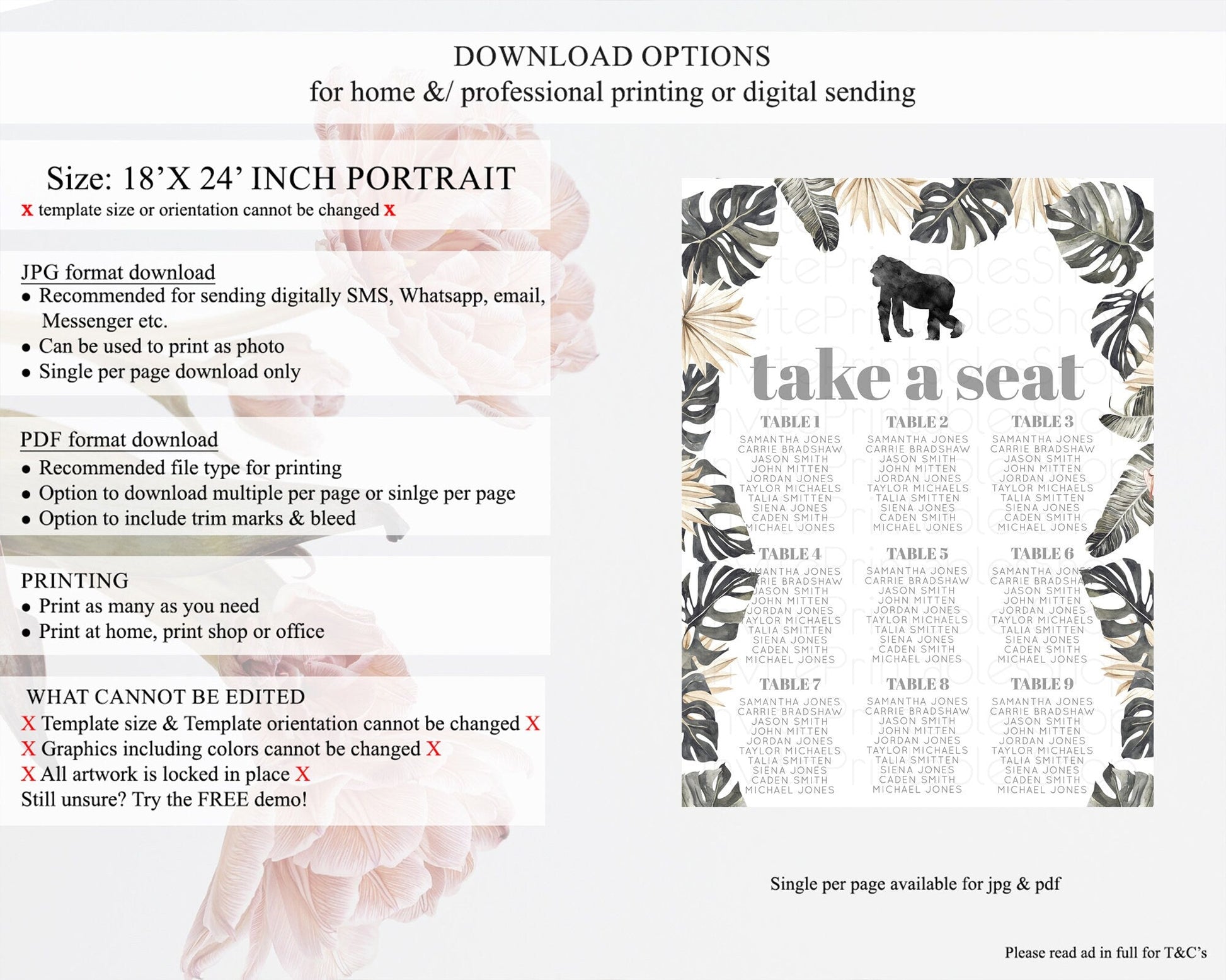 Gorilla Seating Chart Jungle Gorilla Seating Sign Gorilla Party Decor Gorilla Jungle Adventure Zoo Green Palm Leaf Fern Take A Seat D10804