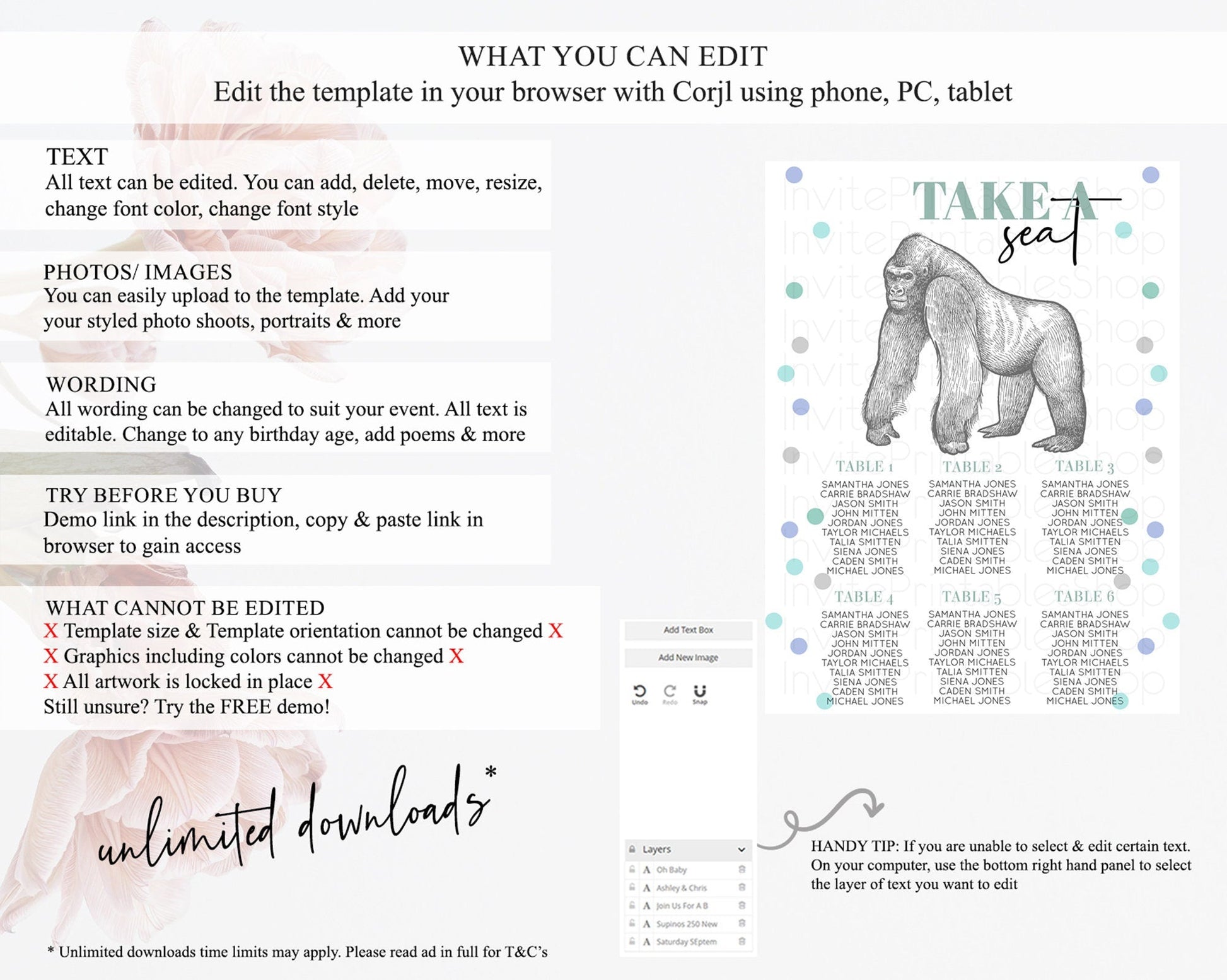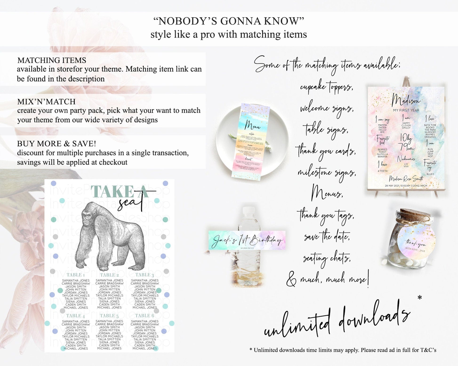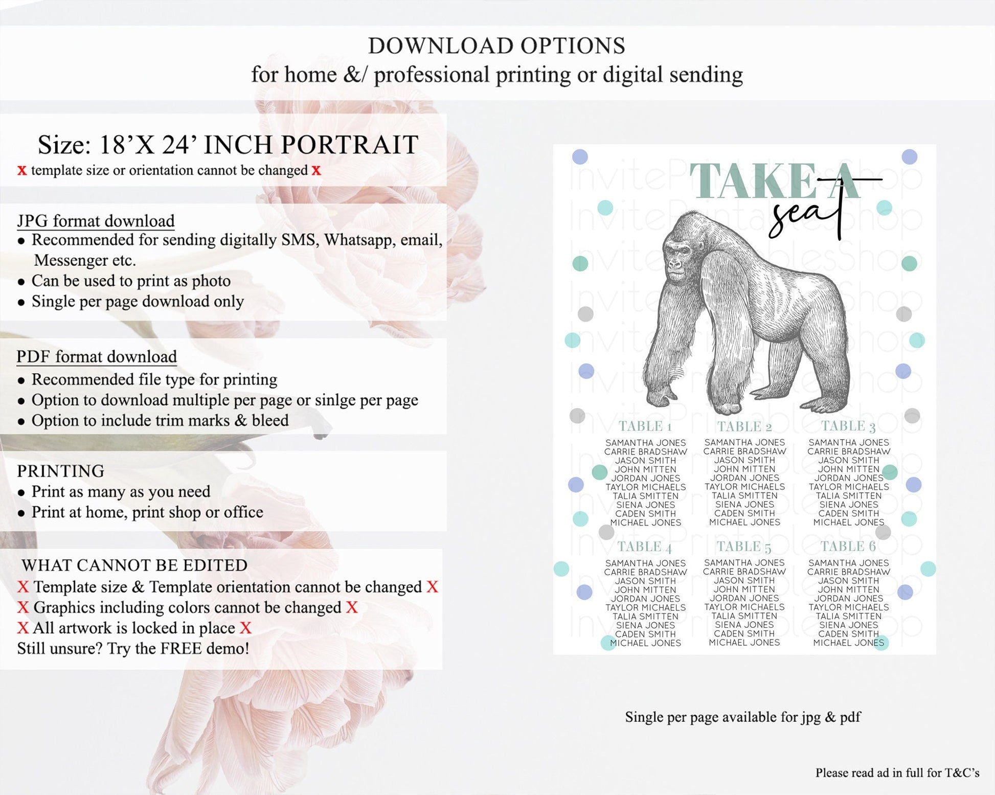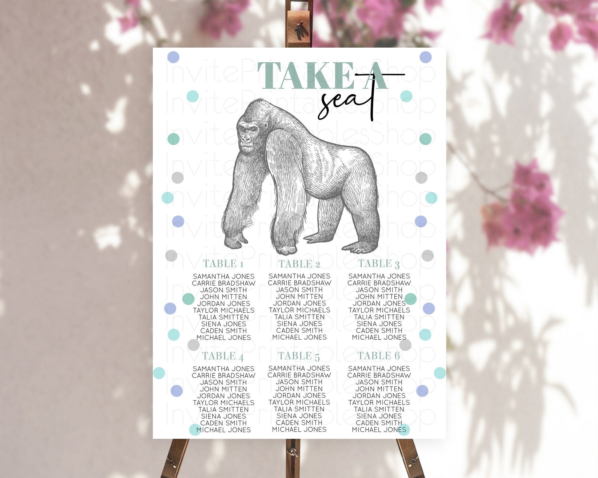 Gorilla Seating Chart Jungle Gorilla Seating Sign Gorilla Party Decor Gorilla Jungle Adventure Zoo Green Palm Leaf Fern Take A Seat D10854