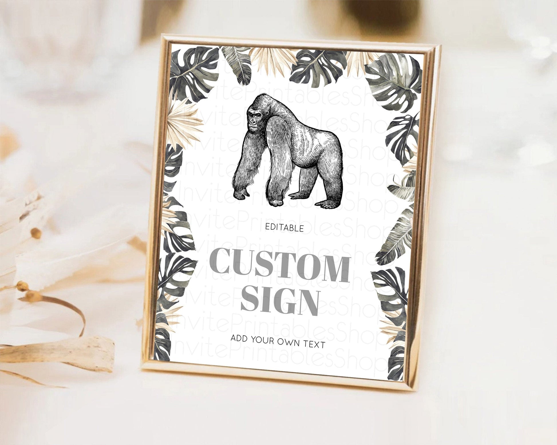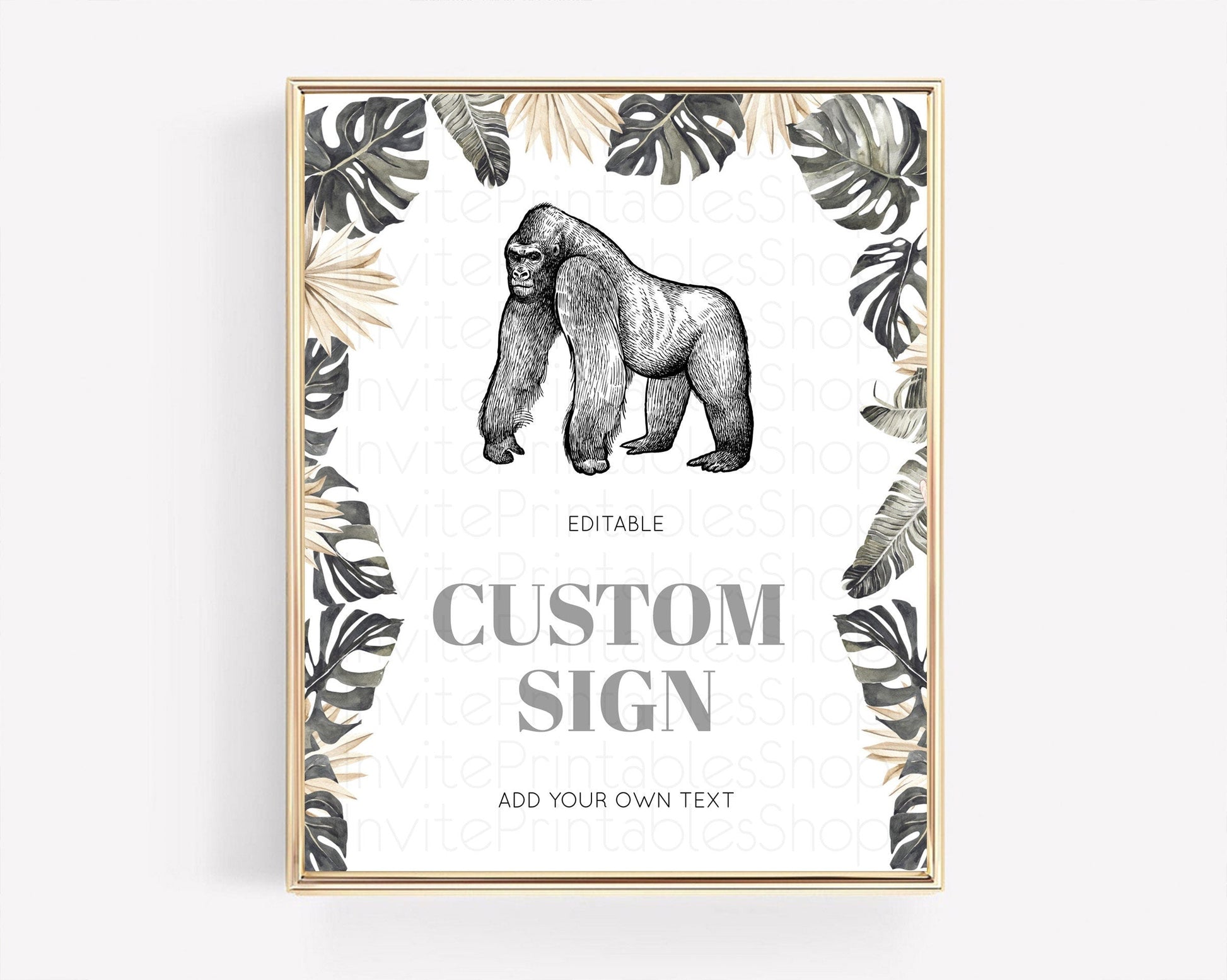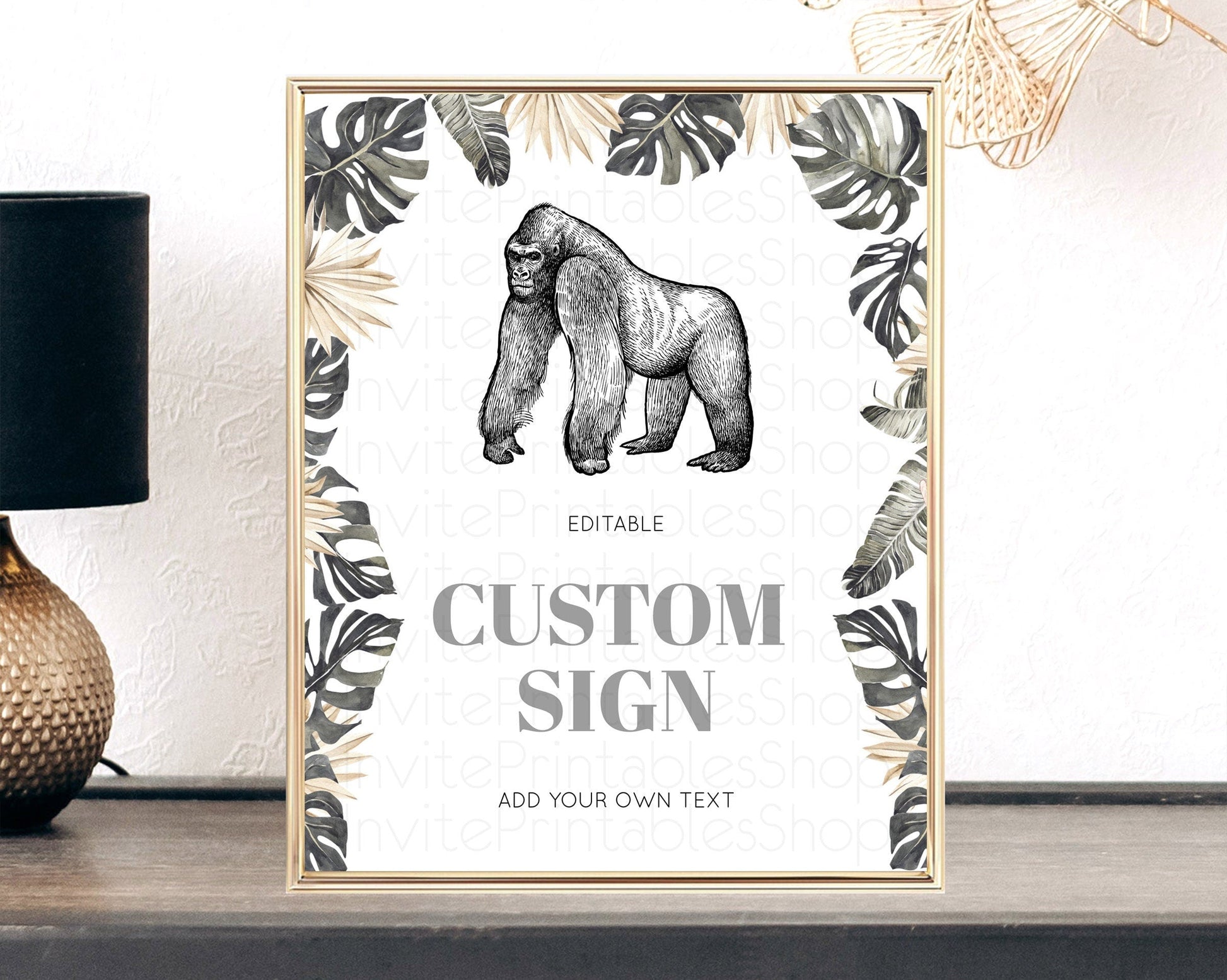 Gorilla Table Sign Decor Gorilla Party Sign Template Safari Adventure Gorilla Minimal Theme 1st Birthday Baptism Baby Shower D10825