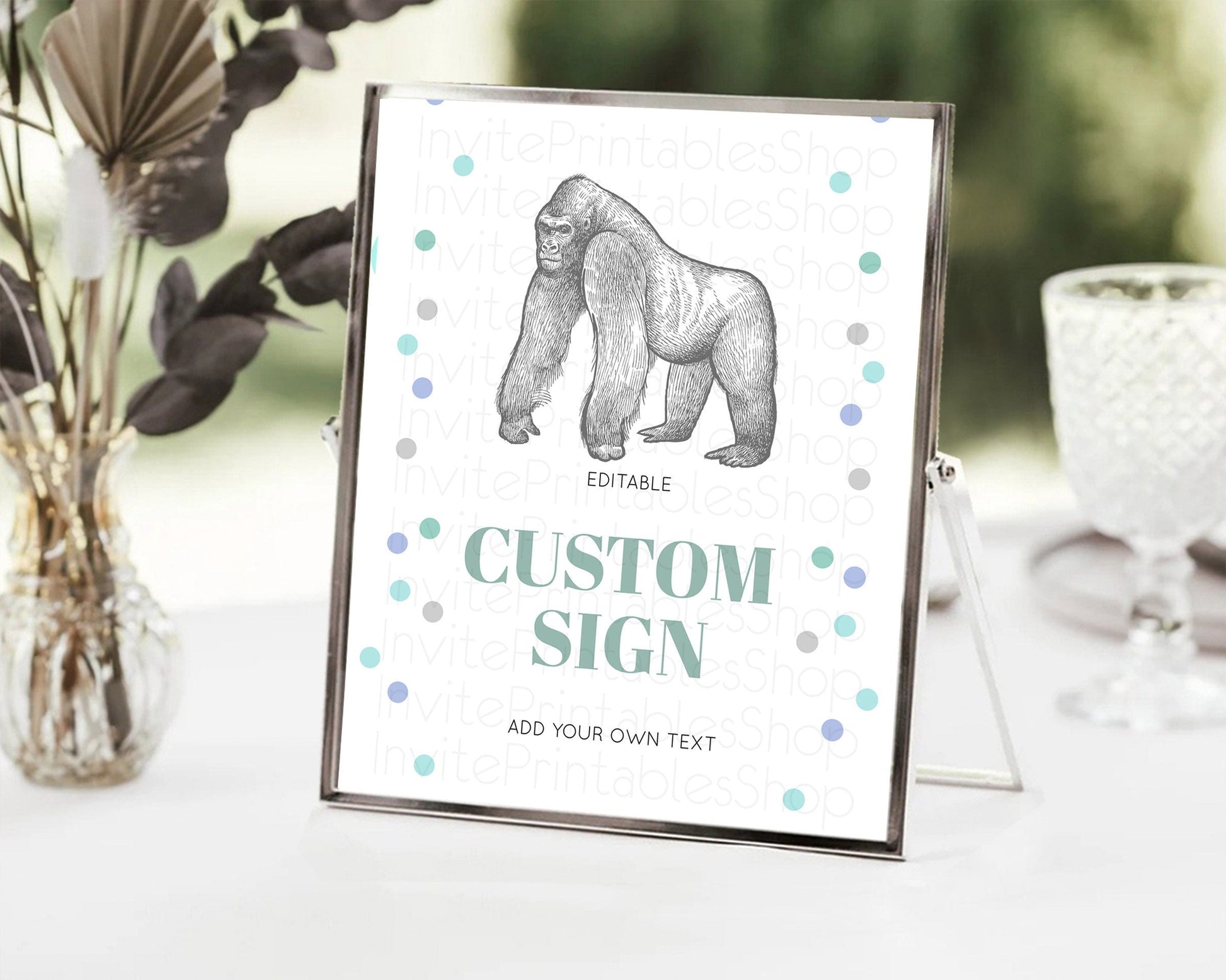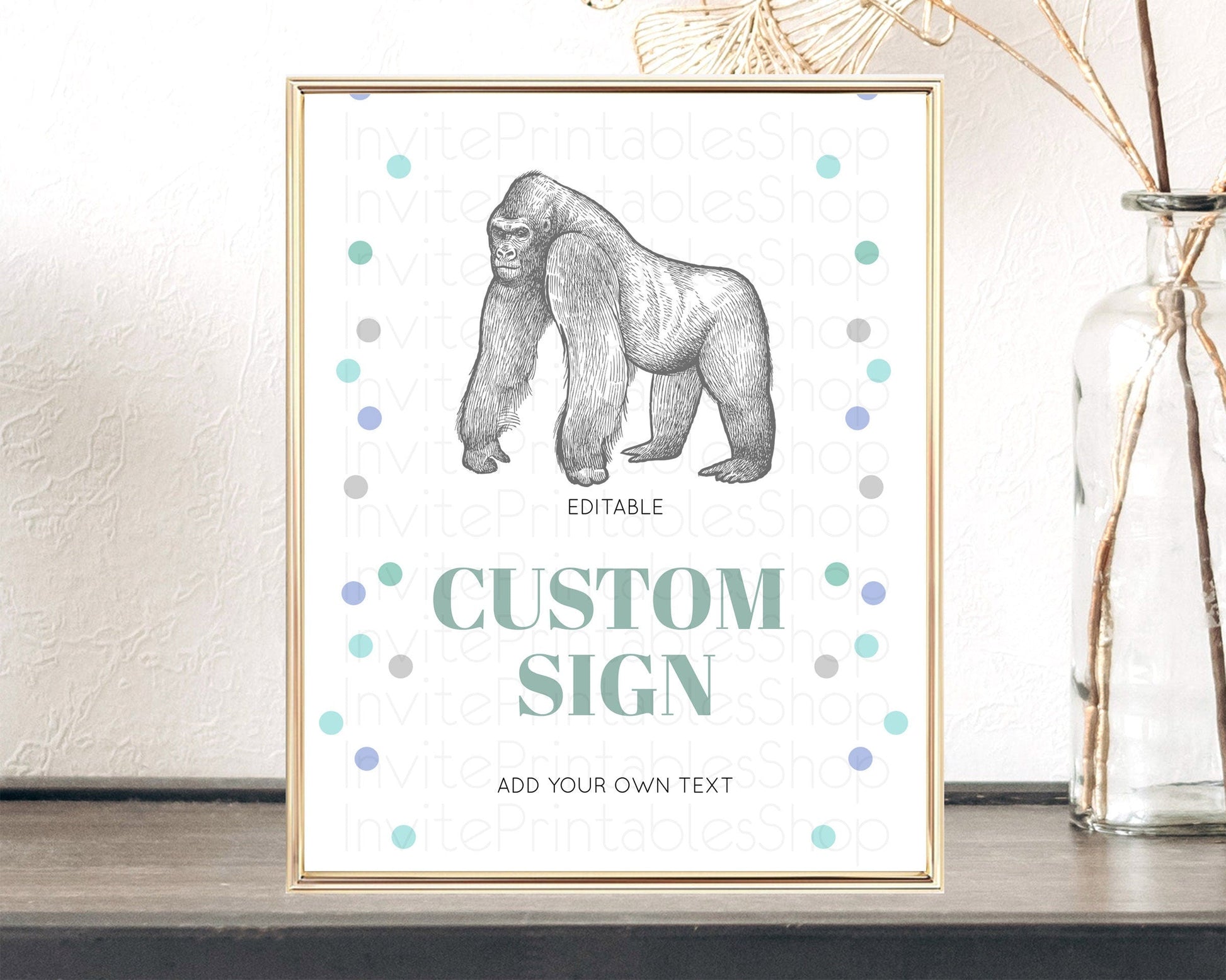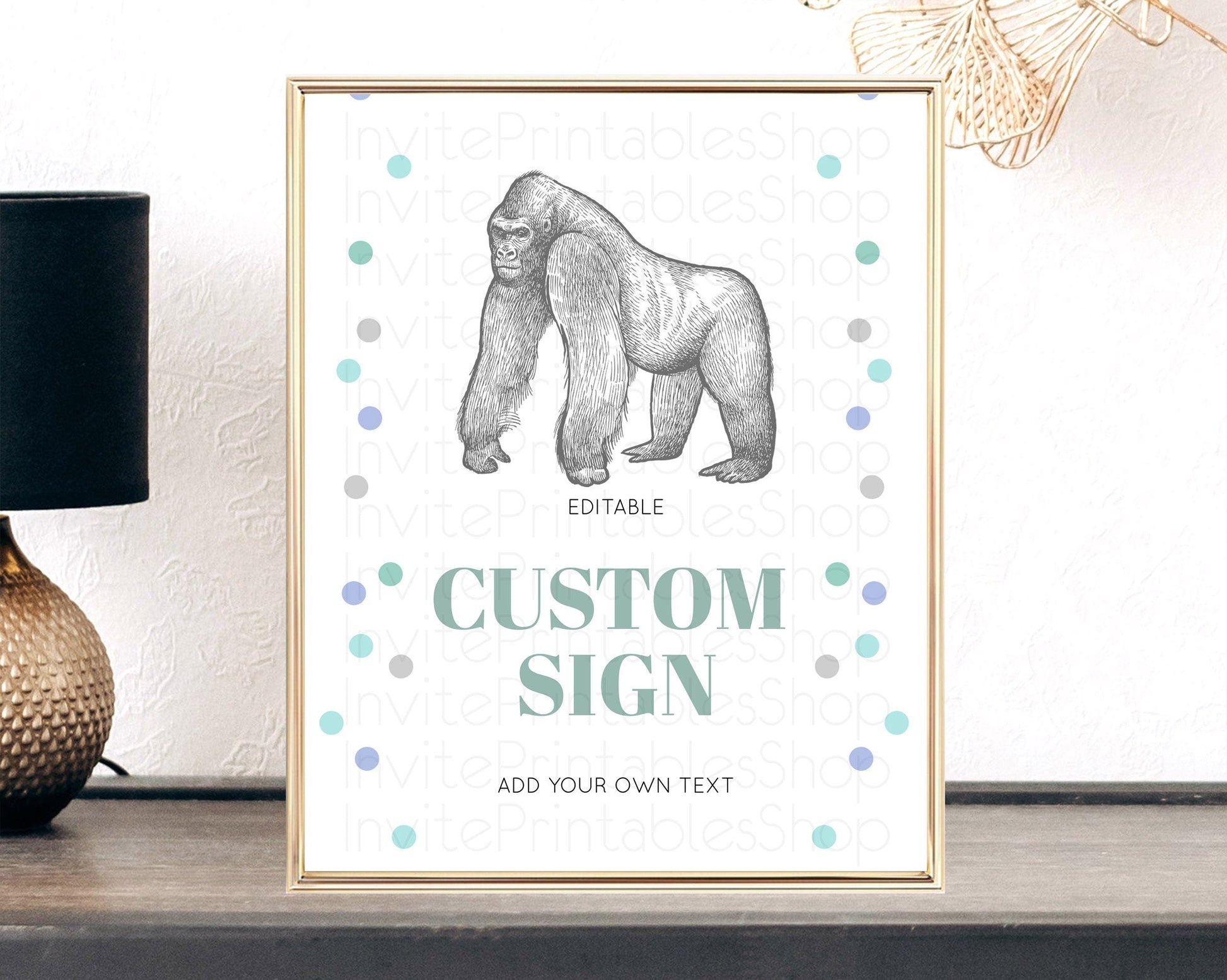 Gorilla Table Sign Decor Gorilla Party Sign Template Safari Adventure Gorilla Minimal Theme 1st Birthday Baptism Baby Shower D10854