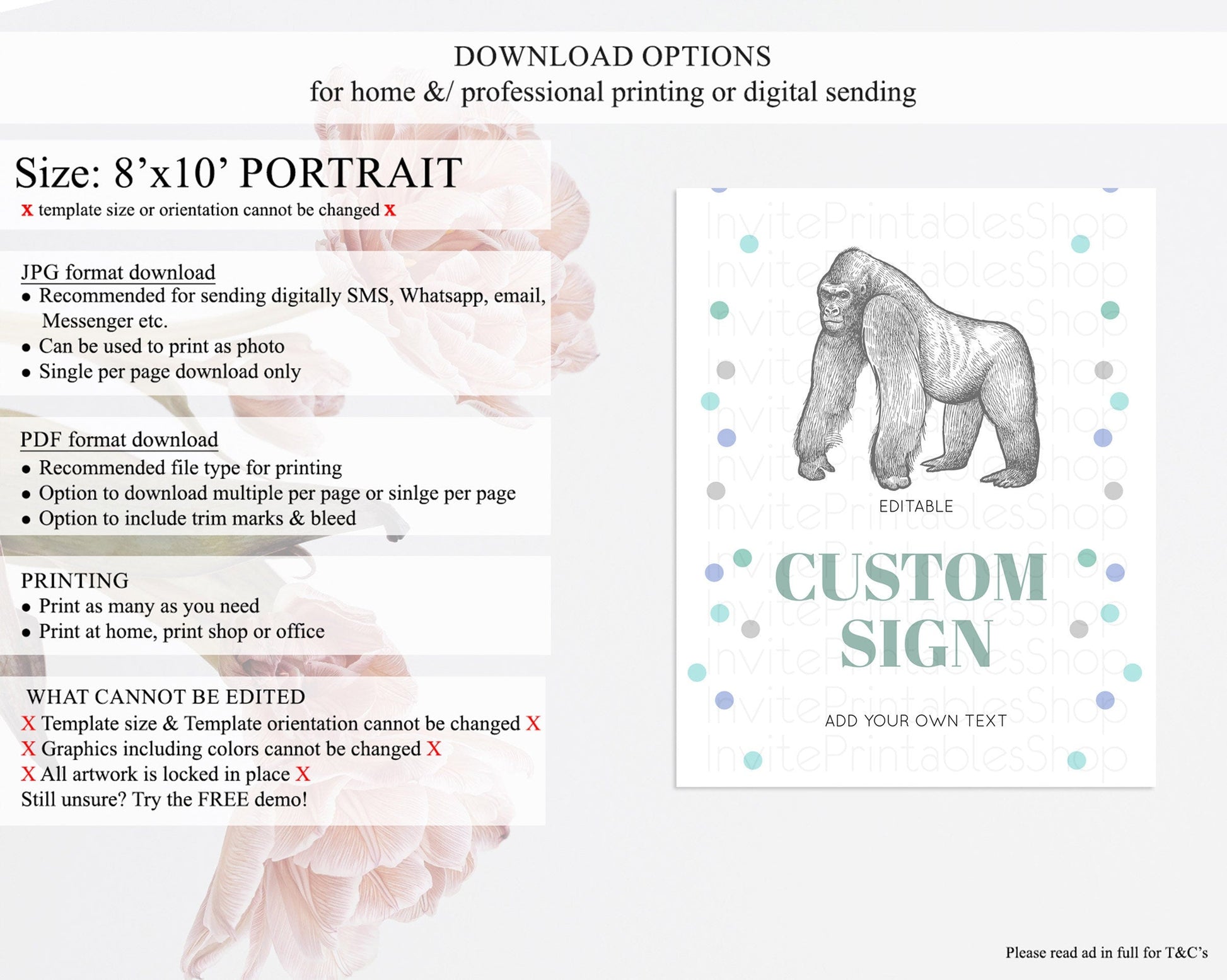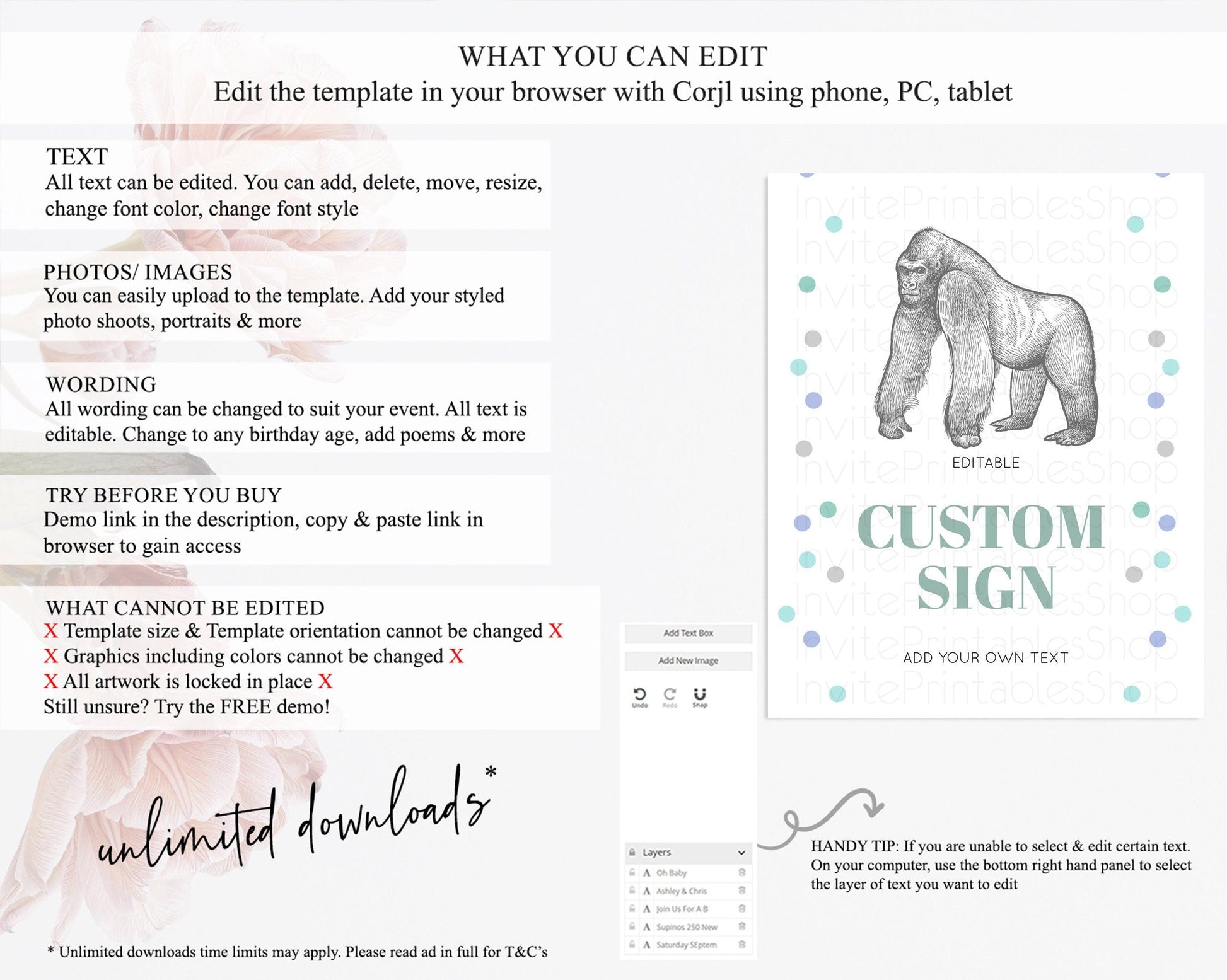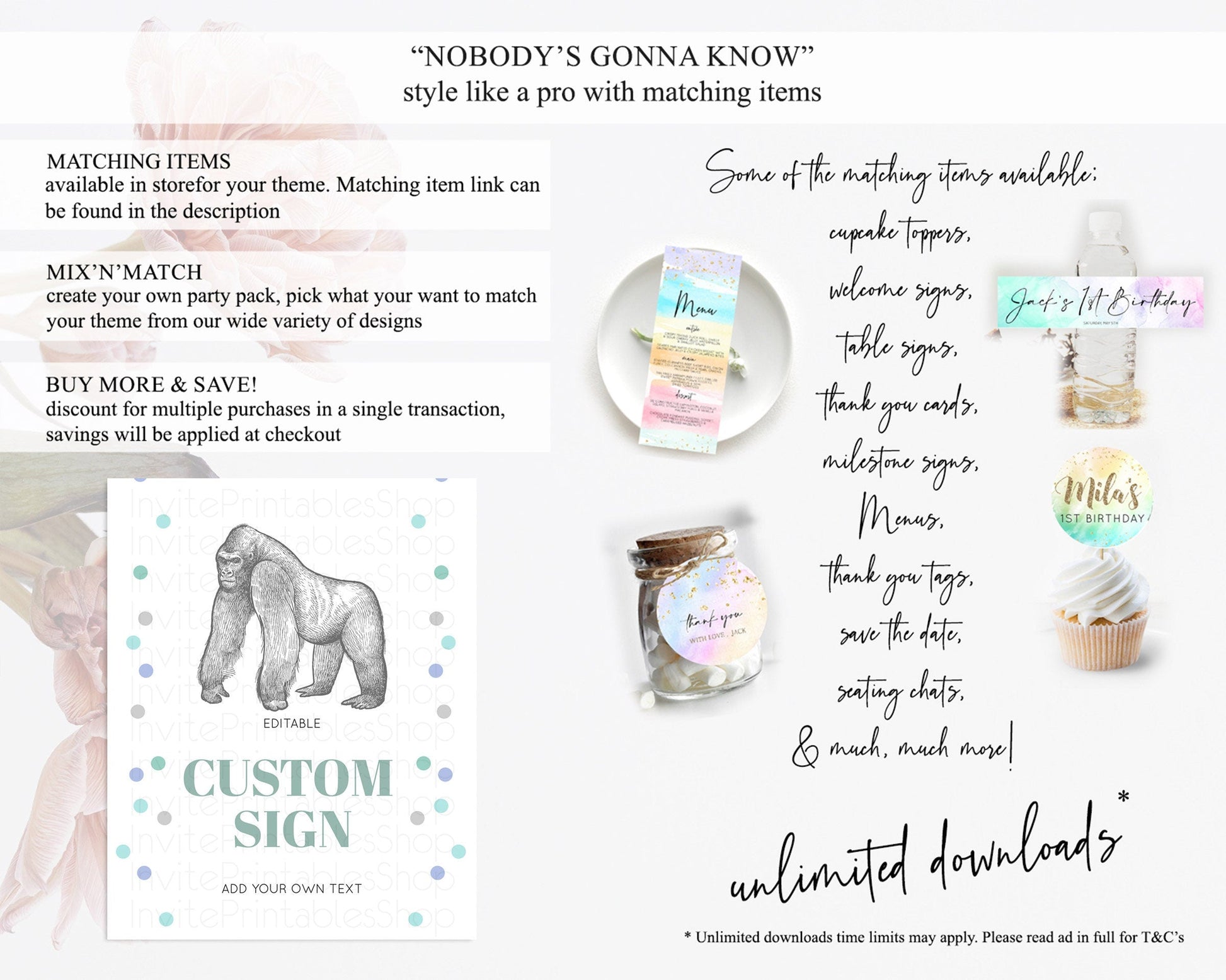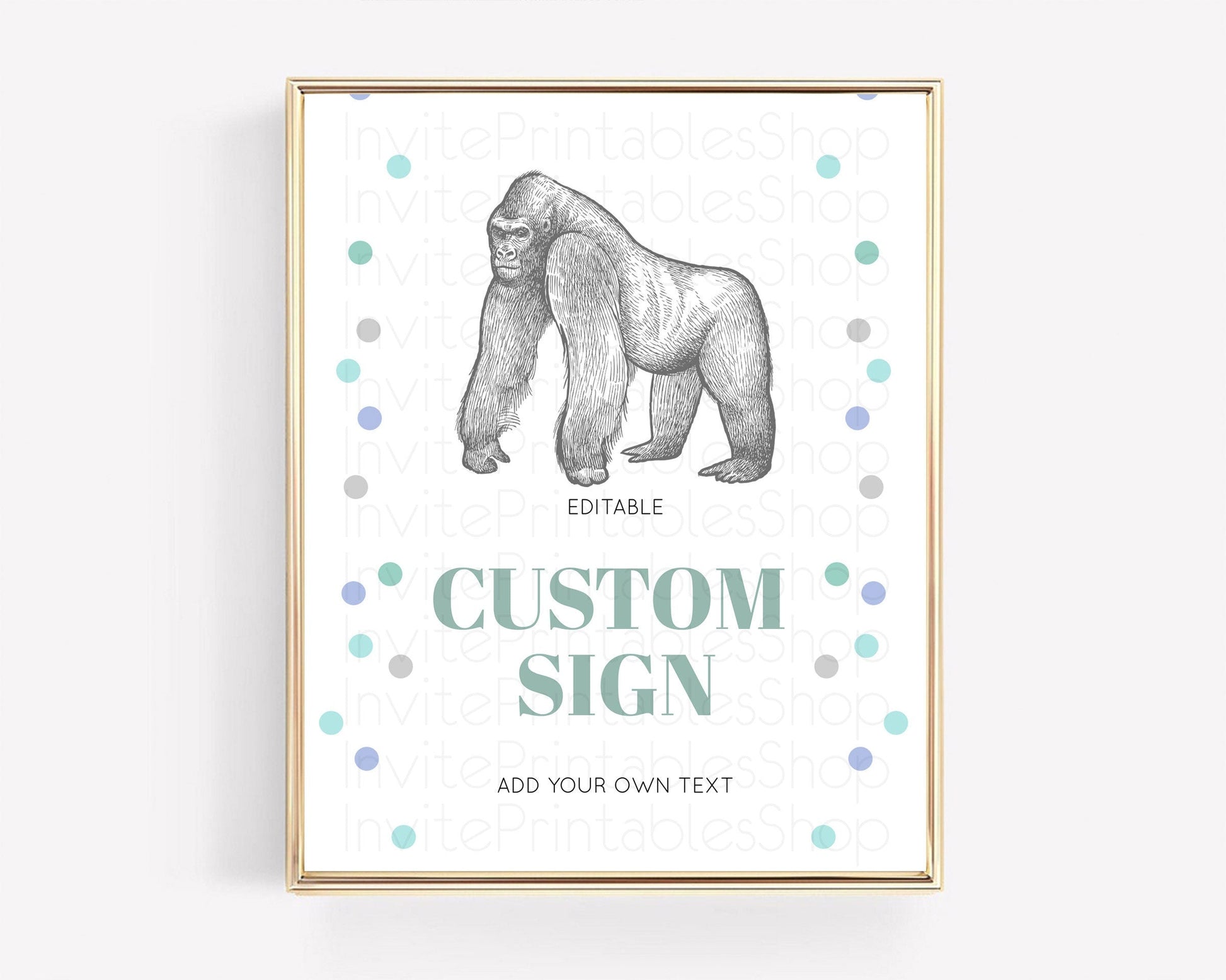 Gorilla Table Sign Decor Gorilla Party Sign Template Safari Adventure Gorilla Minimal Theme 1st Birthday Baptism Baby Shower D10854