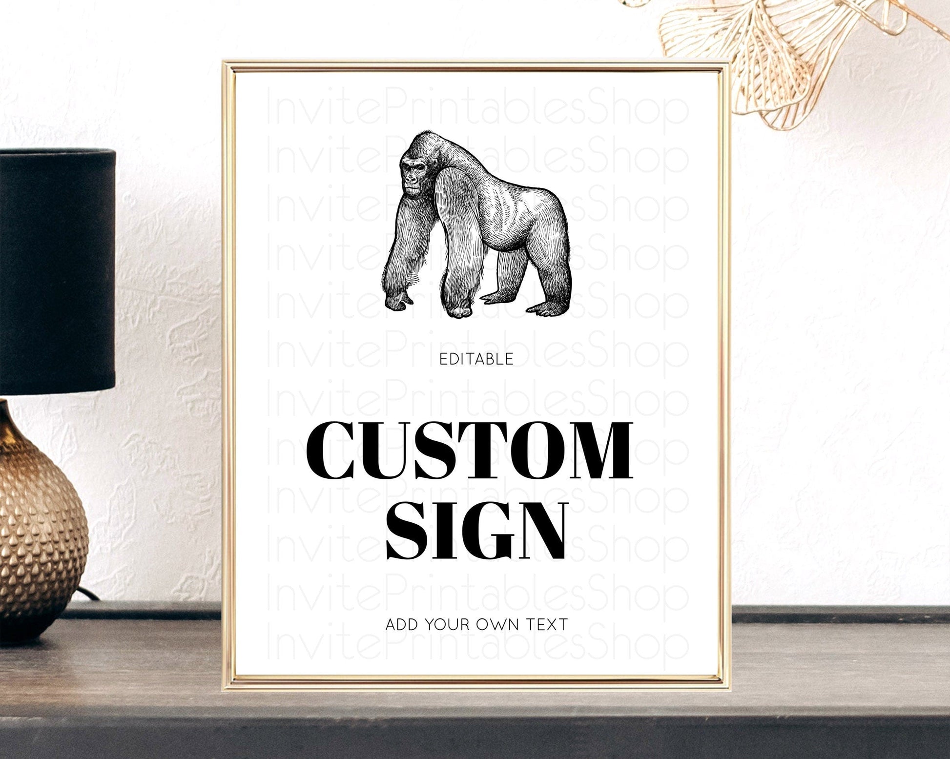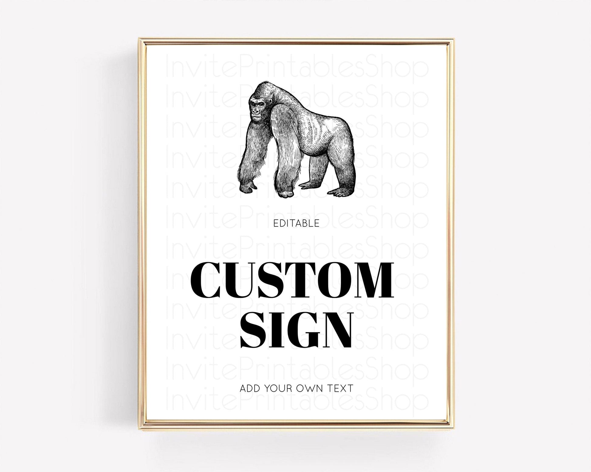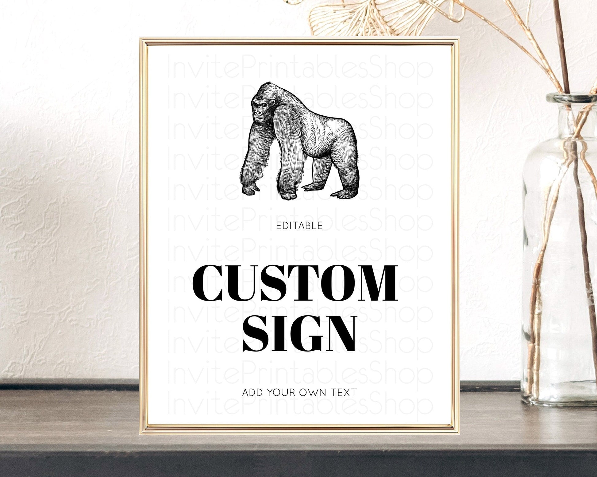 Gorilla Table Sign Decor Gorilla Party Sign Template Safari Adventure Gorilla Minimal Theme 1st Birthday Baptism Baby Shower D10855