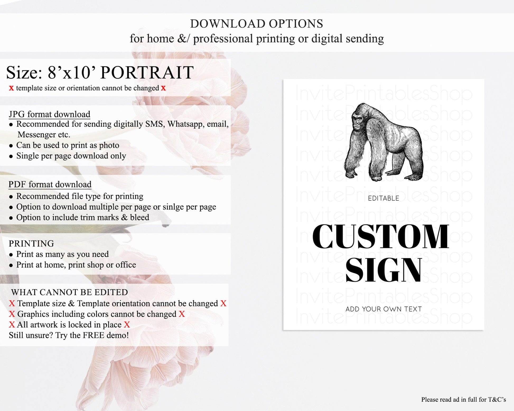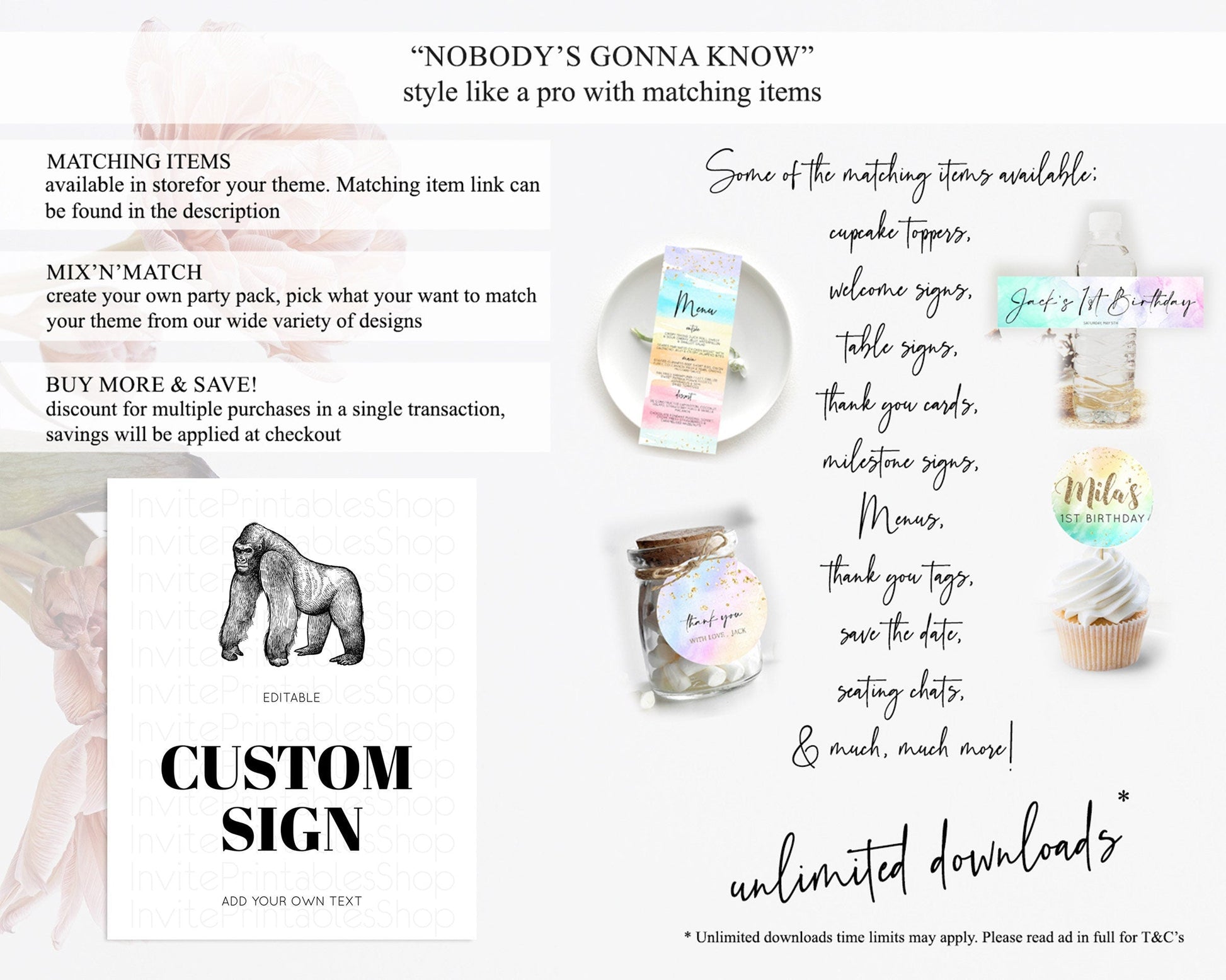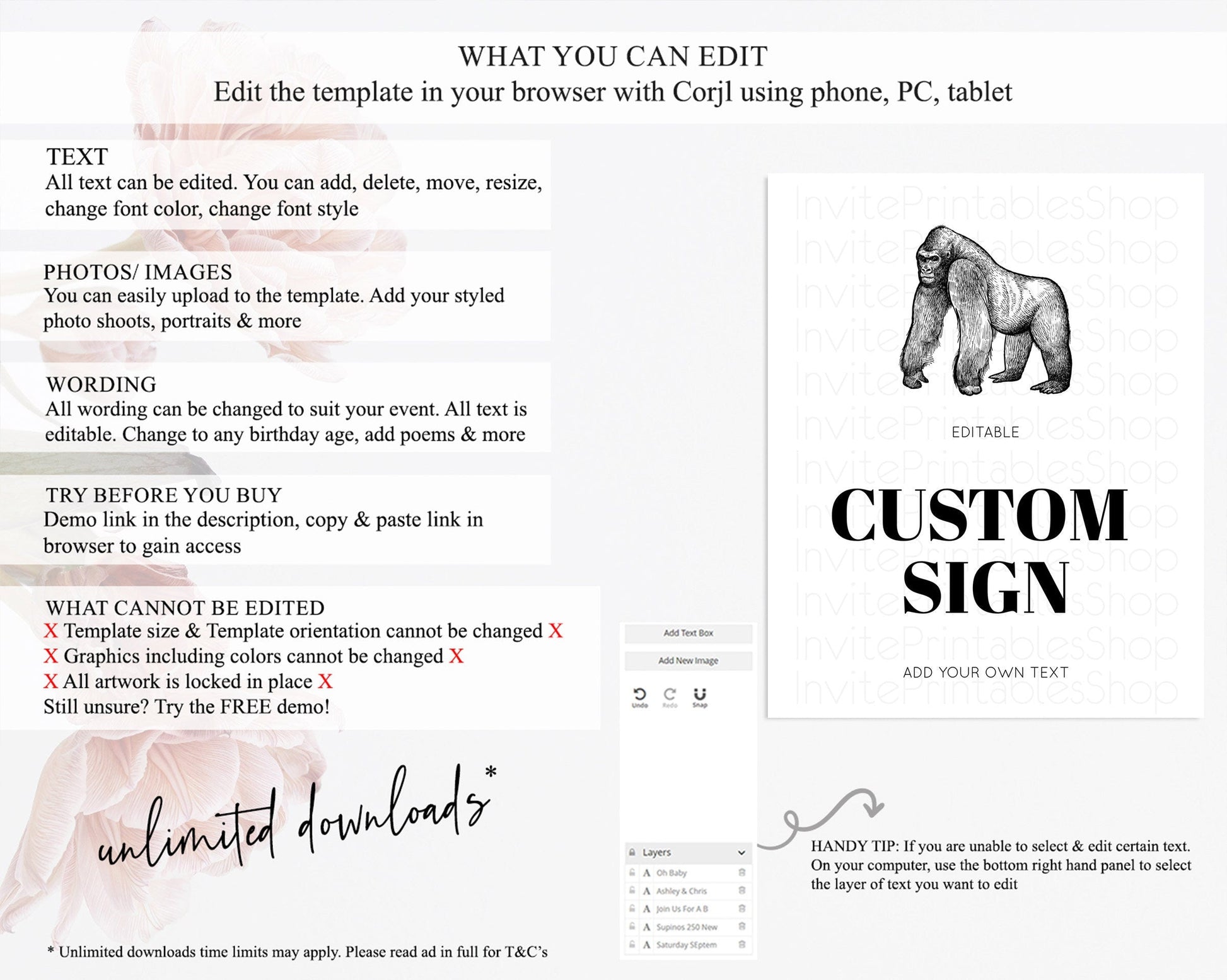 Gorilla Table Sign Decor Gorilla Party Sign Template Safari Adventure Gorilla Minimal Theme 1st Birthday Baptism Baby Shower D10855
