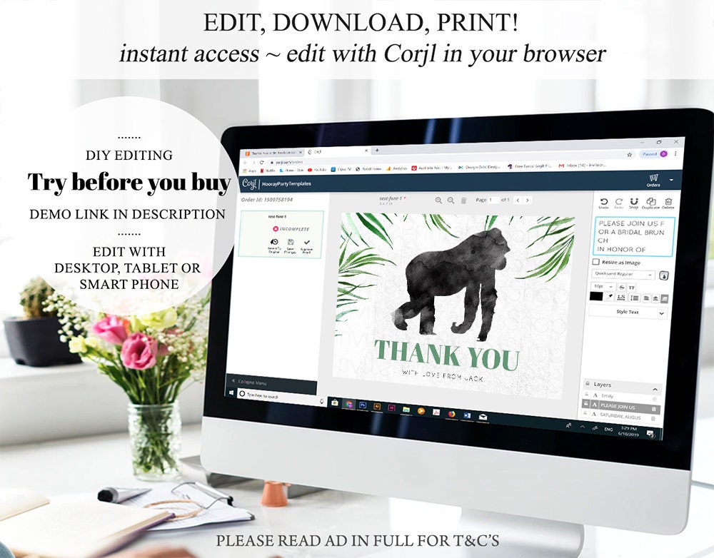 • After purchase, Corjl emails your editing link. Allow up to 15 minutes for delivery.