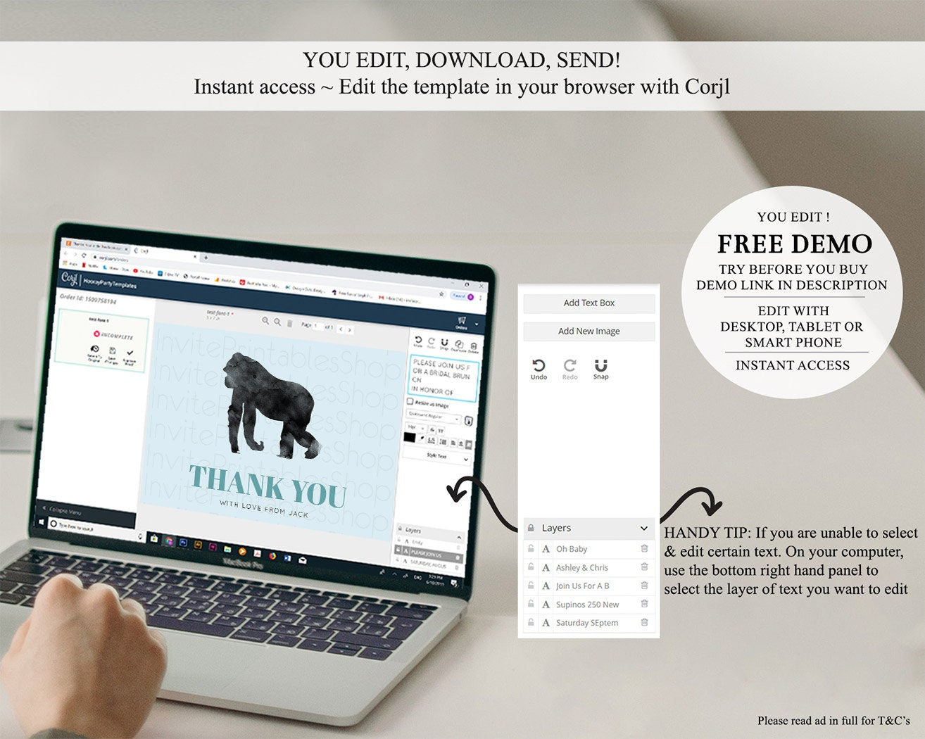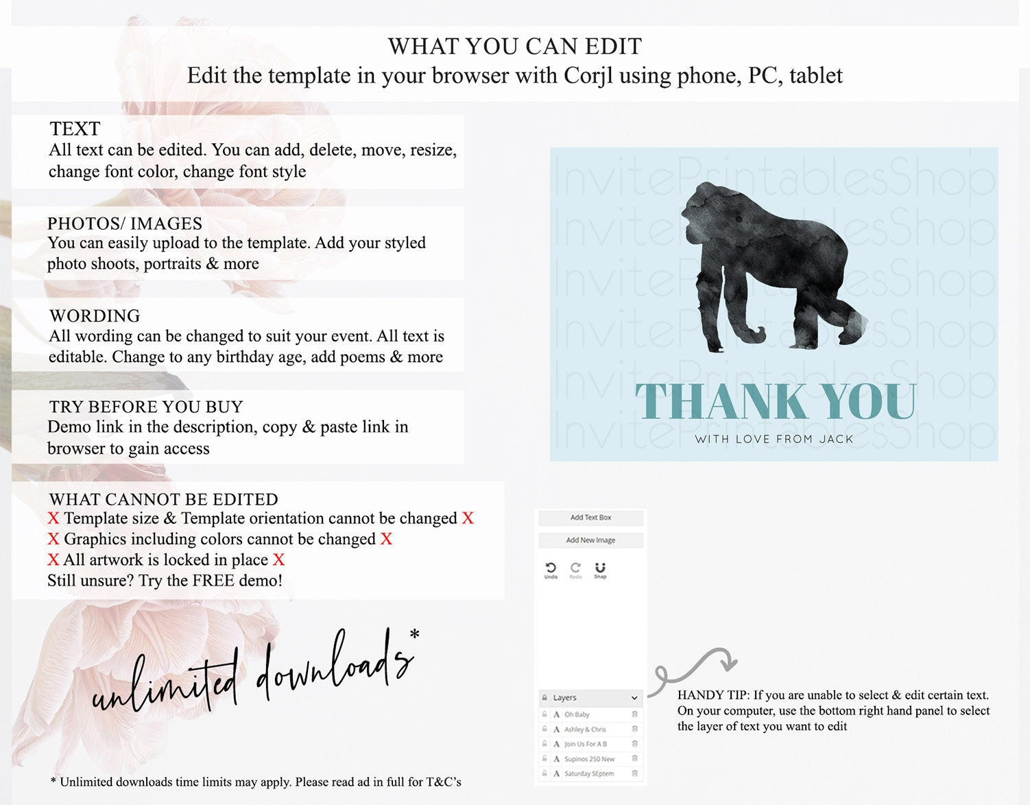 • After purchase, Corjl emails your editing link. Allow up to 15 minutes for delivery.
