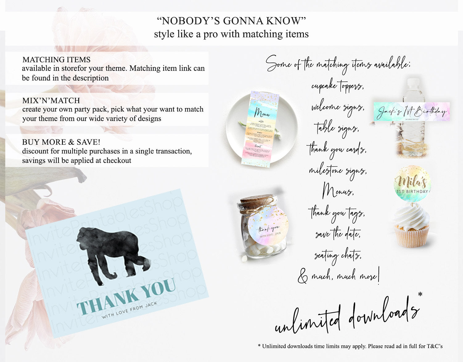 • Content shown in your gallery images is the source of truth for what’s included.